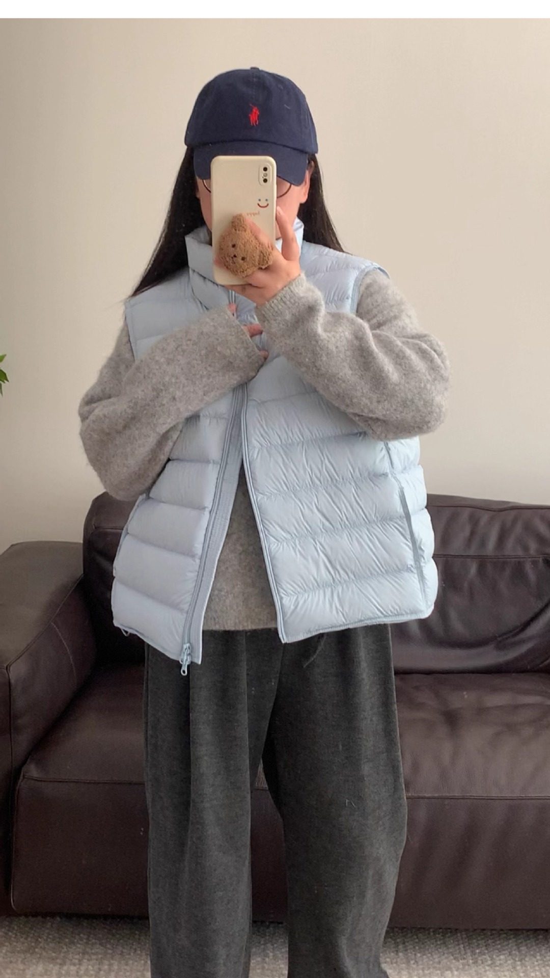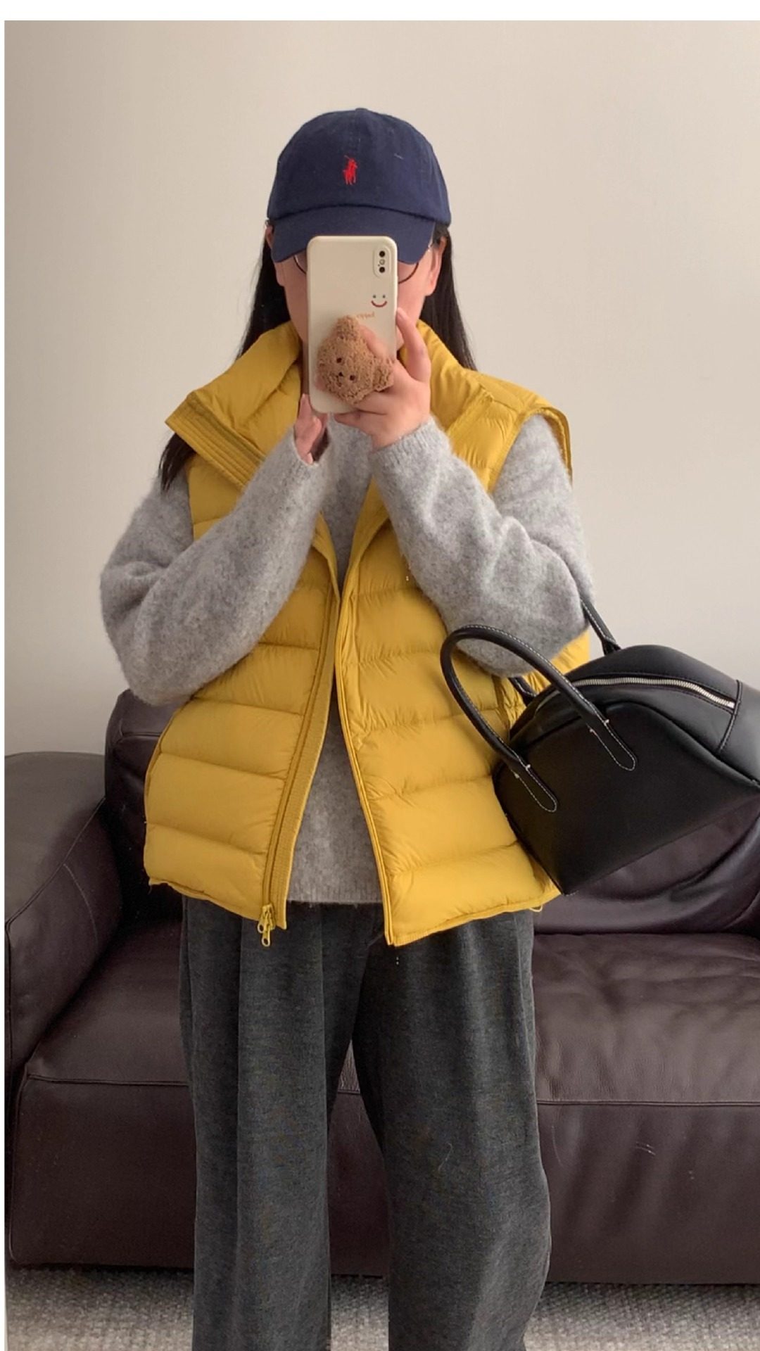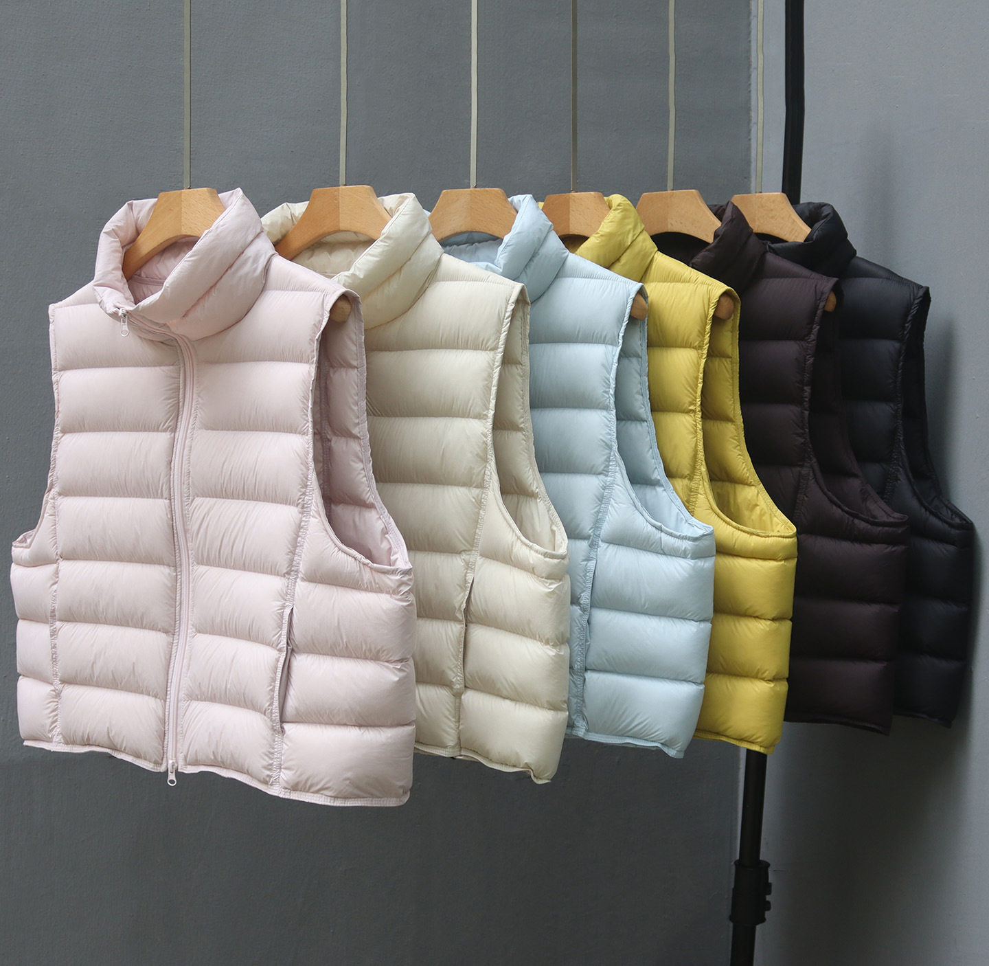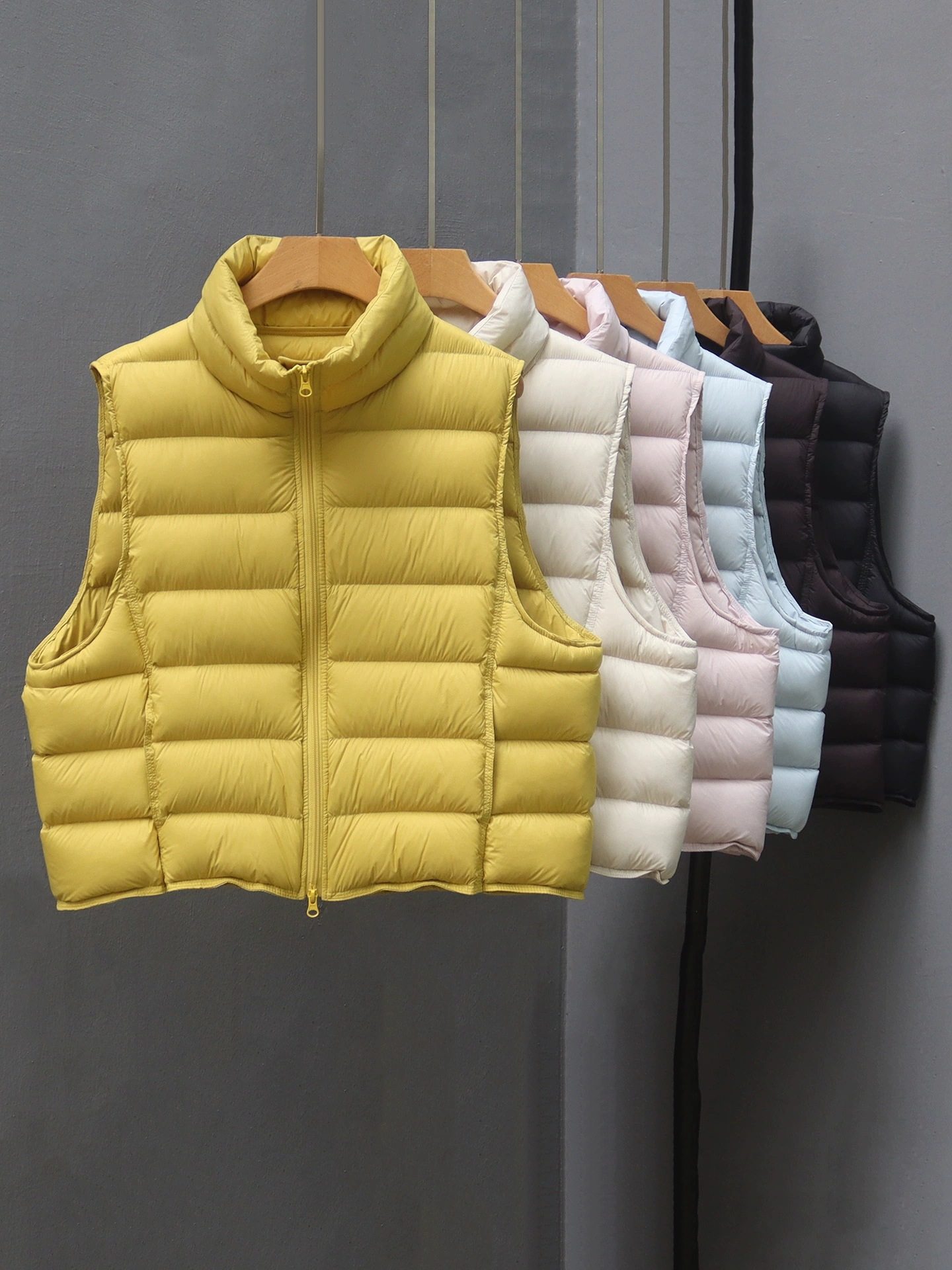 Yellow Ribbed down Vest 2025 Winter New Korean Style Simple Petite 90 White Duck down Vest Jacket