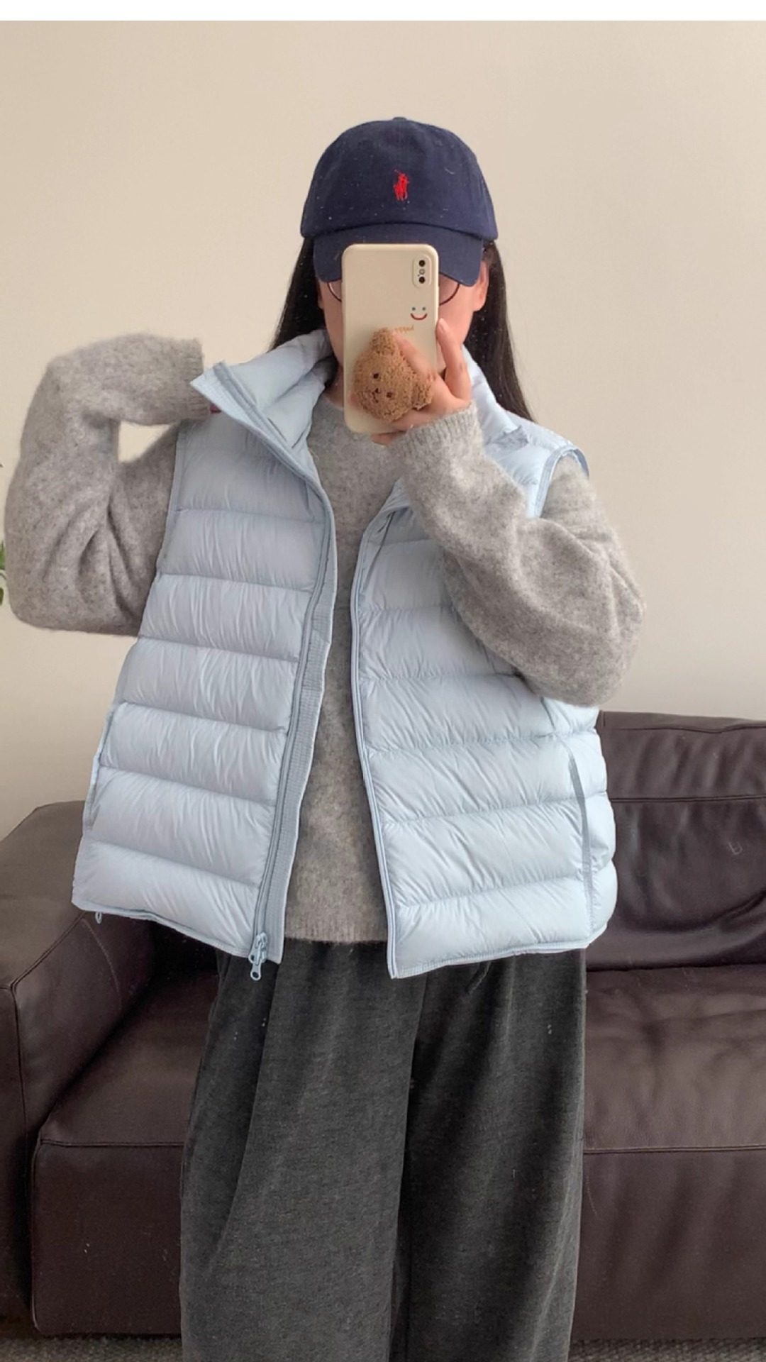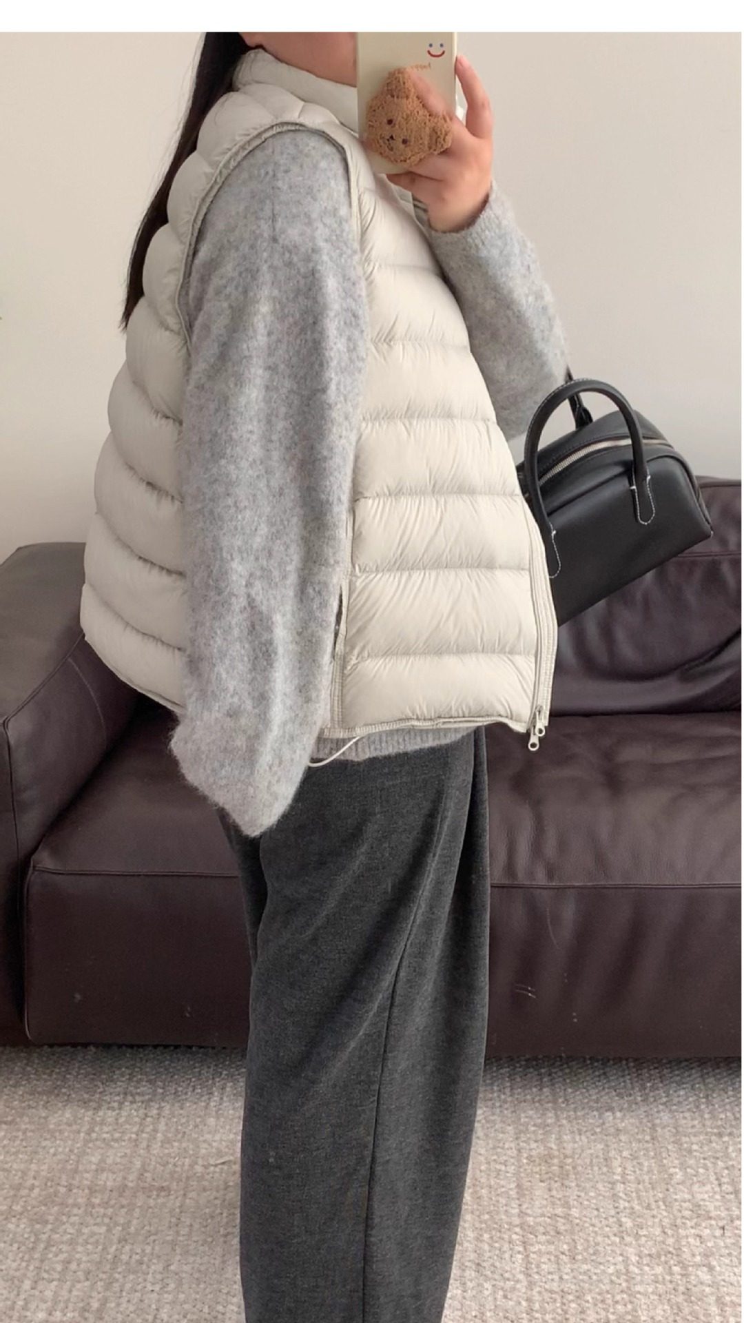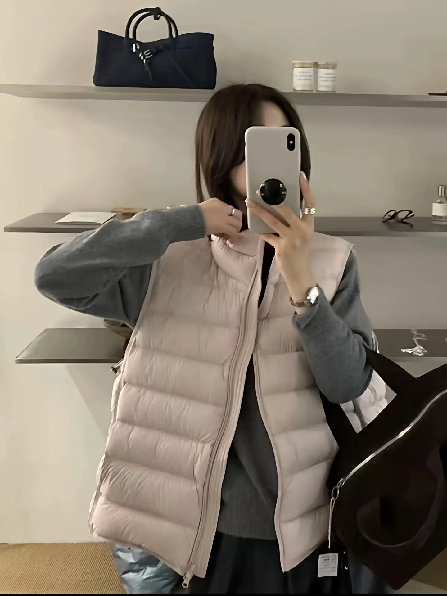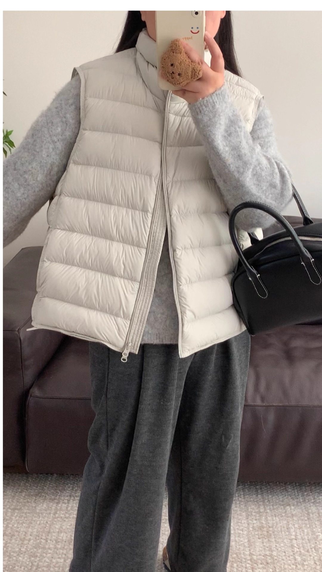Yellow Ribbed down Vest 2025 Winter New Korean Style Simple Petite 90 White Duck down Vest Jacket
