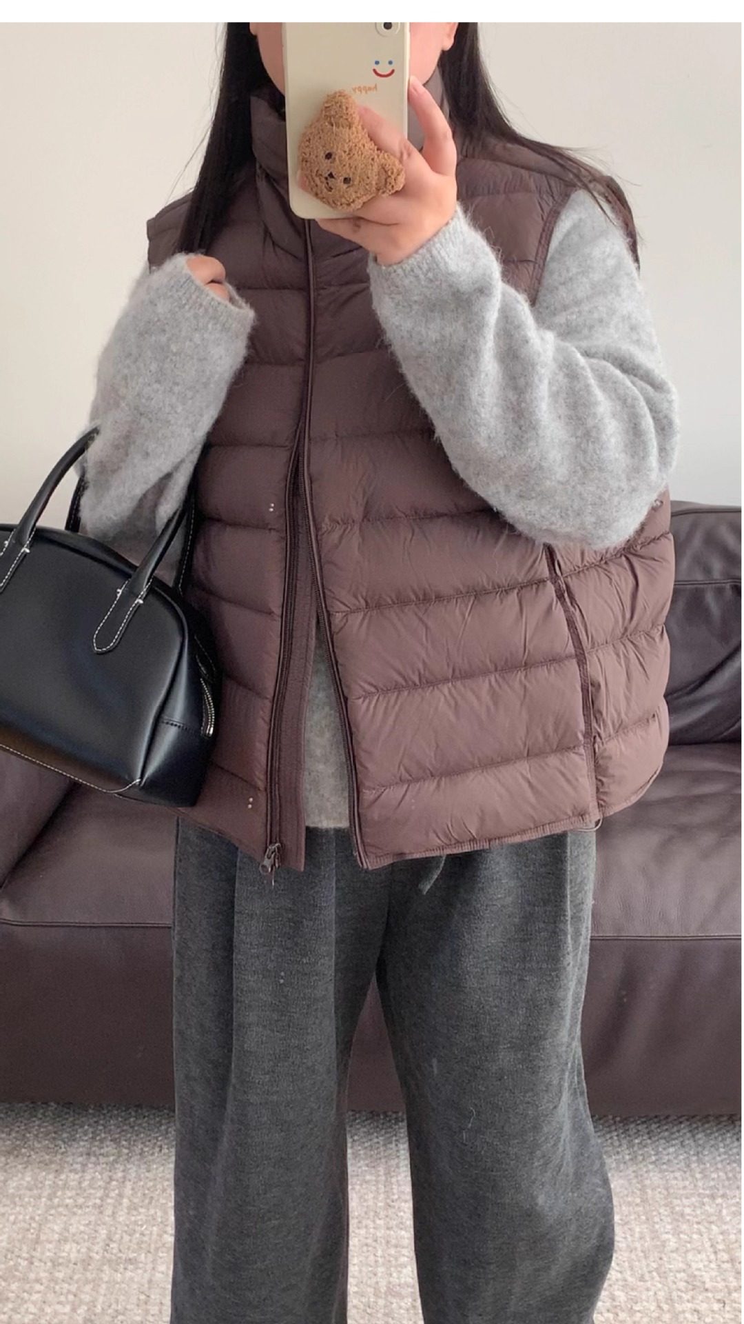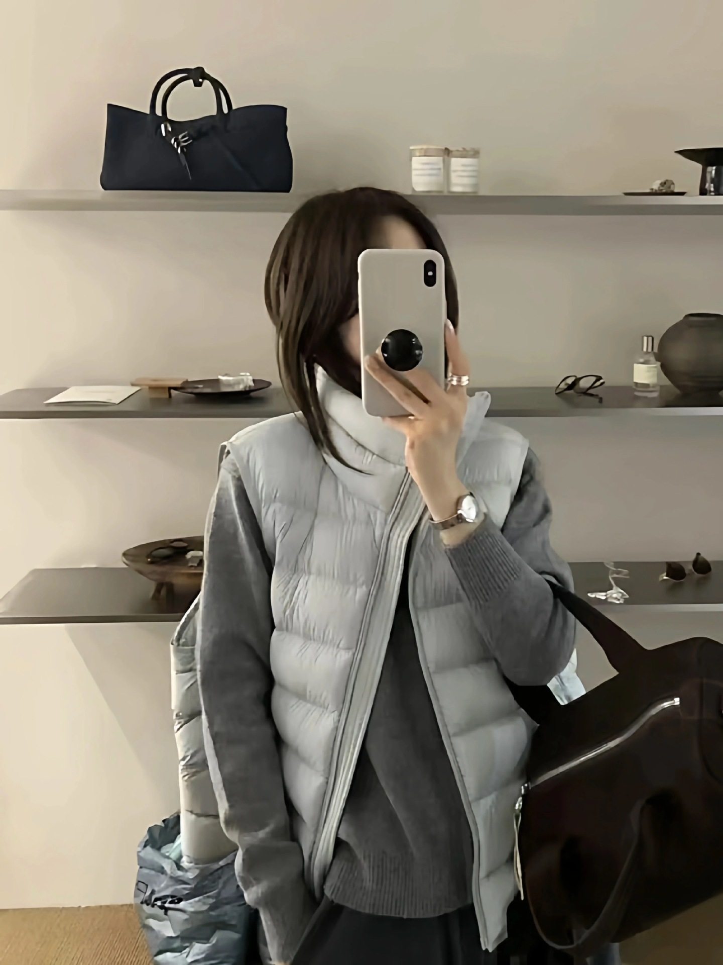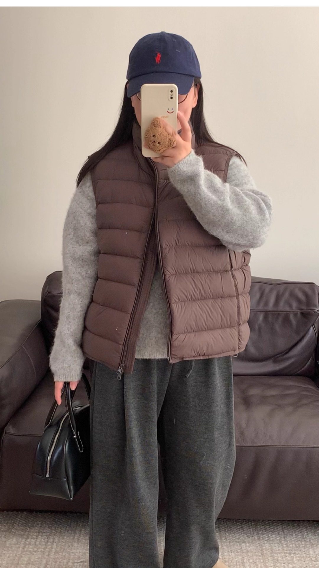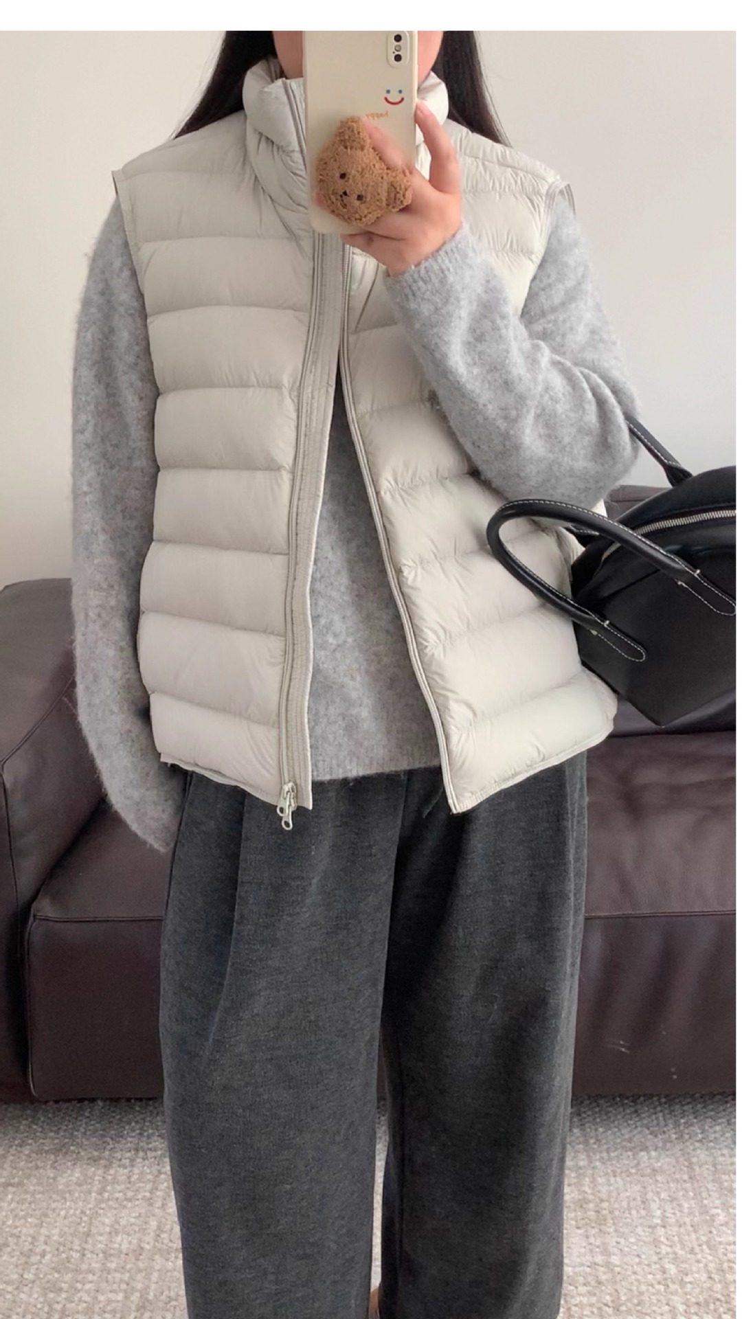 Yellow Ribbed down Vest 2025 Winter New Korean Style Simple Petite 90 White Duck down Vest Jacket