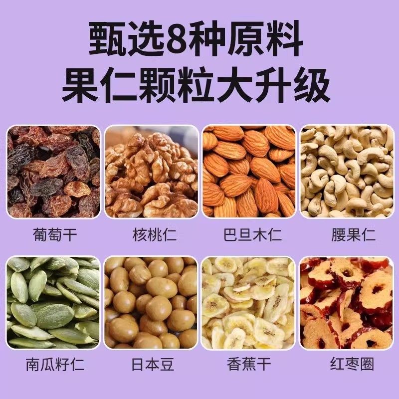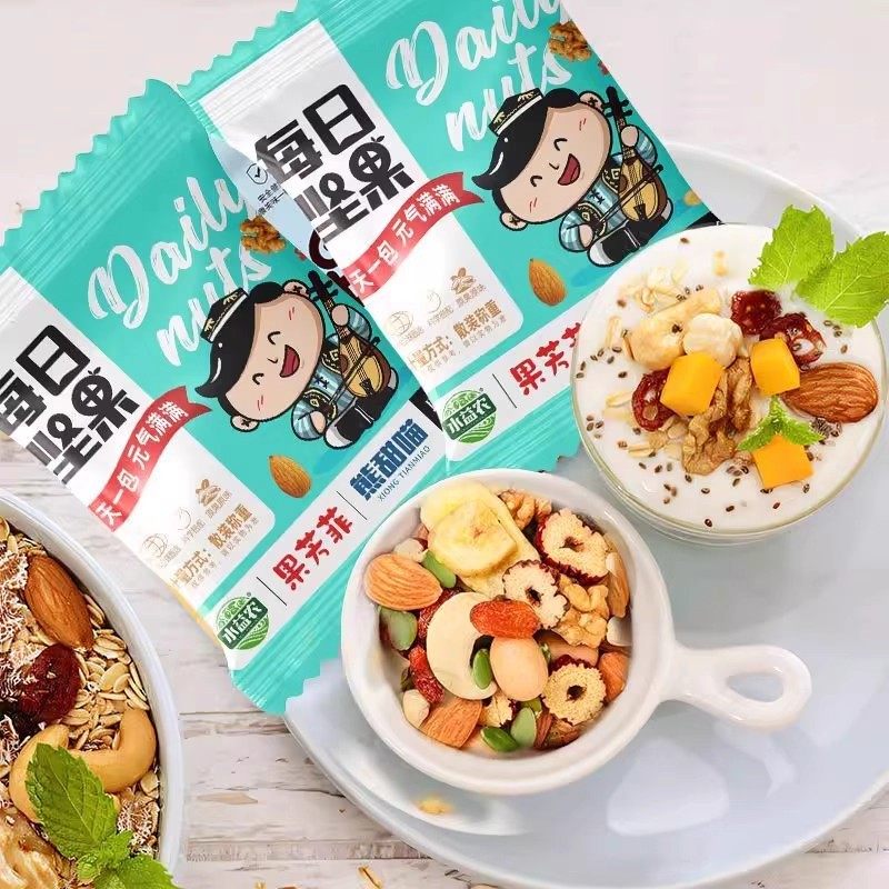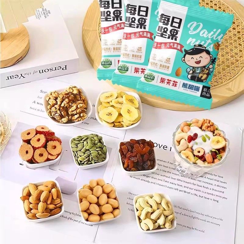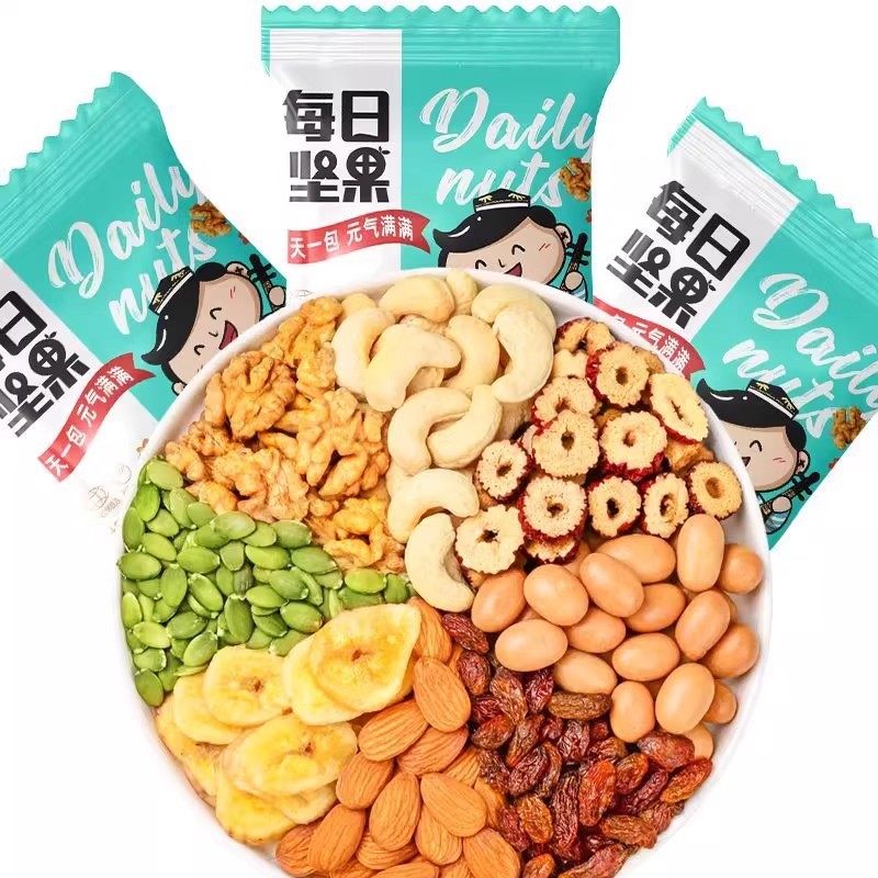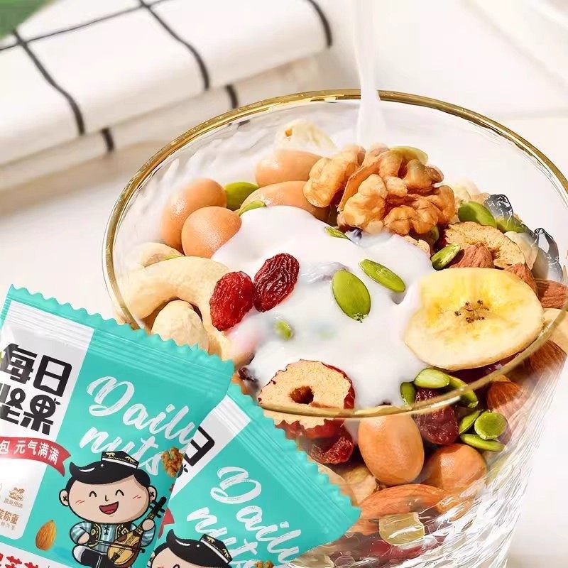 | Packaging specifications | [raw materials] daily nuts*30 packs (classic standard),[real ingredients] daily nuts*50 packs (classic standard),[vitality new upgrade] daily nuts*15 packs (classic standard),[new combination of nuts] daily nuts*5 packs (classic standard),[0 additions, no burden] daily nuts*50 packs (luxury and high-end),[0 addition, no burden] daily nuts*30 packs (luxury and high quality),[0 addition, no burden] daily nuts*15 packs (luxury and high quality),[0 additions, no burden] daily nuts*5 packs (luxury and high quality) |