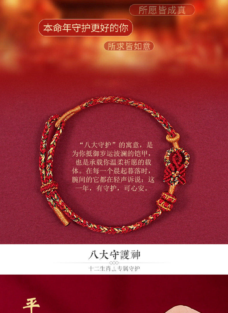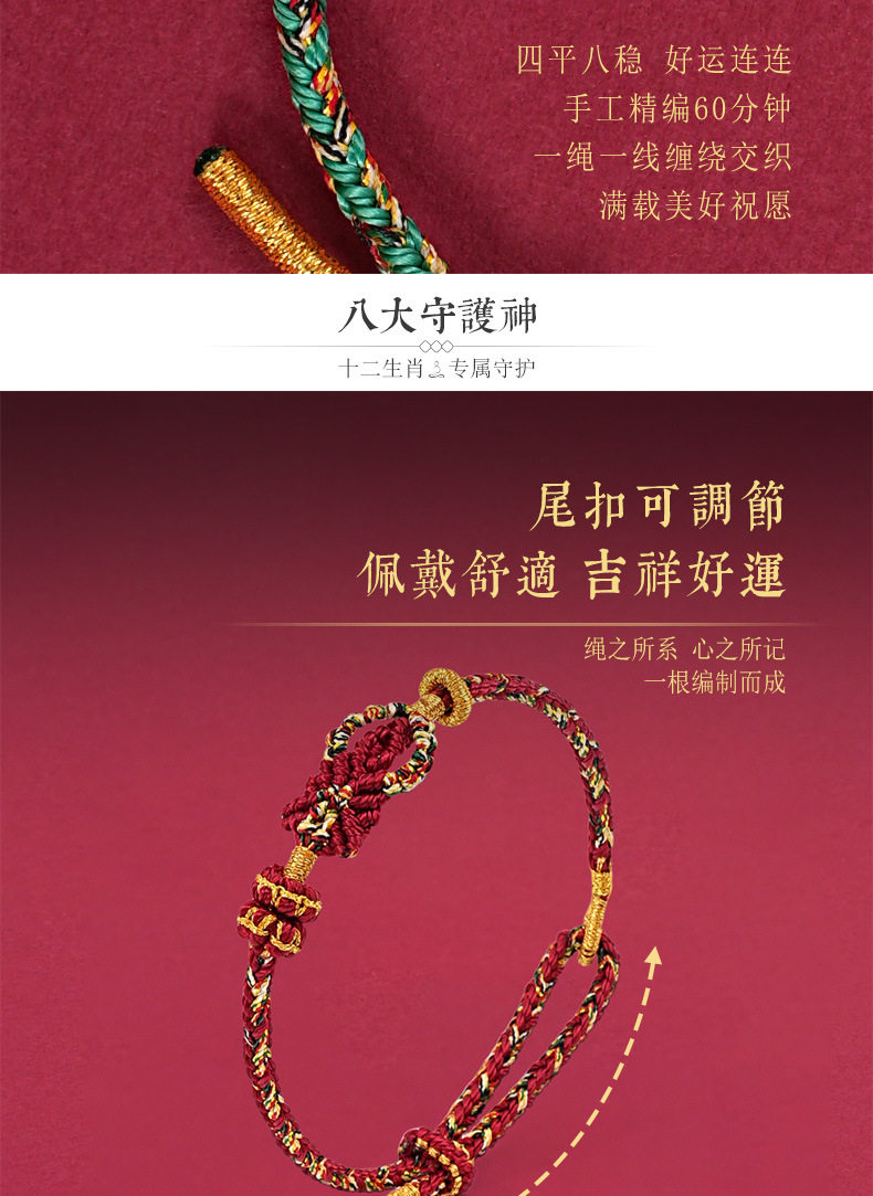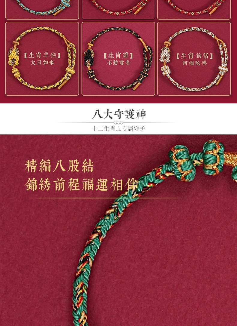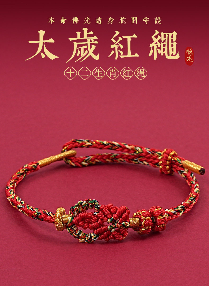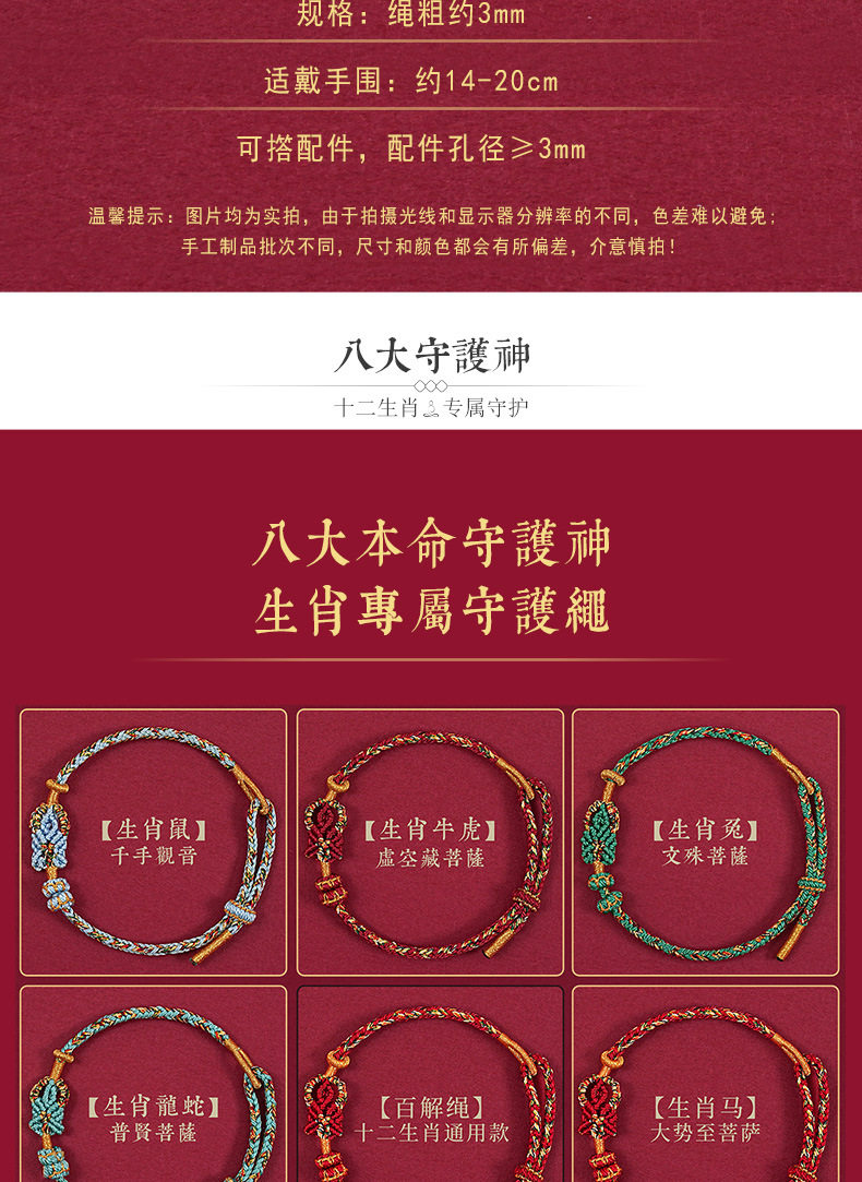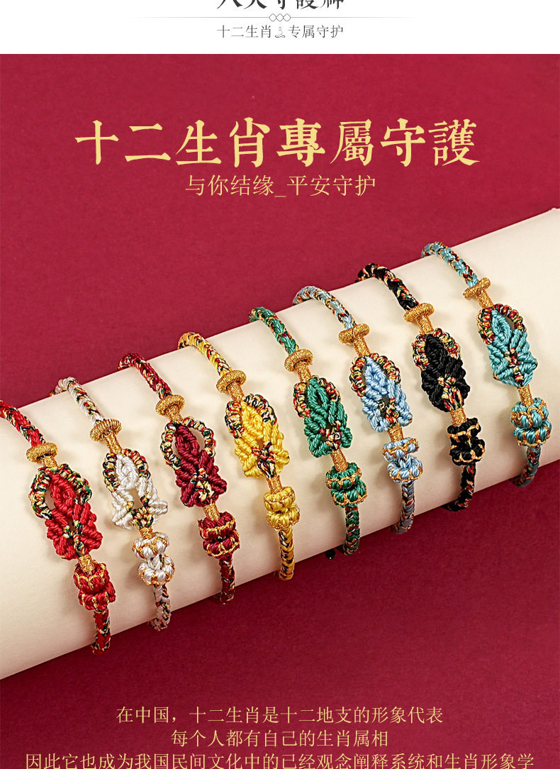Zodiac Year Tai Sui Red Rope Bracelet Twelve Zodiac Signs Zodiac Buddha Braided Bracelet Ethnic Style Couple Gift for Men and Women