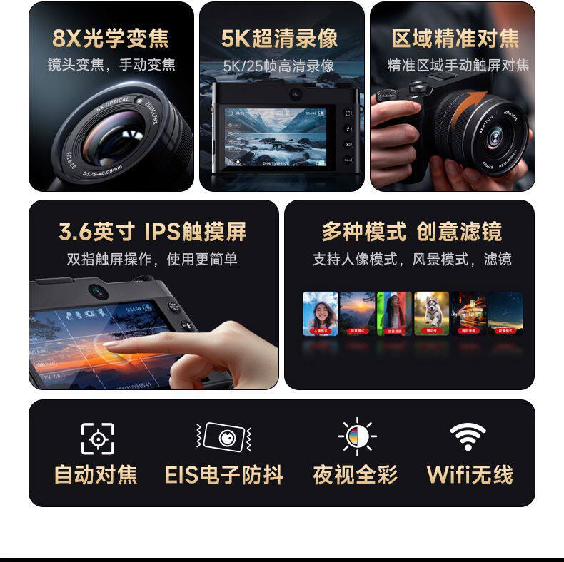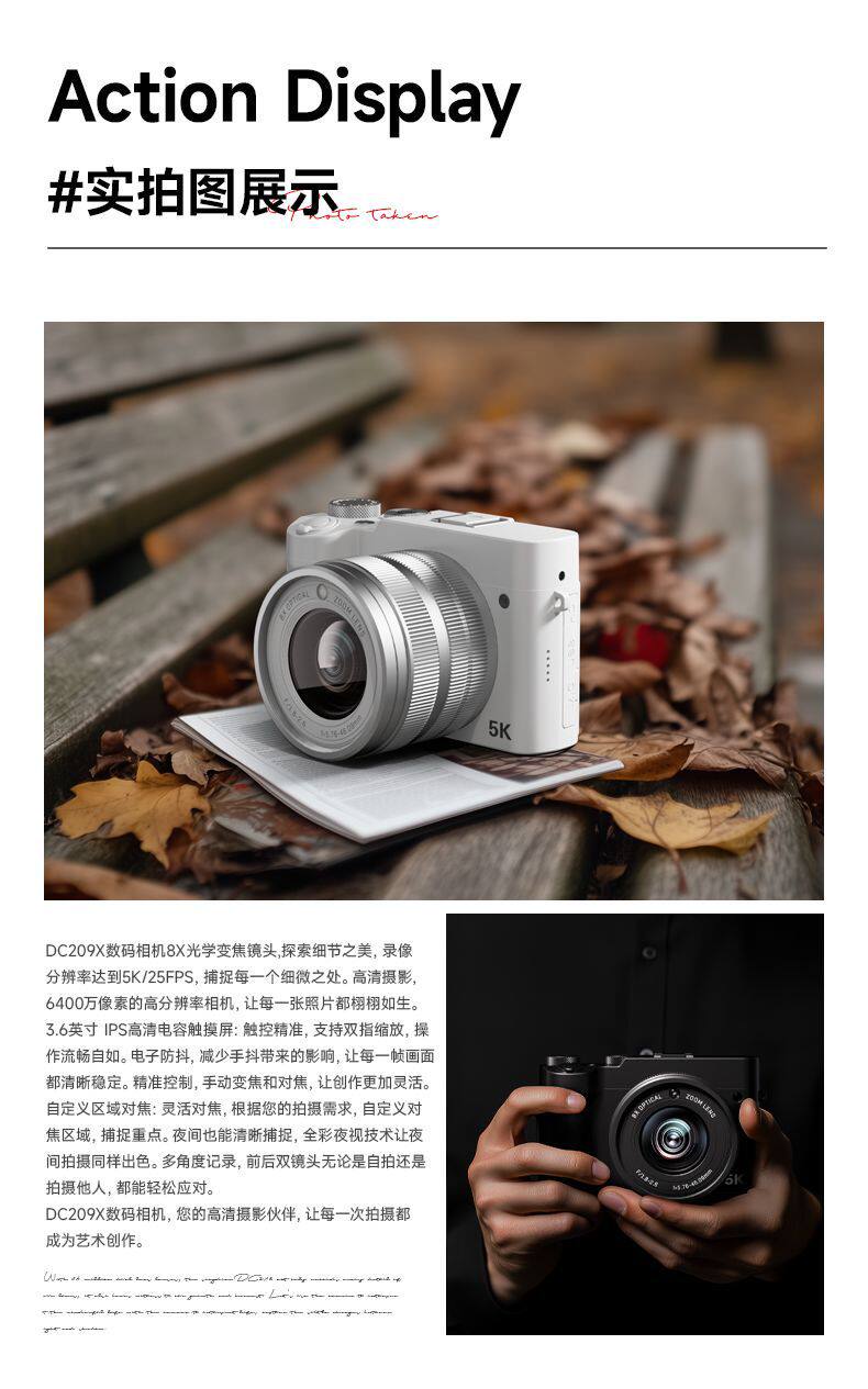 Dc209X Digital Camera High Pixel Optical Zoom Campus Student Wifi High Definition Dual Camera Mirrorless Camera