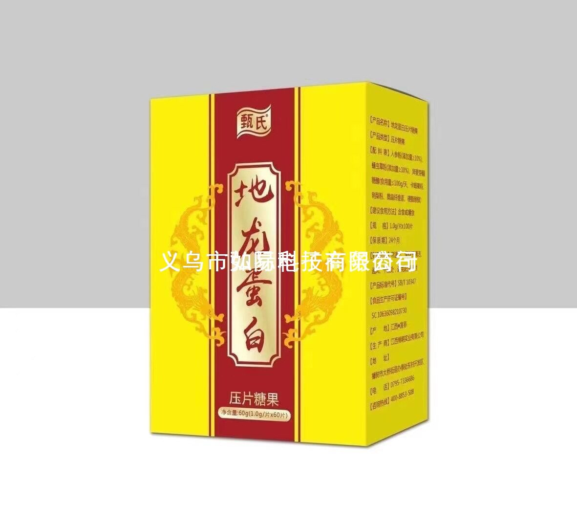 | Packaging specifications | Probiotic camel milk tablets,Camel milk calcium tablet candy,Ginseng cordyceps militaris,Spirulina,Deer blood,Everberry polypeptide,Chicken gizzard, hawthorn malt,Earthworm protein,Dendrobium officinale flower |