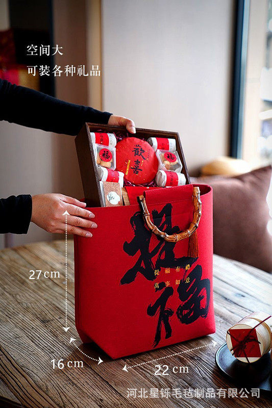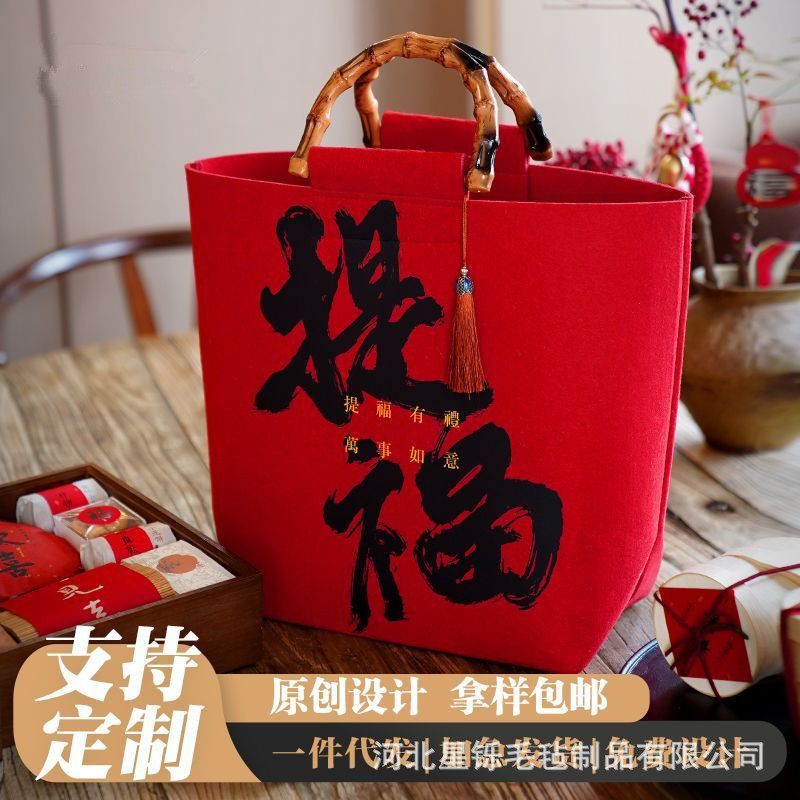 2026 New Year Chinese-Style National Style Blessing Tote Bag, Souvenir Gift, High-End Gift Box, Spring Festival Gift Felt Bag