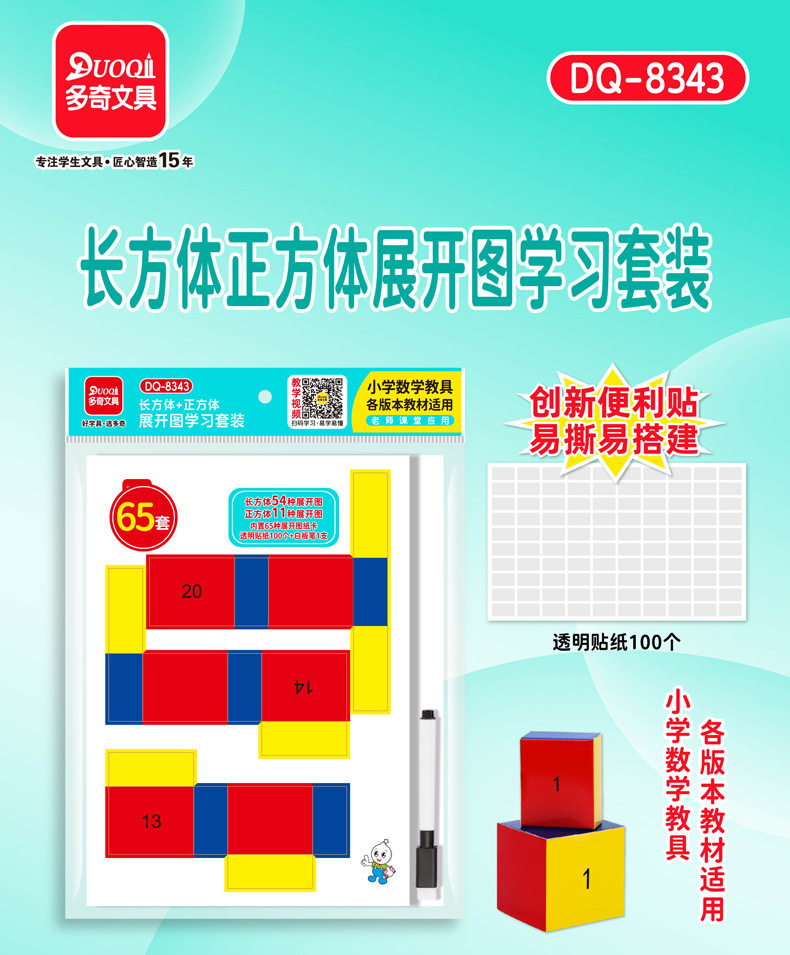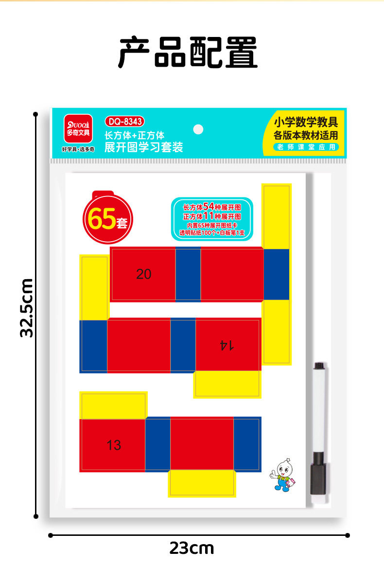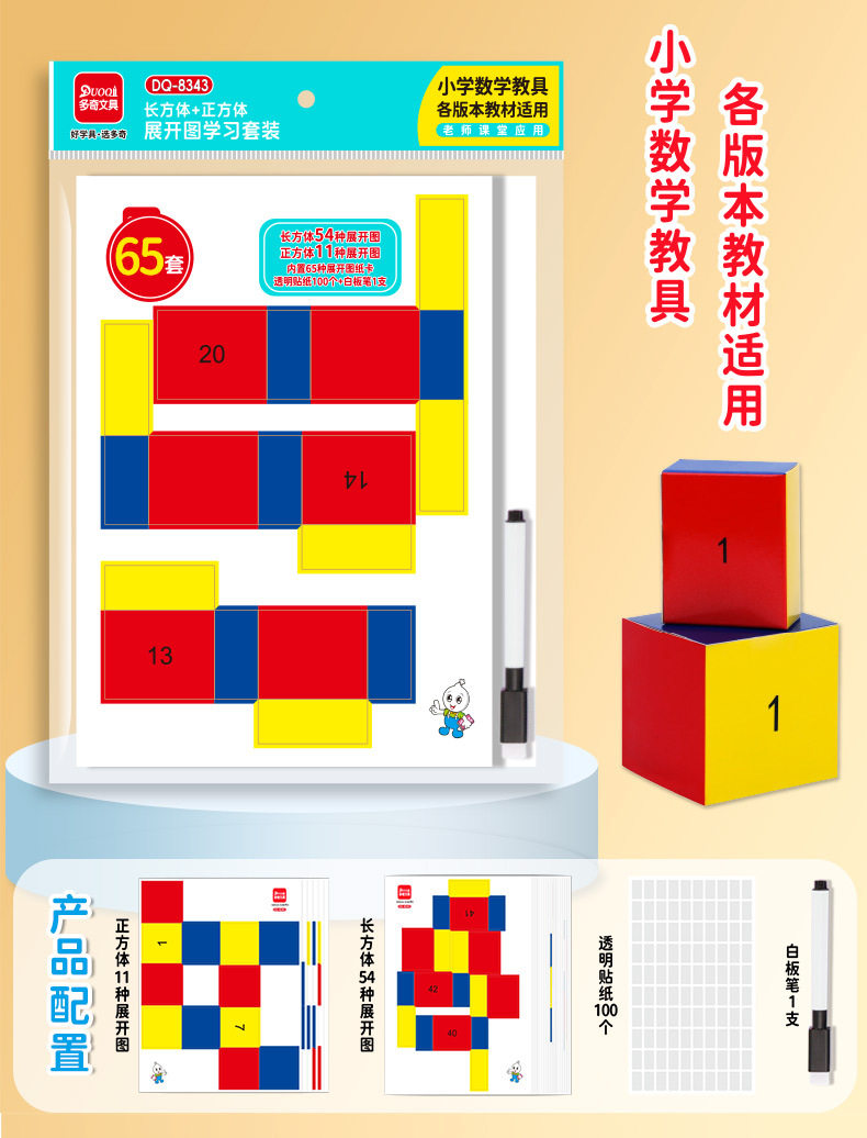| Specifications | 11 types of cubes + 54 types of cuboids [with erasable whiteboard markers and transparent, easy-to-tear and easy-to-use stickers],10 teaching knowledge cards with double-sided high-definition printing [key teaching aids for grades 1-6] |