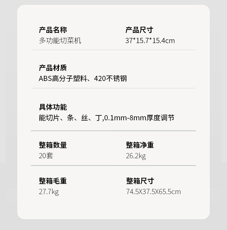 | Product category | Multifunctional vegetable cutter |