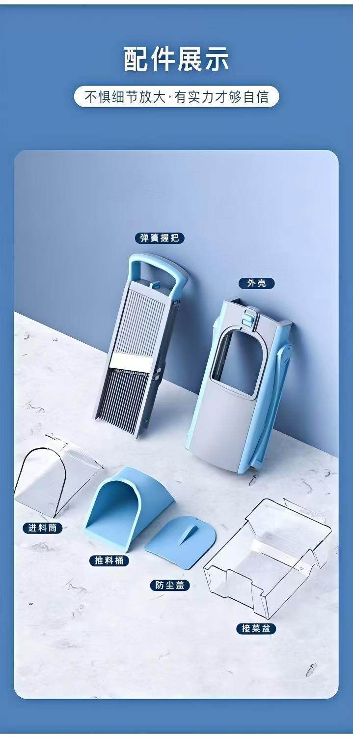 | Color | Blue third generation vegetable cutter (shred 2mm),Green third generation vegetable cutter (shredding 2mm),Pink third generation vegetable cutter (shred 2mm),Household top version (shredded 4mm) blue,Household top version (shredded 4mm) green,Household top version (shredded 4mm) pink,Generation old style black,First generation old green,First generation, classic orange |