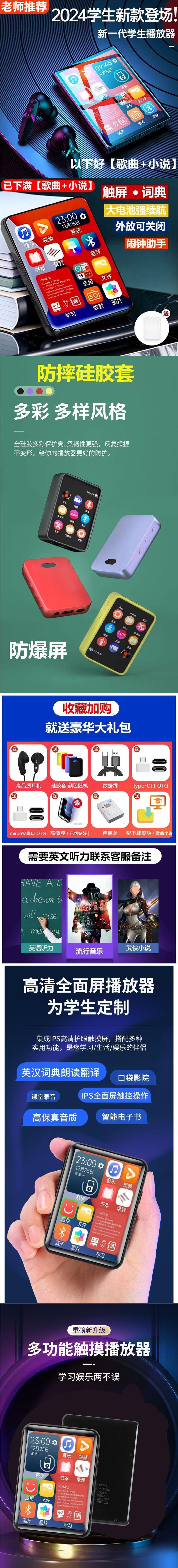 Mp4 Student Mp5 Touch Screen Version for High School Students to Read Novels and Listen to Songs Mp3 Walkman Can Be Connected to Bluetooth Student Version