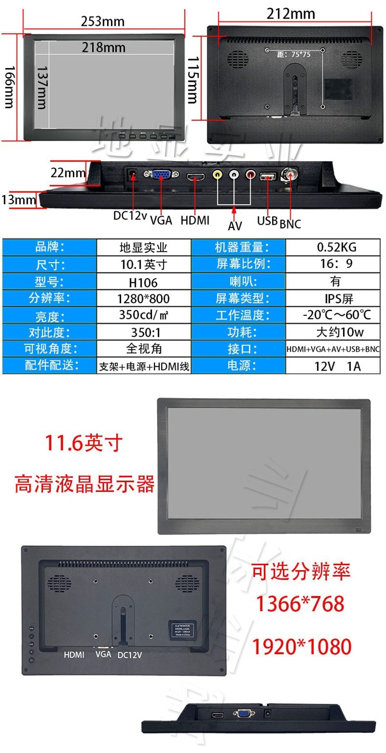 | Color | 7inch hdmi+vga+av audio hd with power supply,7inch home av silent no power supply,7inch homeav silent power supply ahd high definition signal,7inch av silent power supply (ultra hd ips screen),7inch single vga comes with power supply, can be replaced with a car charger, ultra-clear ips screen,7inch car av silent (ultra hd ips) wide voltage,7inch car av (ultra hd ips screen) ahd digital signal,7inch car-mounted four-pin aviation head, silent (ultra-high definition ips screen),7inch vehicle-mounted four-pin aviation head wide voltage ahd digital signal,7inch hdmi three-in-one ultra-clear ips screen with sound and power supply,7inch metal vga+hdmi silent (1280) ultra-clear ips screen,7inch metal vga+hdmi with sound (1280)) ultra-clear ips screen,8inch hdmi square screen with sound (usb can be plugged in) ultra-clear ips screen,10.1inch hdmi (1024*600) tn screen silent,10.1inch hdmi rectangular (1024*600) tn screen with sound,10.1inch hdmi (1024*600) ultra-clear ips screen with sound,10.1inch hdmi full interface (1280*800) ultra-clear ips screen silent,10.1inch hdmi+vga+av+bnc+usb ultra-clear ips screen with sound,10.1inch hdmi rectangular (1080p) ultra-clear ips screen with sound,11.6inch vga+hdmi silent (1366*768) ultra-clear ips screen silent,11.6inch hdmi+vga (1920*1080) ultra-clear ips screen with sound,11.6inch hdmi five-in-one interface with sound 1366*768,13.3inch vga+hdmi with sound (1920*1080) ultra-clear ips screen,13.3inch vga+hdmi (1920*1080) ultra-clear ips screen silent,13.3inch hdmi five-in-one interface (1920*1080) ultra-clear ips screen with sound,15.6inch vga+hdmi (1920*1080) ultra-clear ips screen silent,15.6inch hdmi five-in-one interface (1920*1080) ultra-clear ips screen with sound |