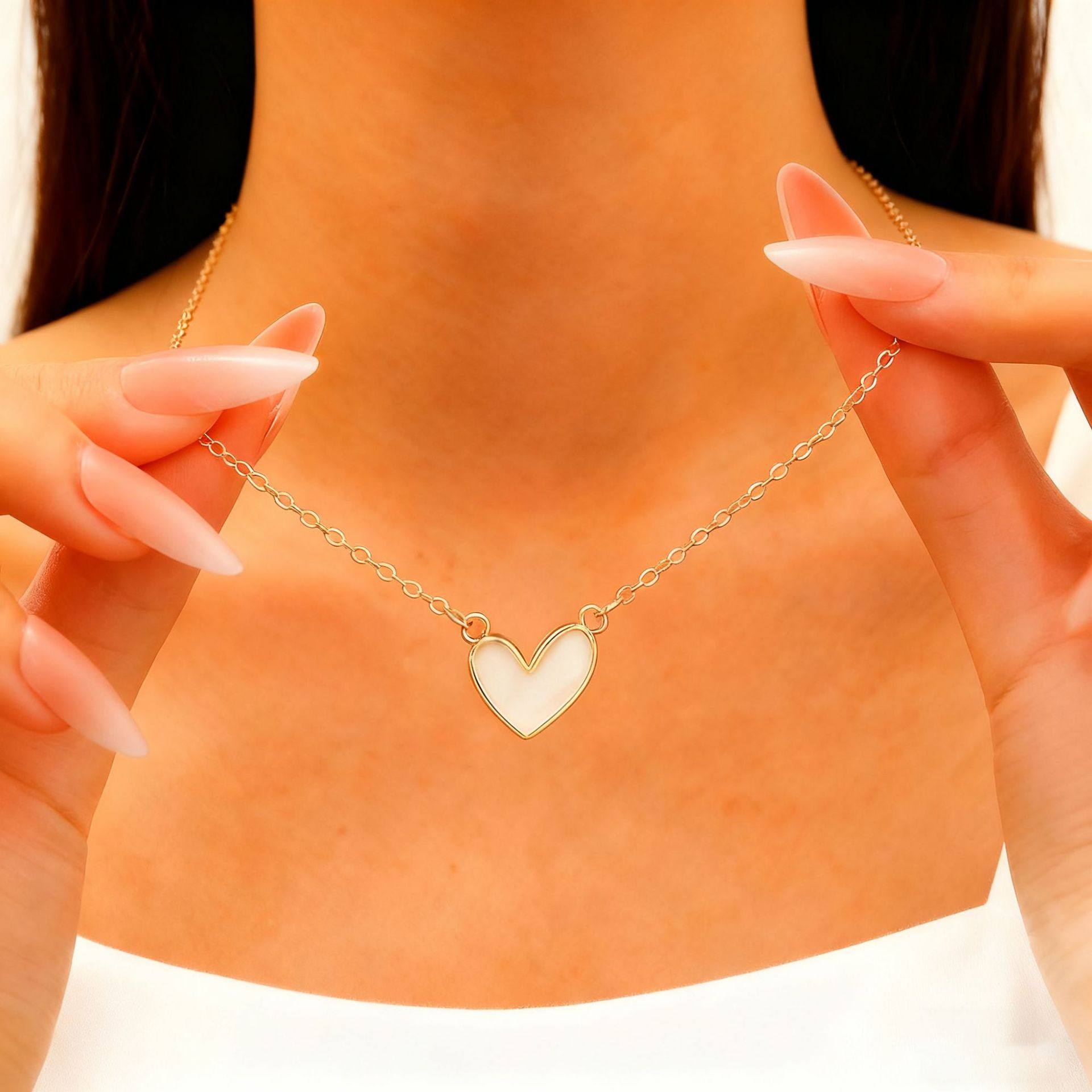 Ins Style Popular White Oil Dripping Heart Necklace for Women 2025 Niche Design Exquisite Clavicle Chain Elegant Necklace