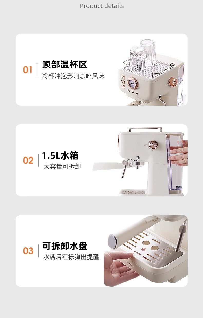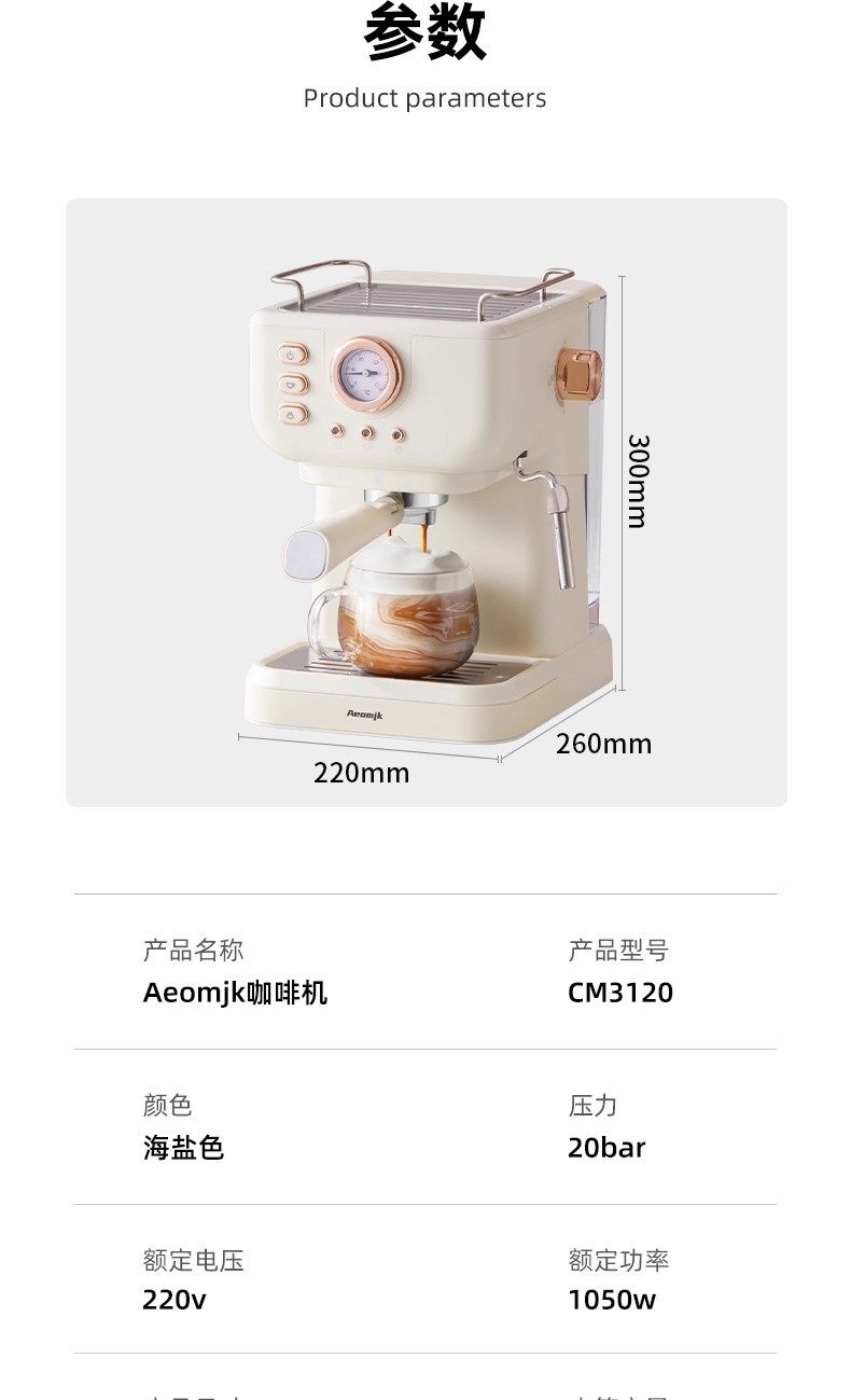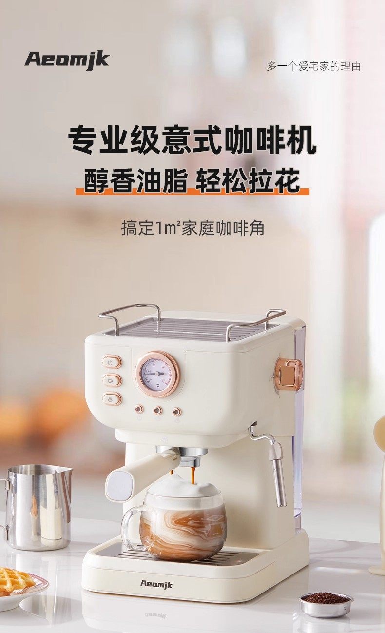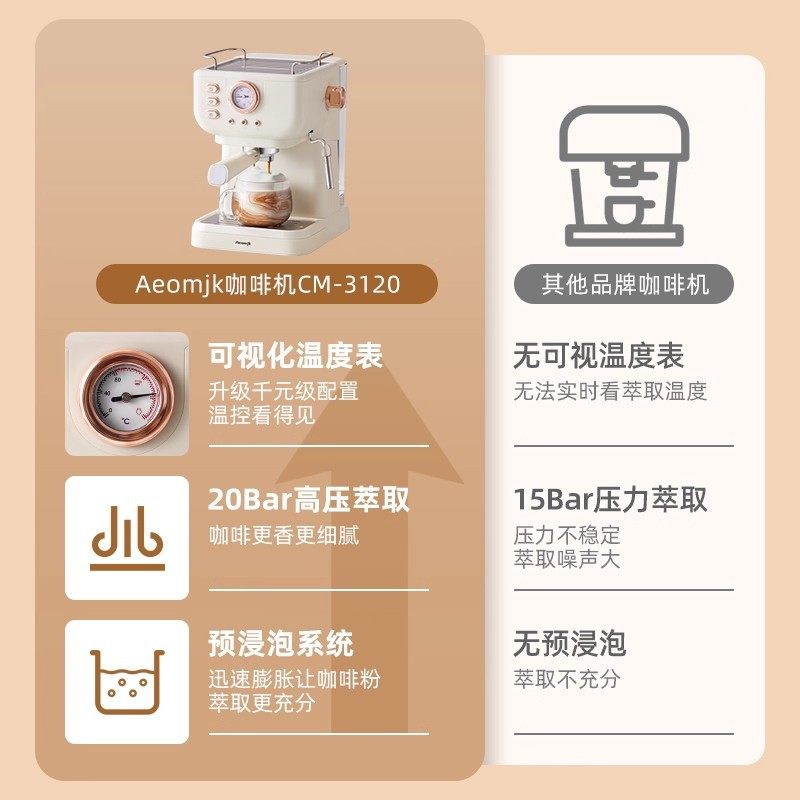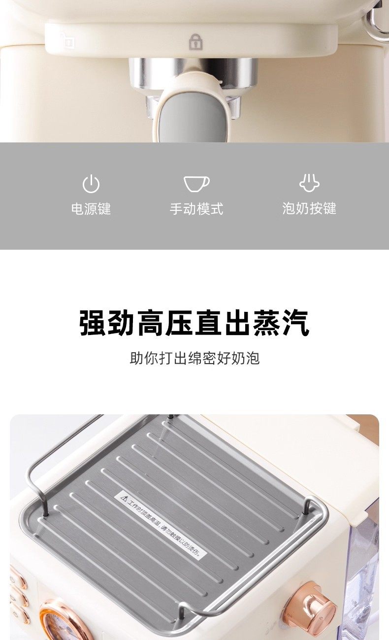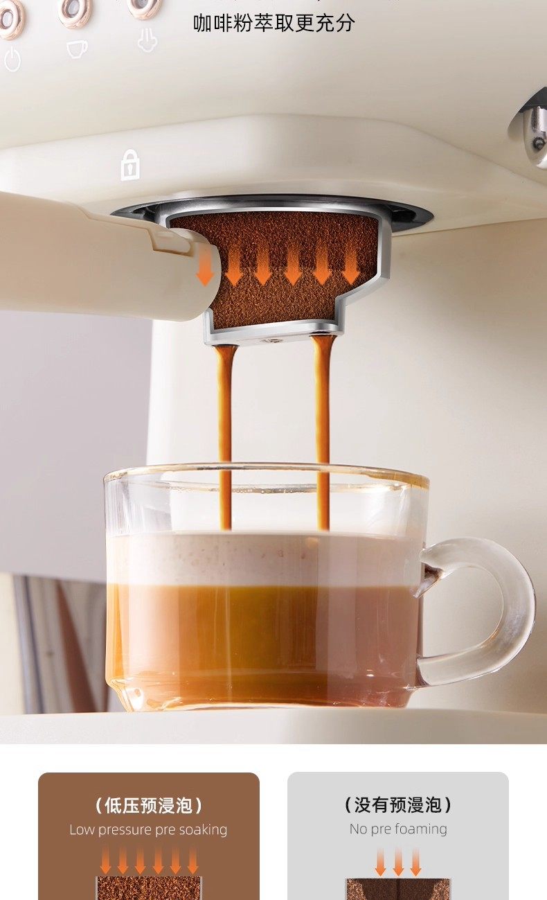 Cross-Border 20Bar Household Semi-Automatic All-In-One Retro-Style Concentrated High-Pressure Extraction Milk Foaming Pressure Coffee Machine