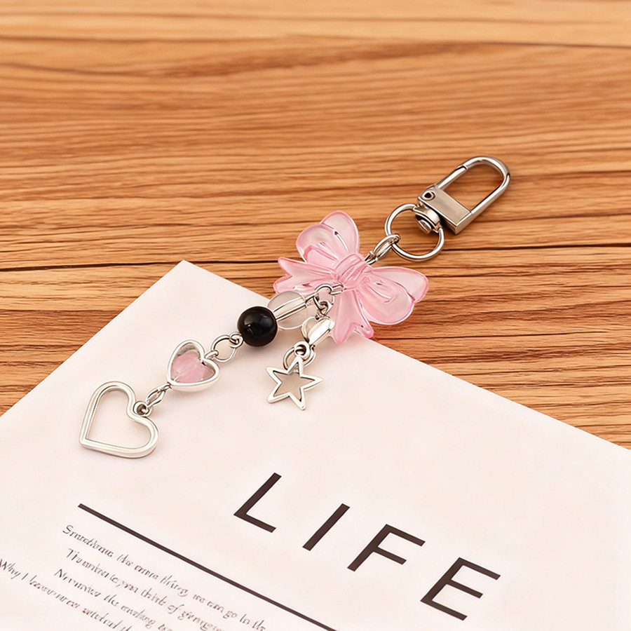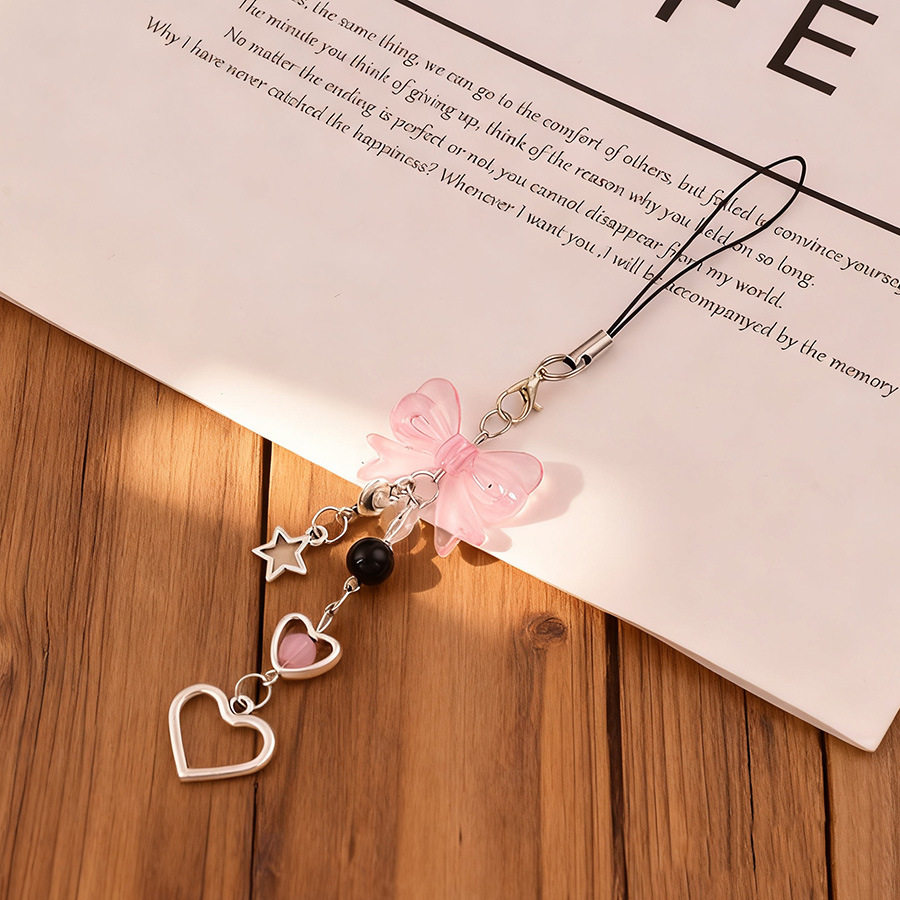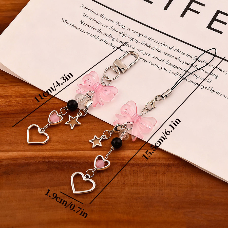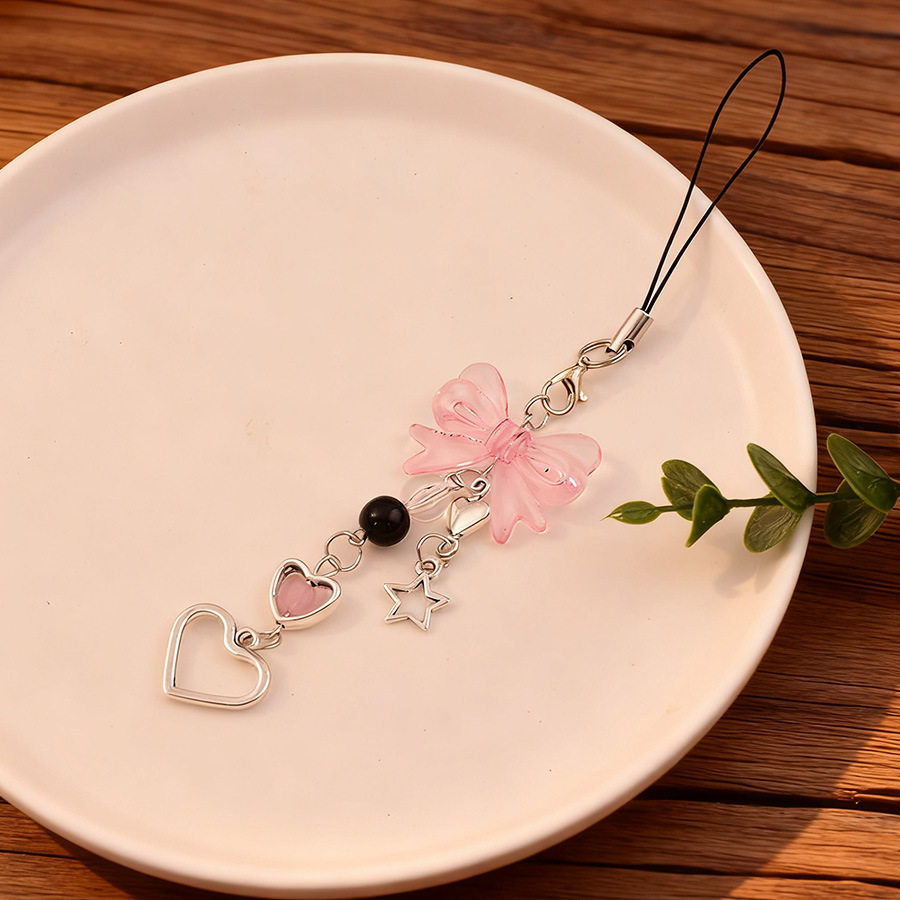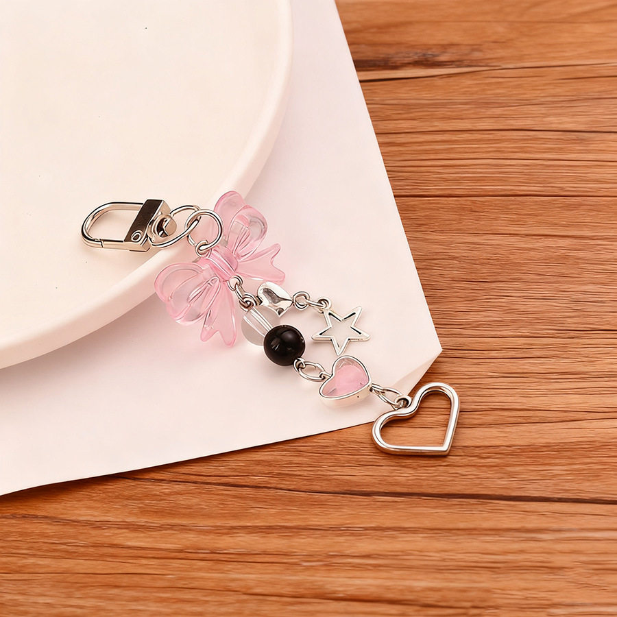 Korean Sweet and Cool Ins Bow Peach Heart Five-Pointed Star Pendant Keychain Girl Pink Mobile Phone Chain Bag Pendant