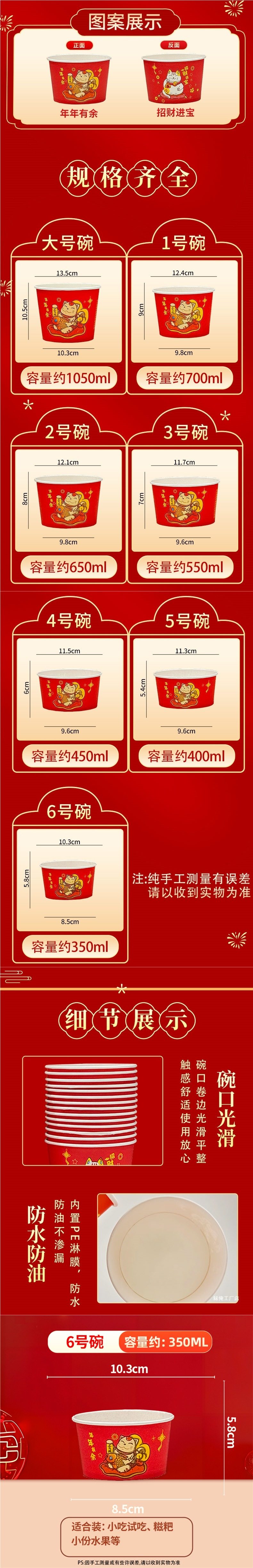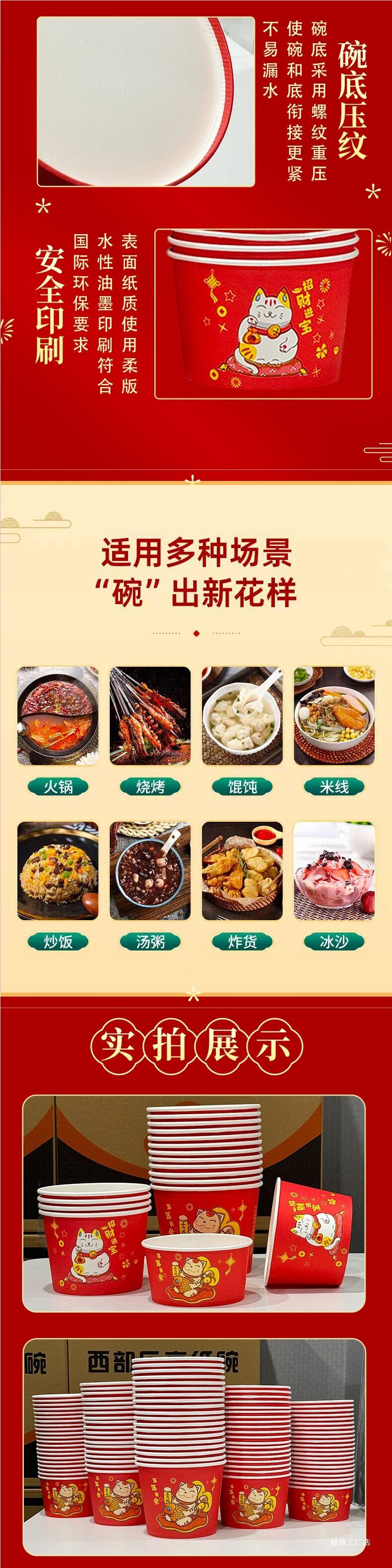 Disposable Paper Bowl New Year and Spring Festival Household Tableware Set Thickeneded Rice Bowl Red Festive Bowl New Year Dinner Box