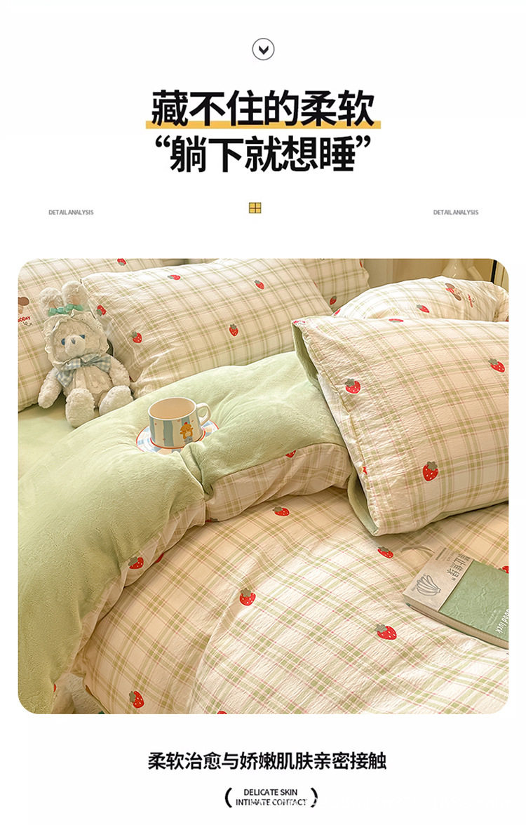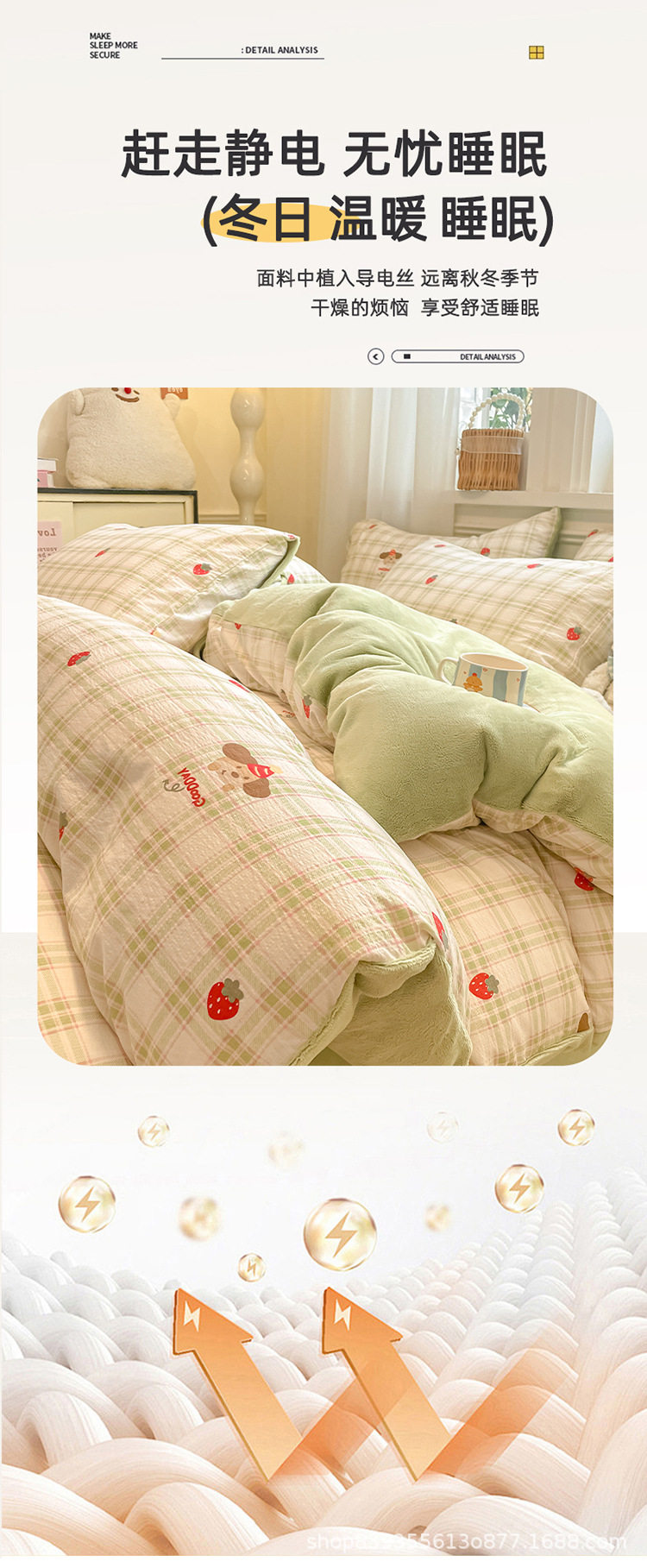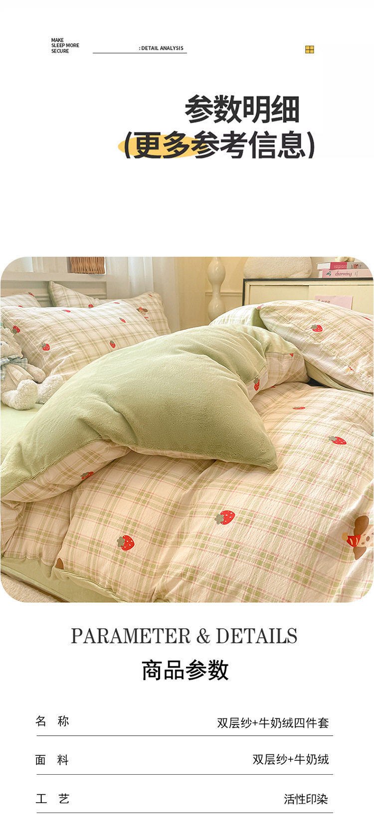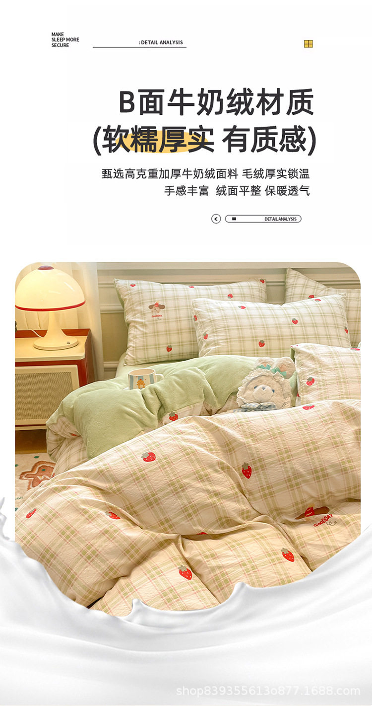 Milk Velvet Bed Four-Piece Set Thickened Warm Double-Layer Yarn Plus Velvet Quilt Cover Bed Three-Piece Set Autumn and Winter Bed Sheetss and Fitted Bed Sheetss