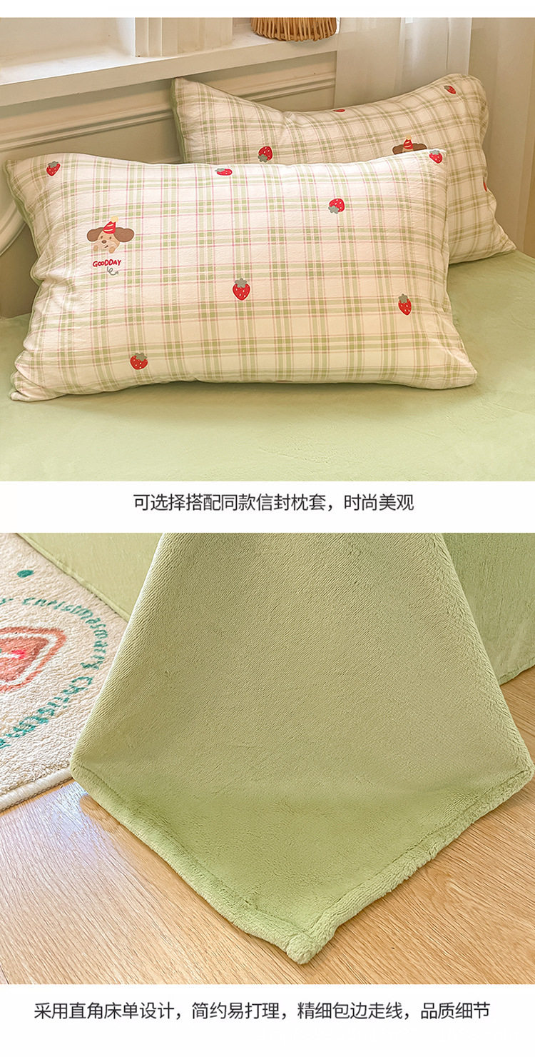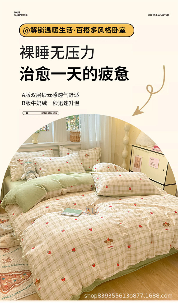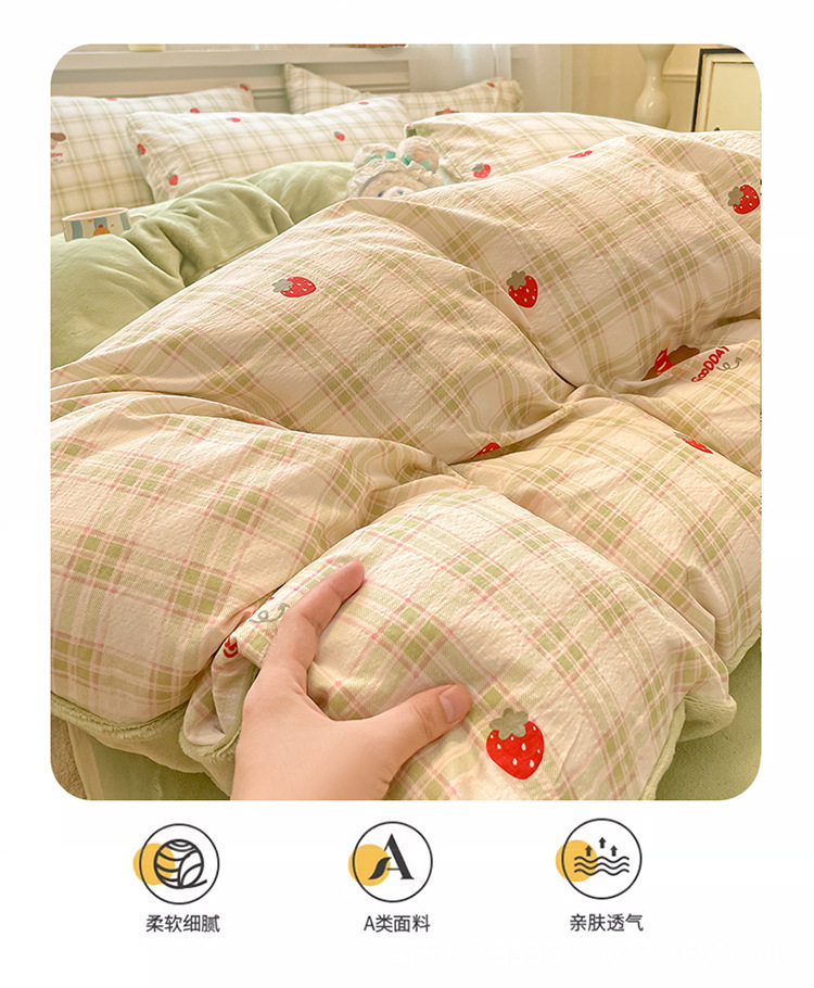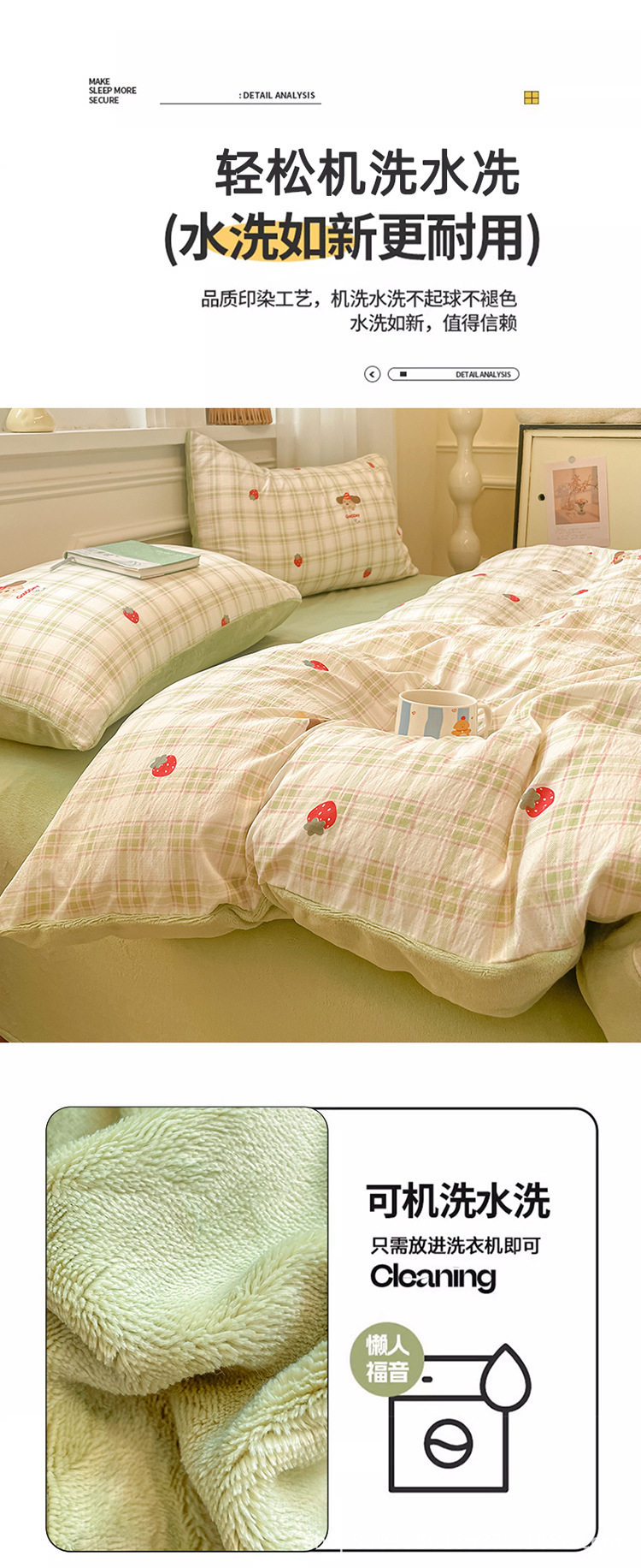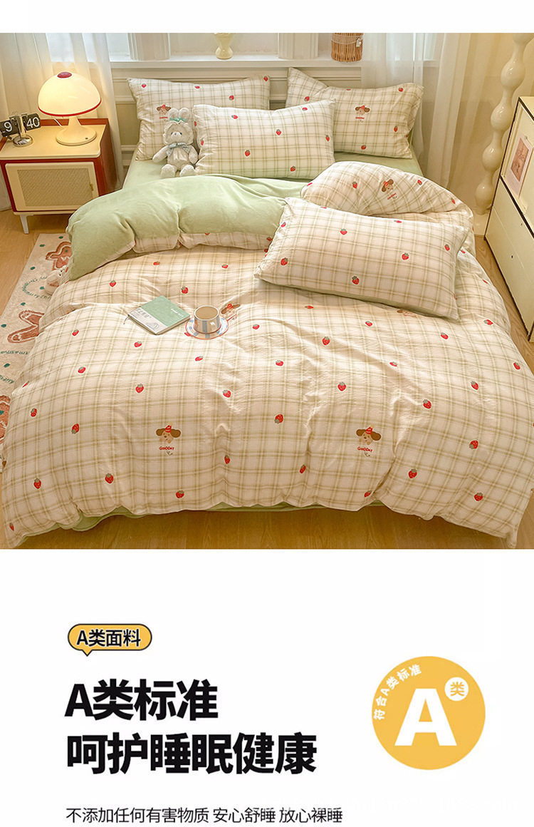 Milk Velvet Bed Four-Piece Set Thickened Warm Double-Layer Yarn Plus Velvet Quilt Cover Bed Three-Piece Set Autumn and Winter Bed Sheetss and Fitted Bed Sheetss