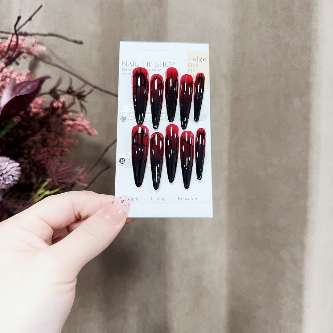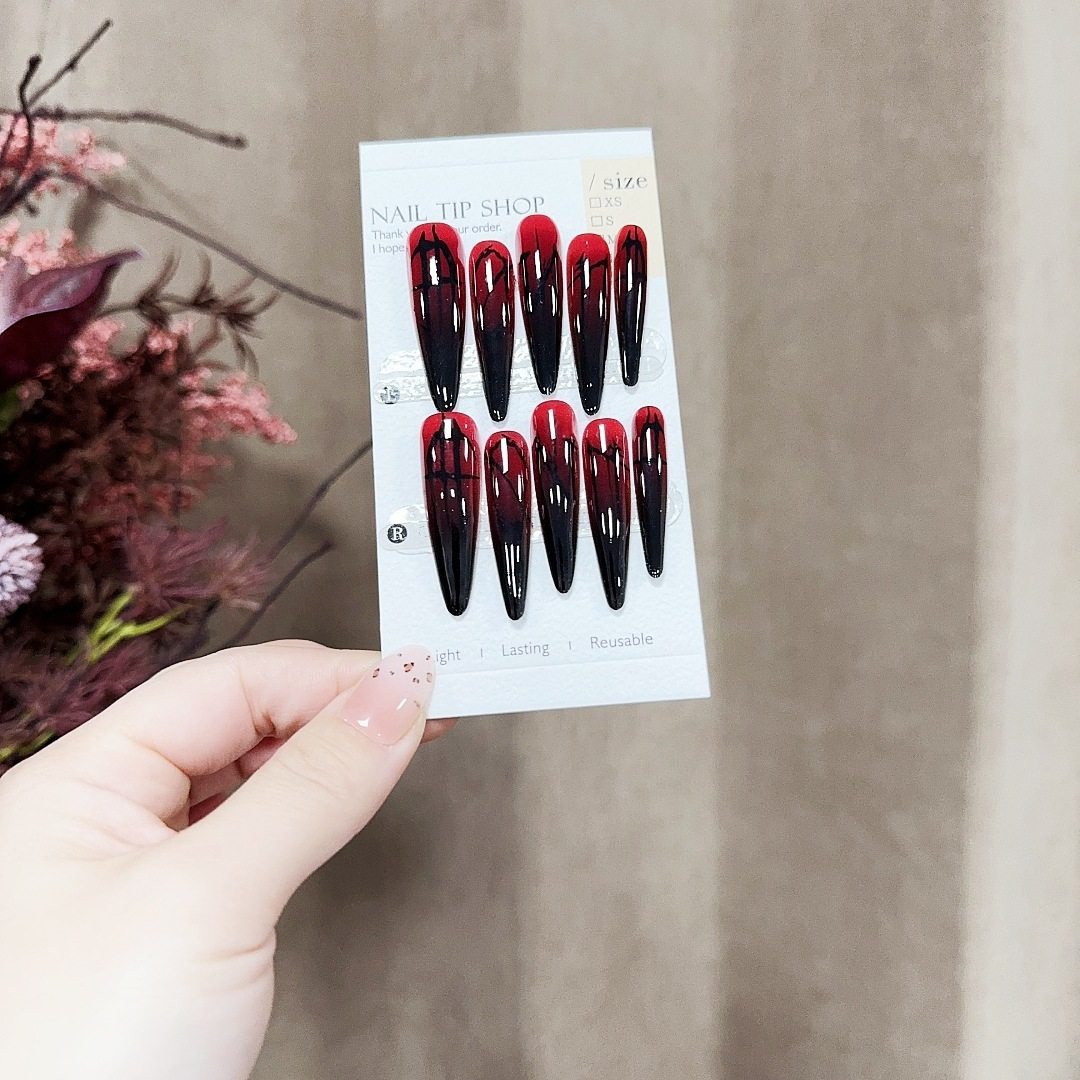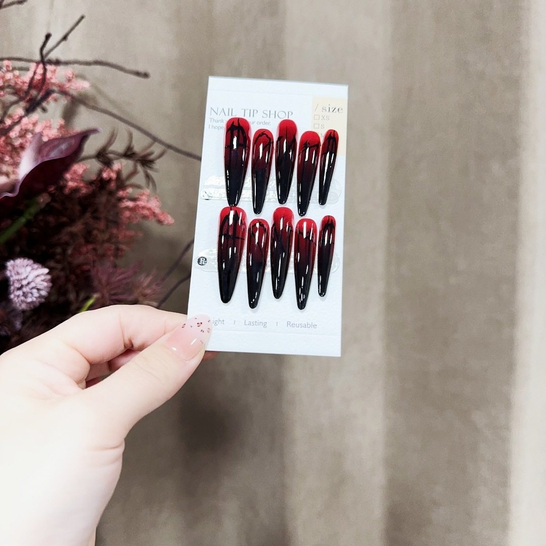 S379-Pre-Made Nail Polish Gothic Aesthetic Red and Black Gradient Wearable Nails Niche Mysterious Long Detachable Nails