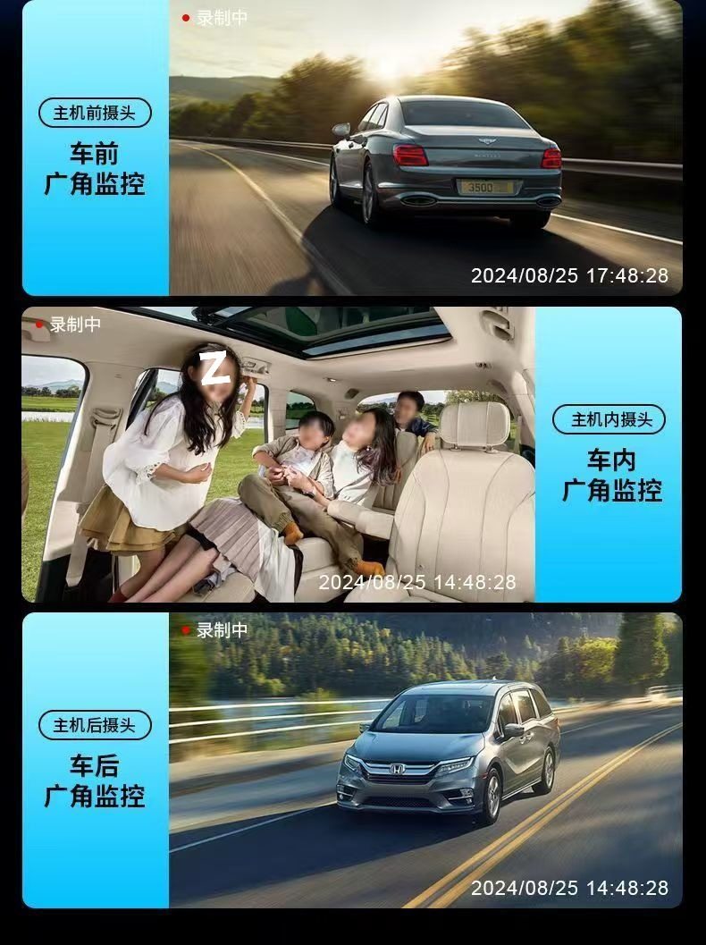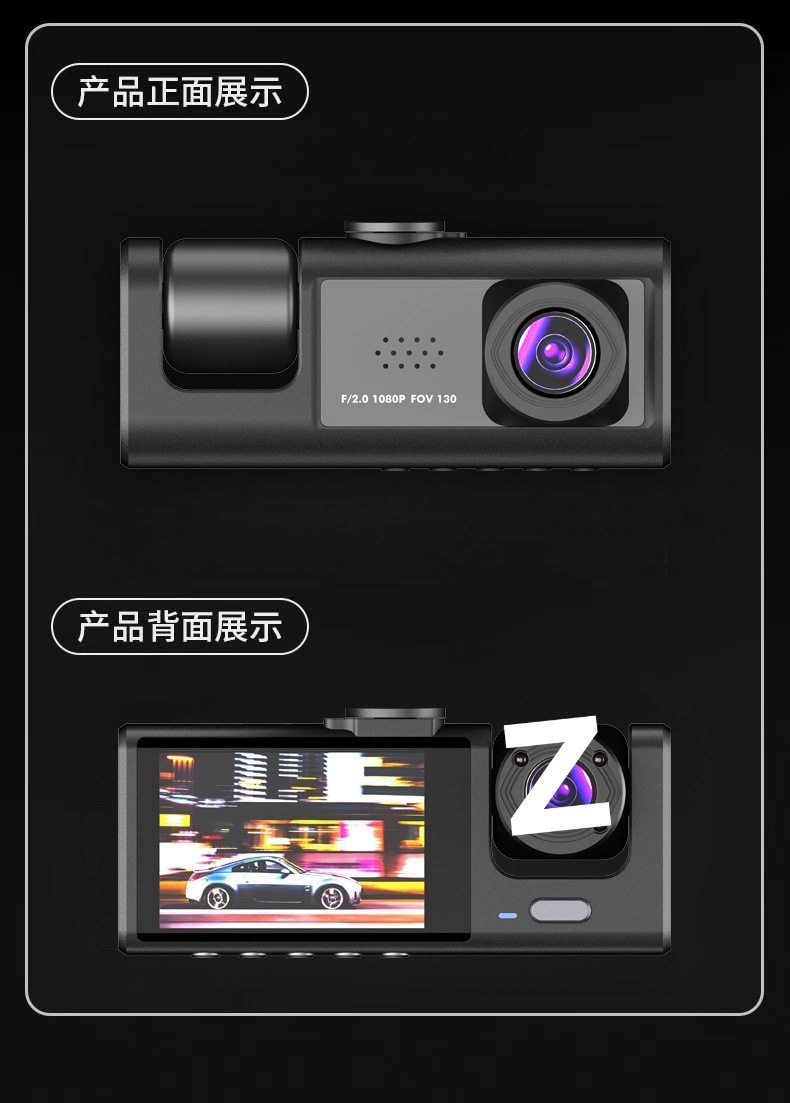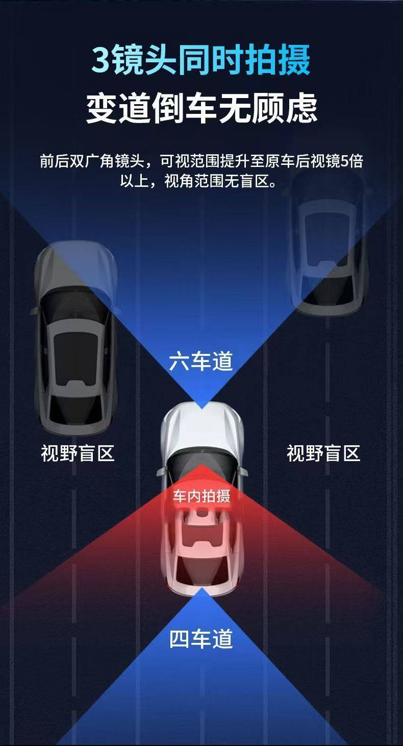 | Color classification | [dual lens] front of the car + inside the car,[three shots] recording in front of the car + inside the car + behind the car |