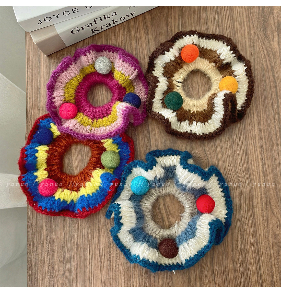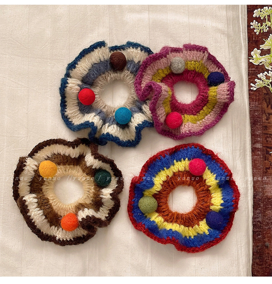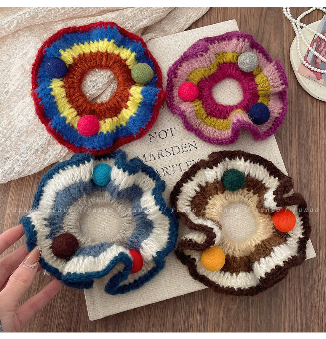 Hand-Knitted Colorfulful Ball Hair Band for Women to Tie Balls, Hair Rope, Rubber Band, High Elasticity and Durable Head Flower Hair Accessories