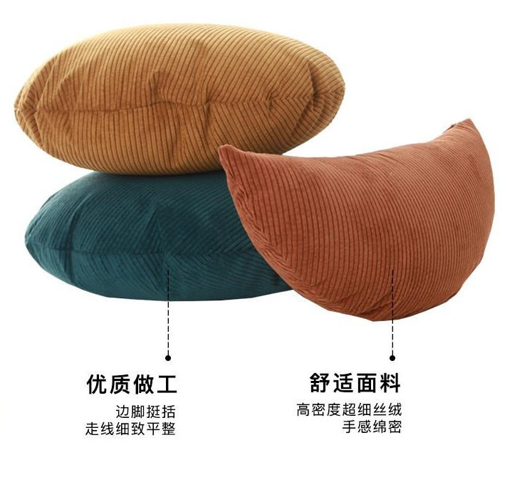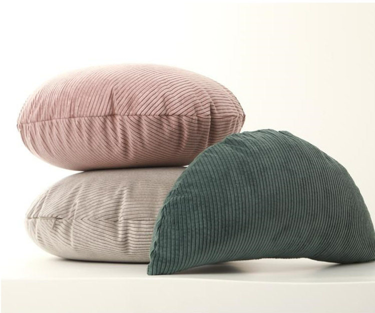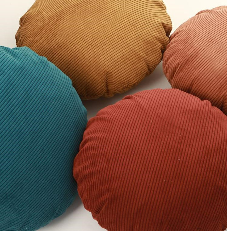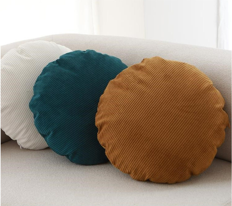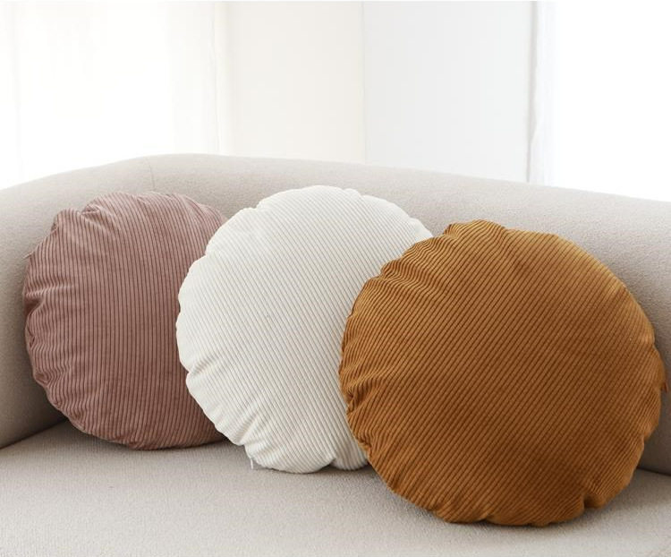 Amazon Ins Pinstripes Corduroy Round Pillow Bedroom Pillow Sofa Cushion Office Back Pillow Case