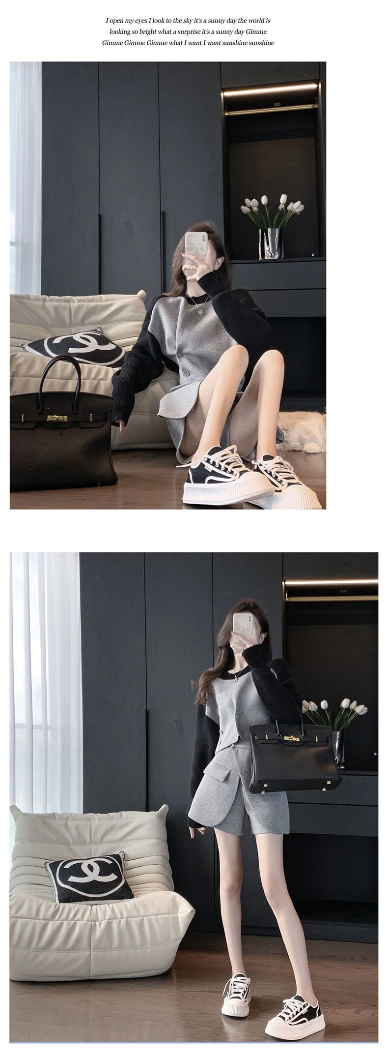 Mom's Casual Sports Suit Women's Autumn New Ladylike Style Fashionable Waist Shorts Two-Piece Set