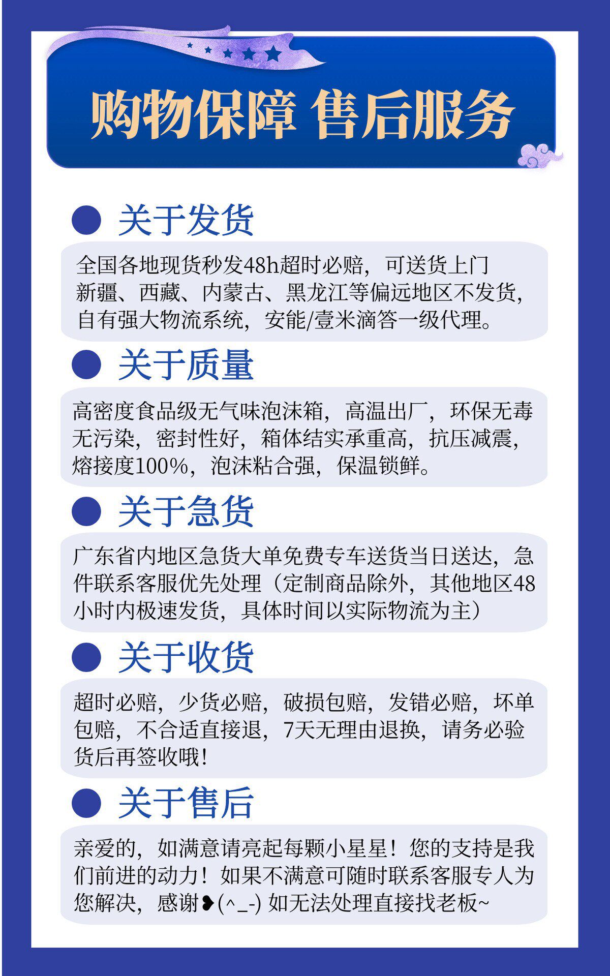 | Foam box specifications | Foam boxes can be customized to any size |