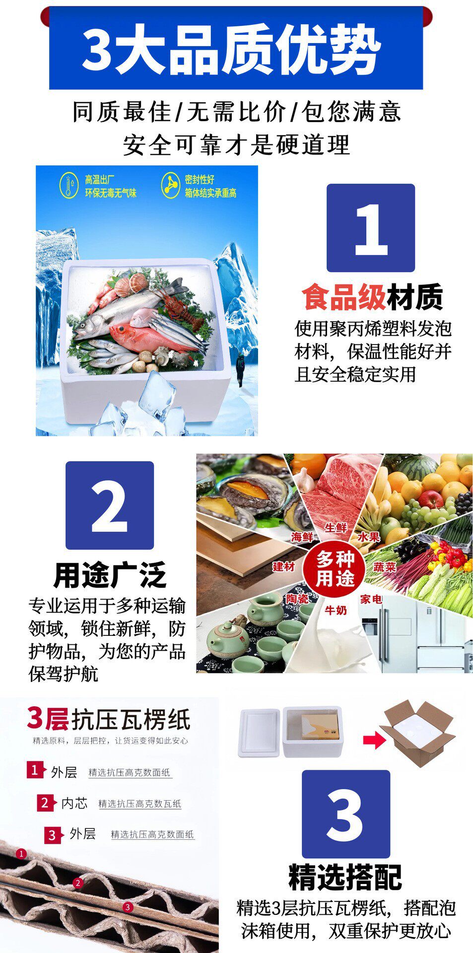 | Purpose | Seafood, fruit and vegetable refrigerated and frozen insulation foam box |