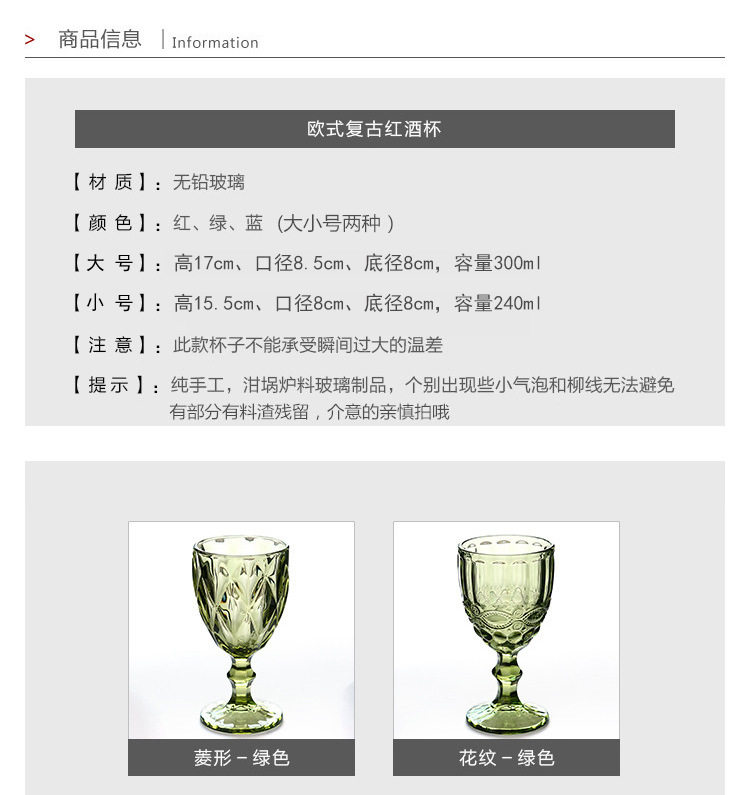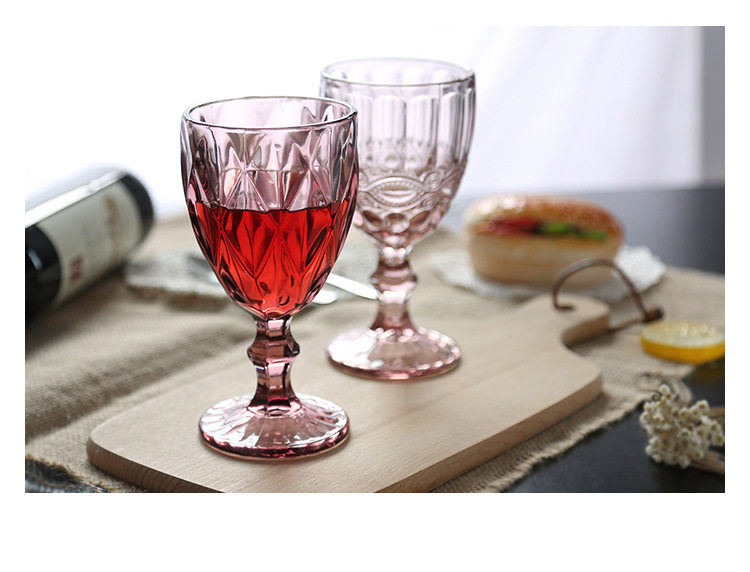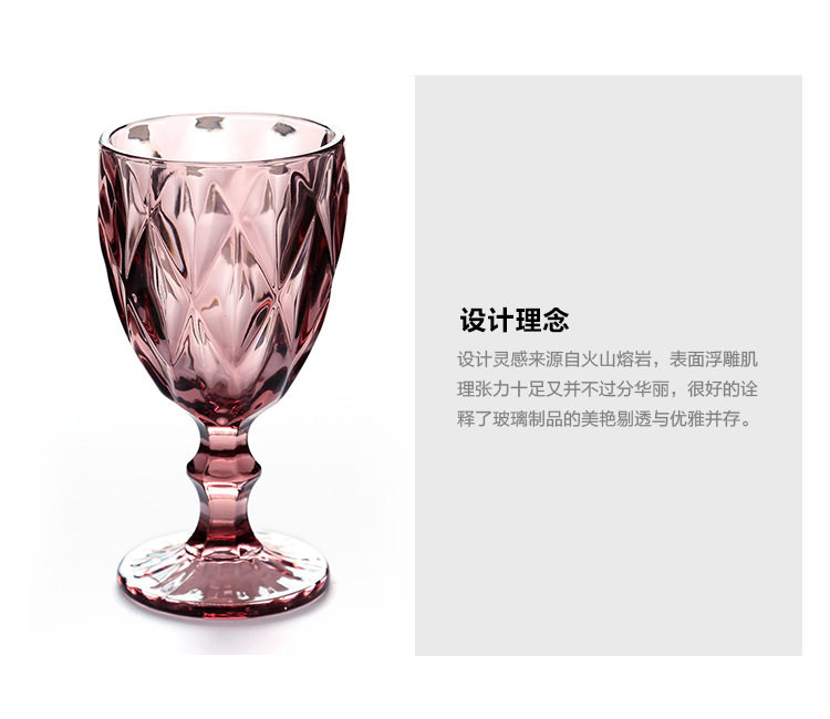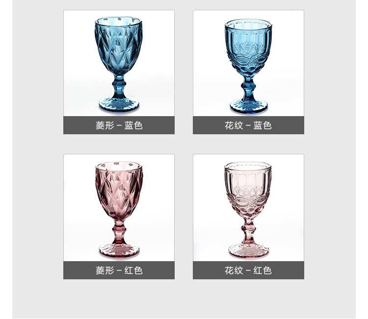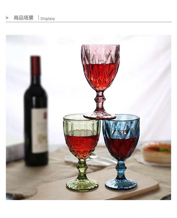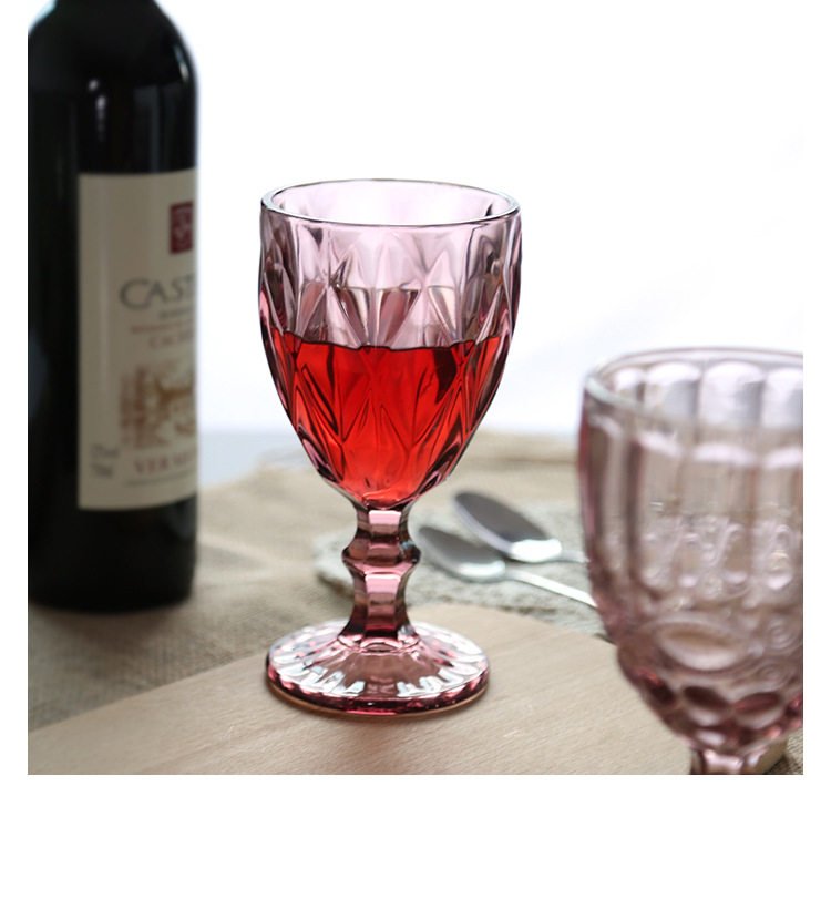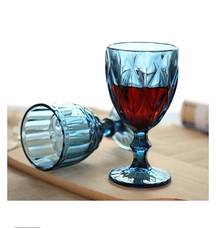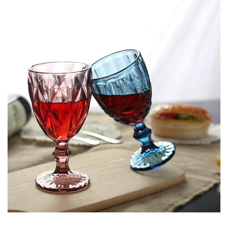 Cross-Border Wholesale European Style Embossed Red Wine Glass Colored Glass Beverage Cup Thickened Juice Milk Cup Wedding Goblet
