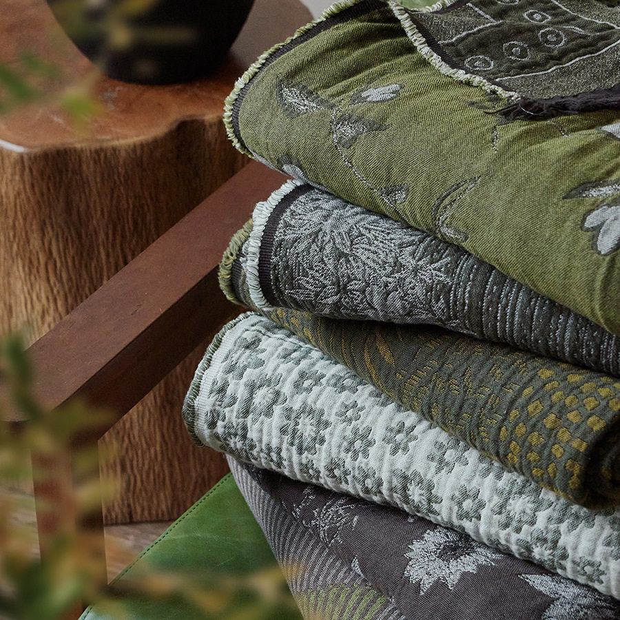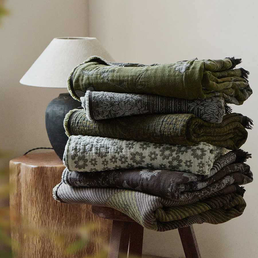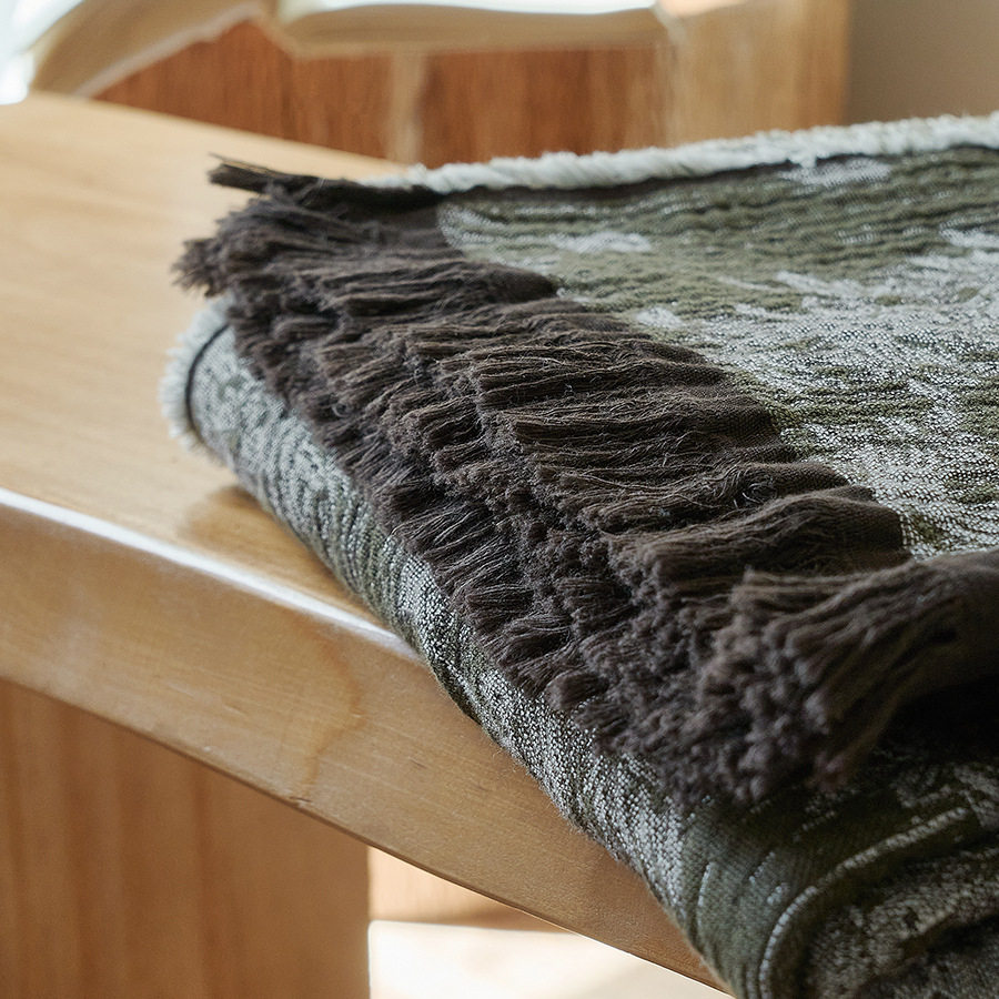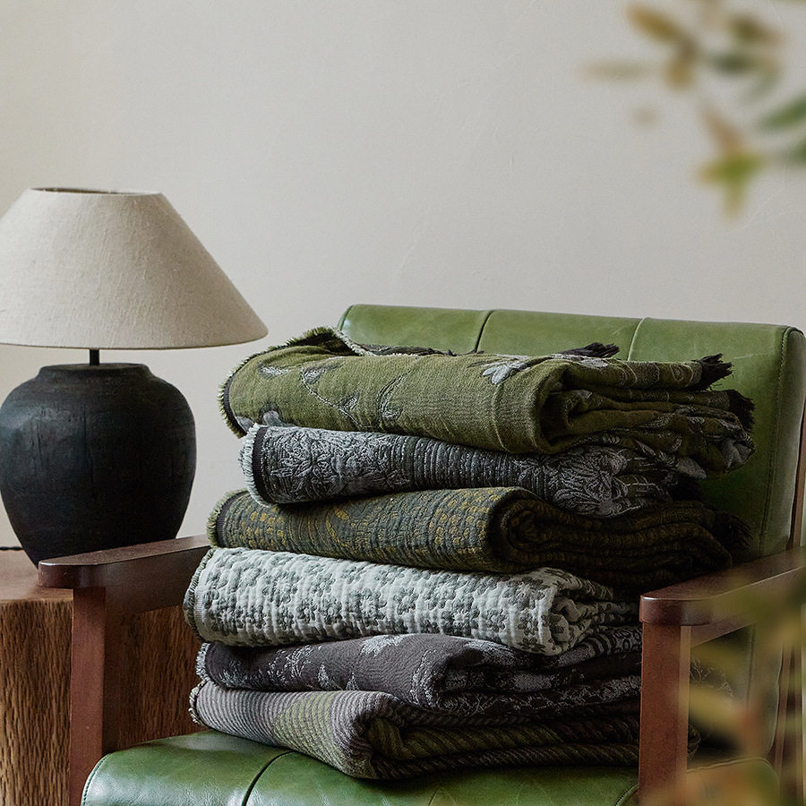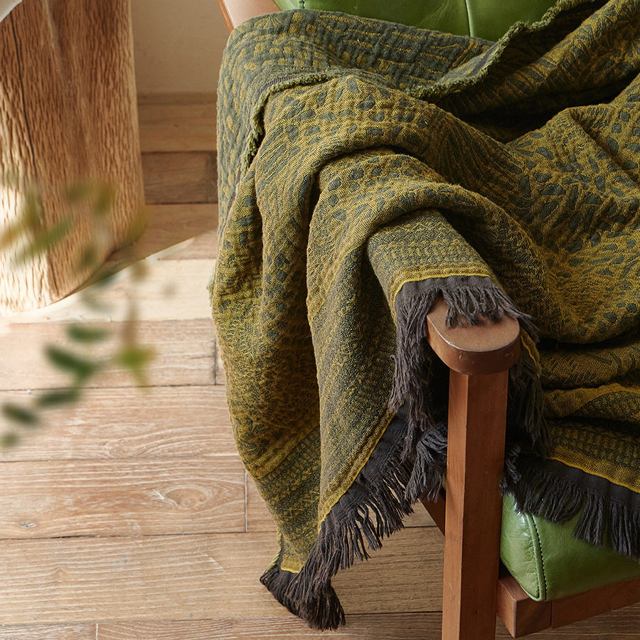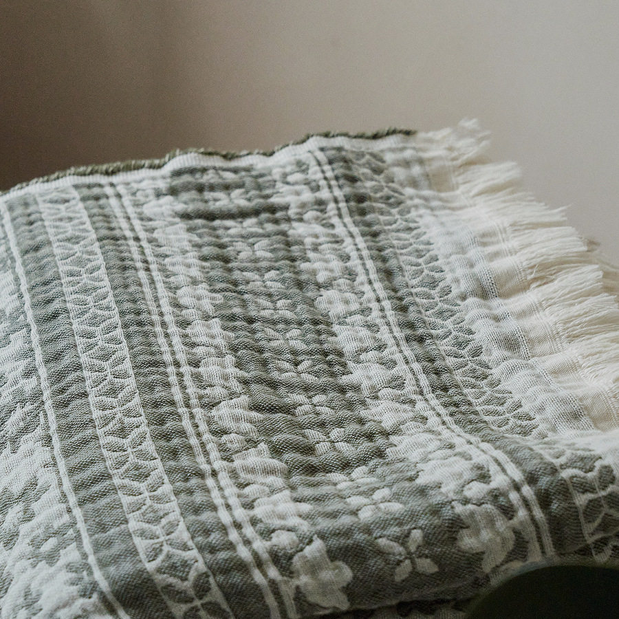 Return to Nature Jacquard Small Blanket, Antique Style Gauze Pure Cotton Nap Blanket, Decorative Sofa Cover Blanket, High-End Bedside Towel