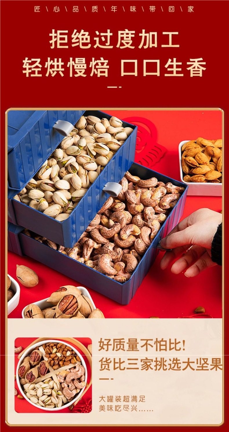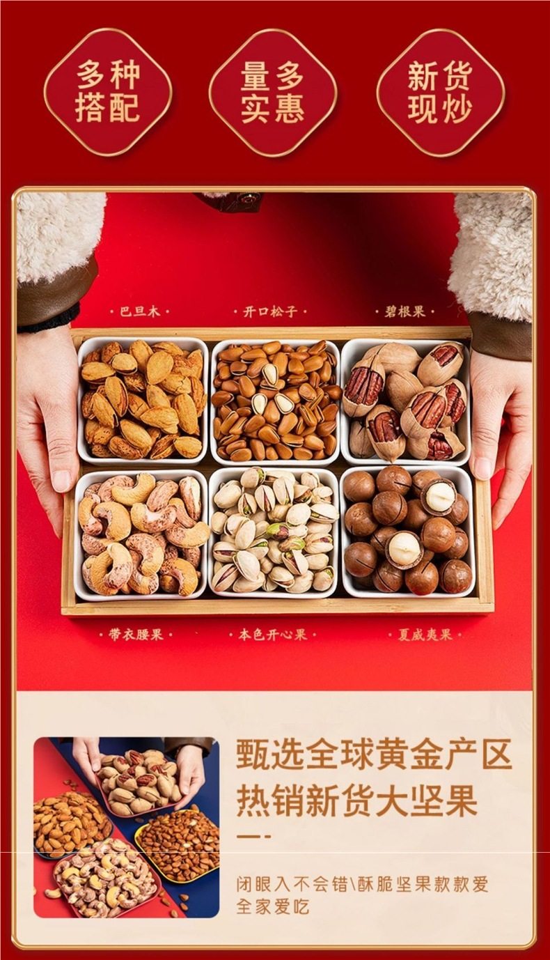 | Packaging specifications | [amber walnut kernel 0.5kg] single can/net weight,【macadamia nut 0.5kg】single can/net weight,【almond 0.5kg】single can/net weight,[xiaba each 0.5kg] total 1.0kg / net weight,[each 0.5kg waist] total 1.0kg / net weight,[each of the 0.5kg xia ba waists] total 1.5kg / net weight,[shaba kai ge 0.5kg] total 1.5kg / net weight,[summer waist opening 0.5kg each] total 1.5kg / net weight,[open waist each 0.5kg] total 1.5kg / net weight,Gift bag [xabiba waist each 0.5kg] total 2kg / net weight,Gift bag [xabi bassoon each 0.5kg] total 2kg / net weight,Gift bag [xabiba kai each 0.5kg] total 2kg / net weight,Gift bag [xia bi kai yaba ge 0.5kg] total 2.5kg / net weight,Gift bag [xia bi kai somba each 0.5kg] total 2.5kg / net weight,Gift bag [xabiba open waist pine] with core 0.5kg total 3.5kg net weight |