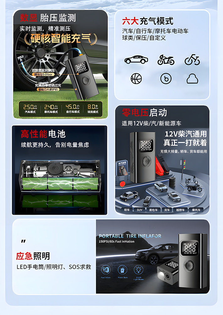 | Specifications | Inflatable start-in-one (ordinary clip + storage bag),Inflatable start-in-one (smart clip + storage bag) |