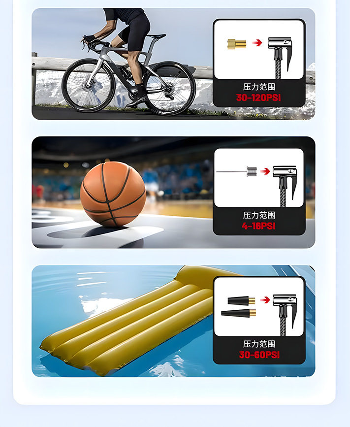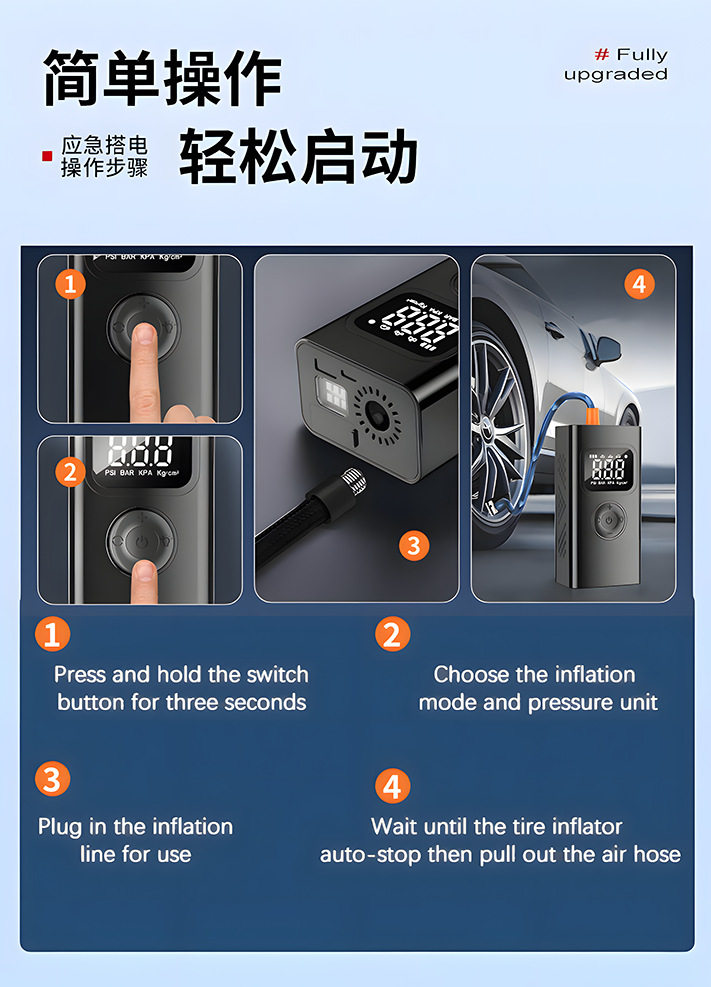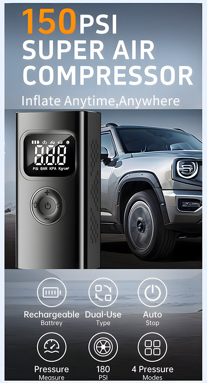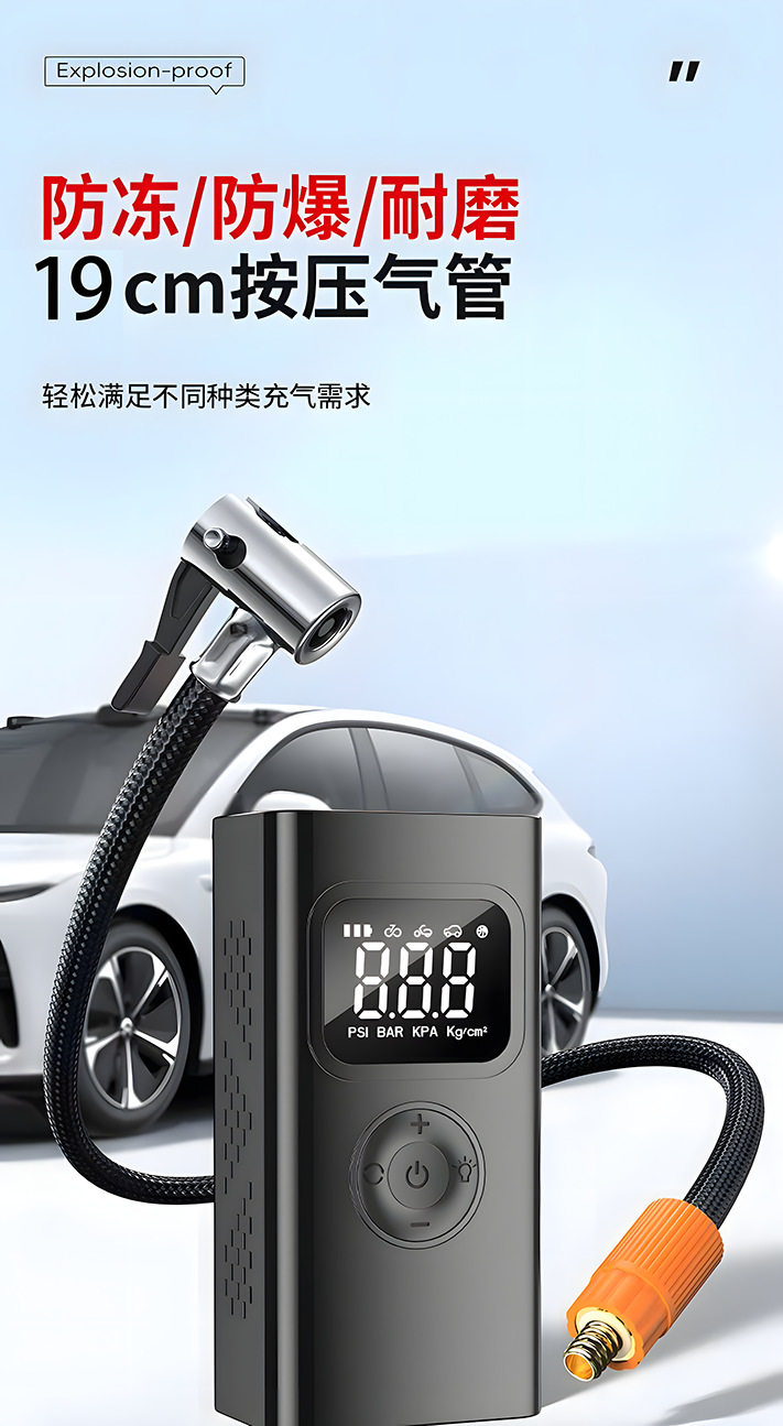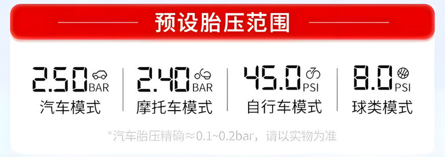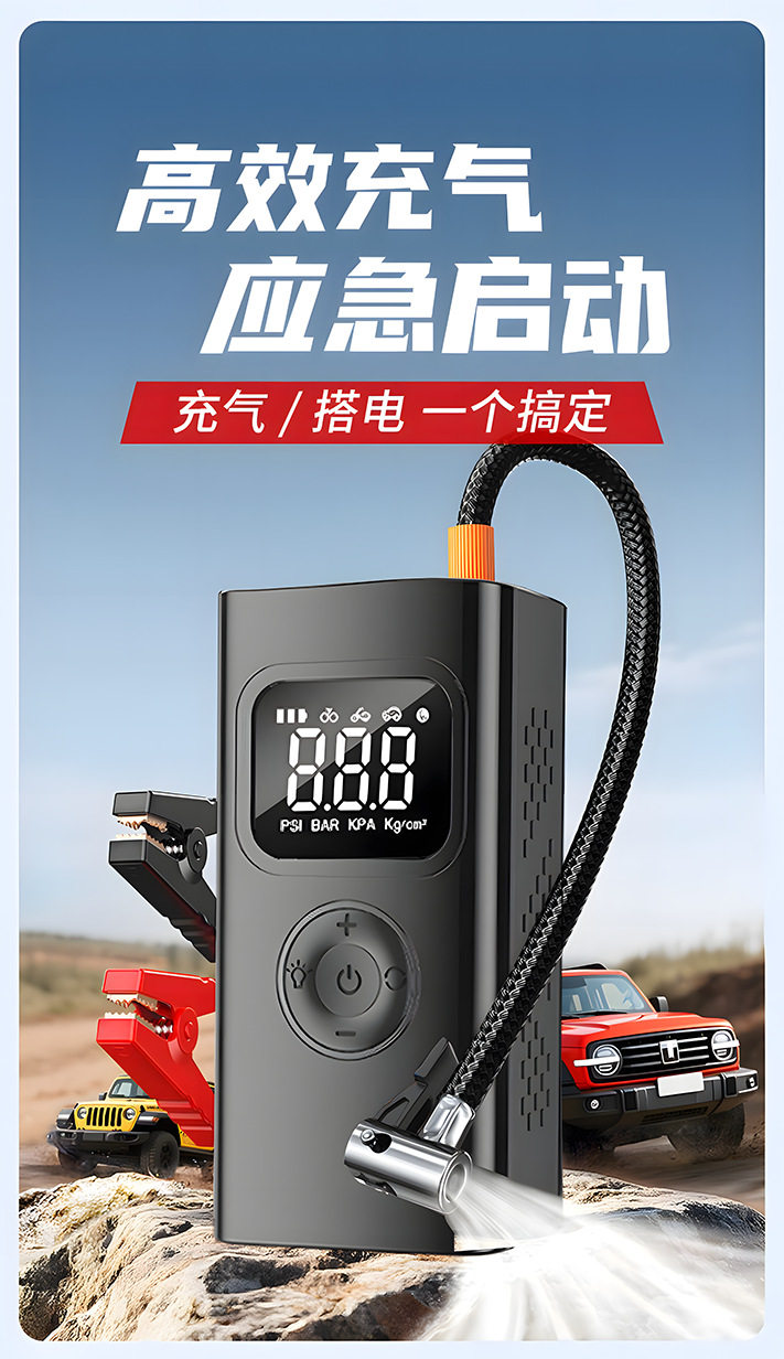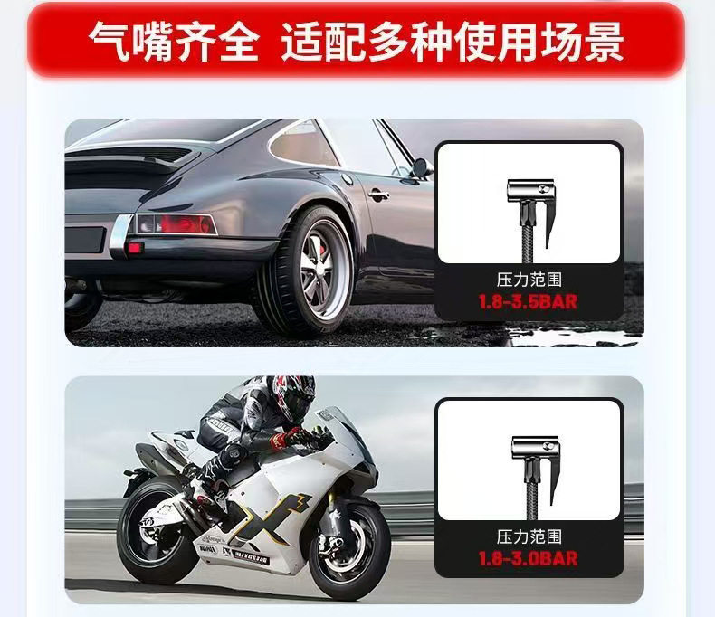 | Additional features | Lighting,Tire pressure gauge,Warning light,Usb charging,Automatic shutdown,Automatic charging stop,Intelligent pressure monitoring |