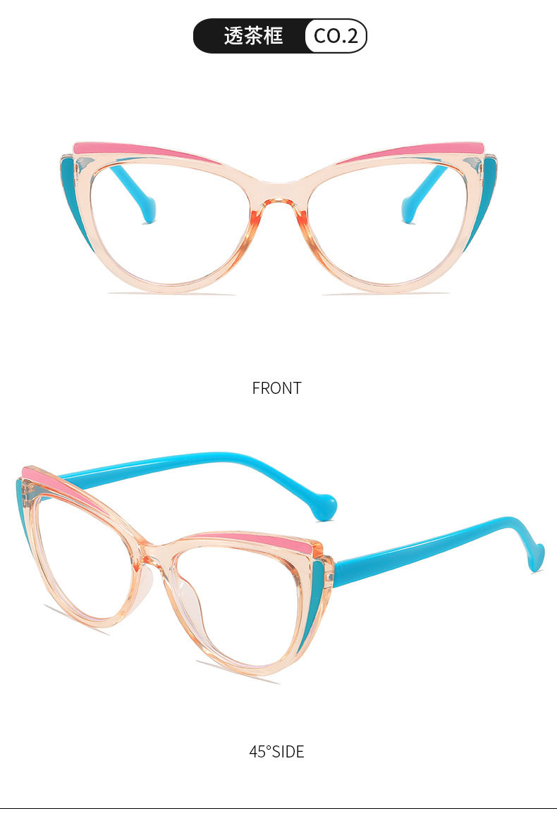 New Cat-Eye Color-Blocking Frame Personality Plain Glasses Fashion European and American Style Natural Look Xiaohongshu Street Glasses Frame for Women Trendy
