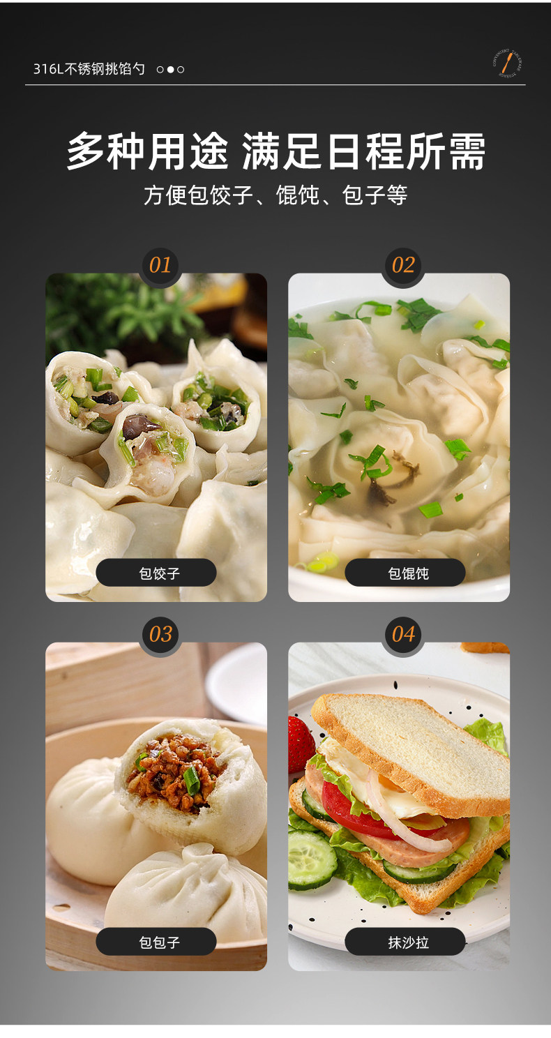 316L Stainless Steel Filling Scoop for Making Dumplings, Household Tool for Wrapping Wontons and Dumplings, Mixing Meat Filling Spoon