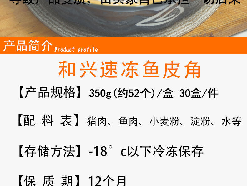 | Packaging specifications | Hexing quick-frozen fish skin corners 350g |