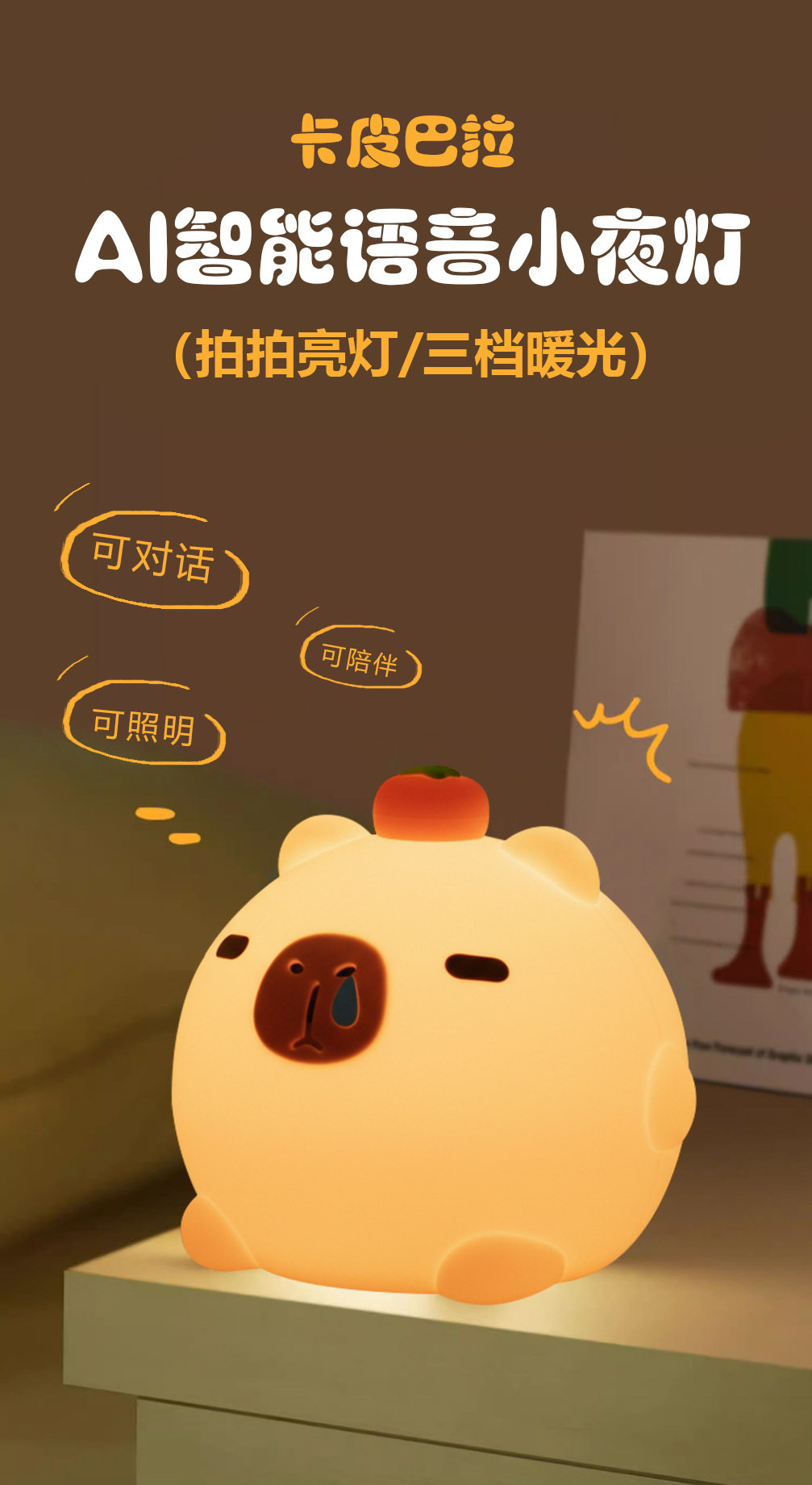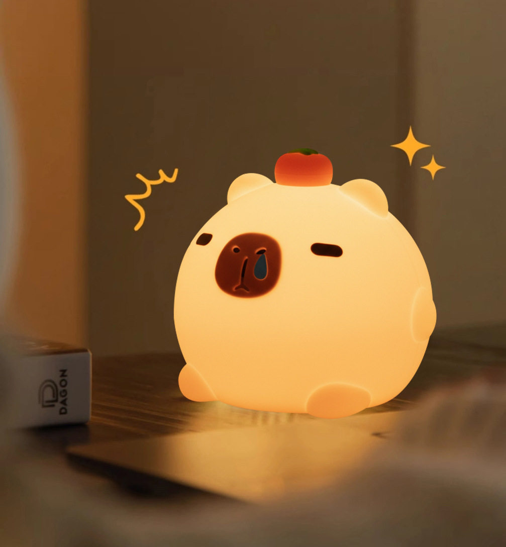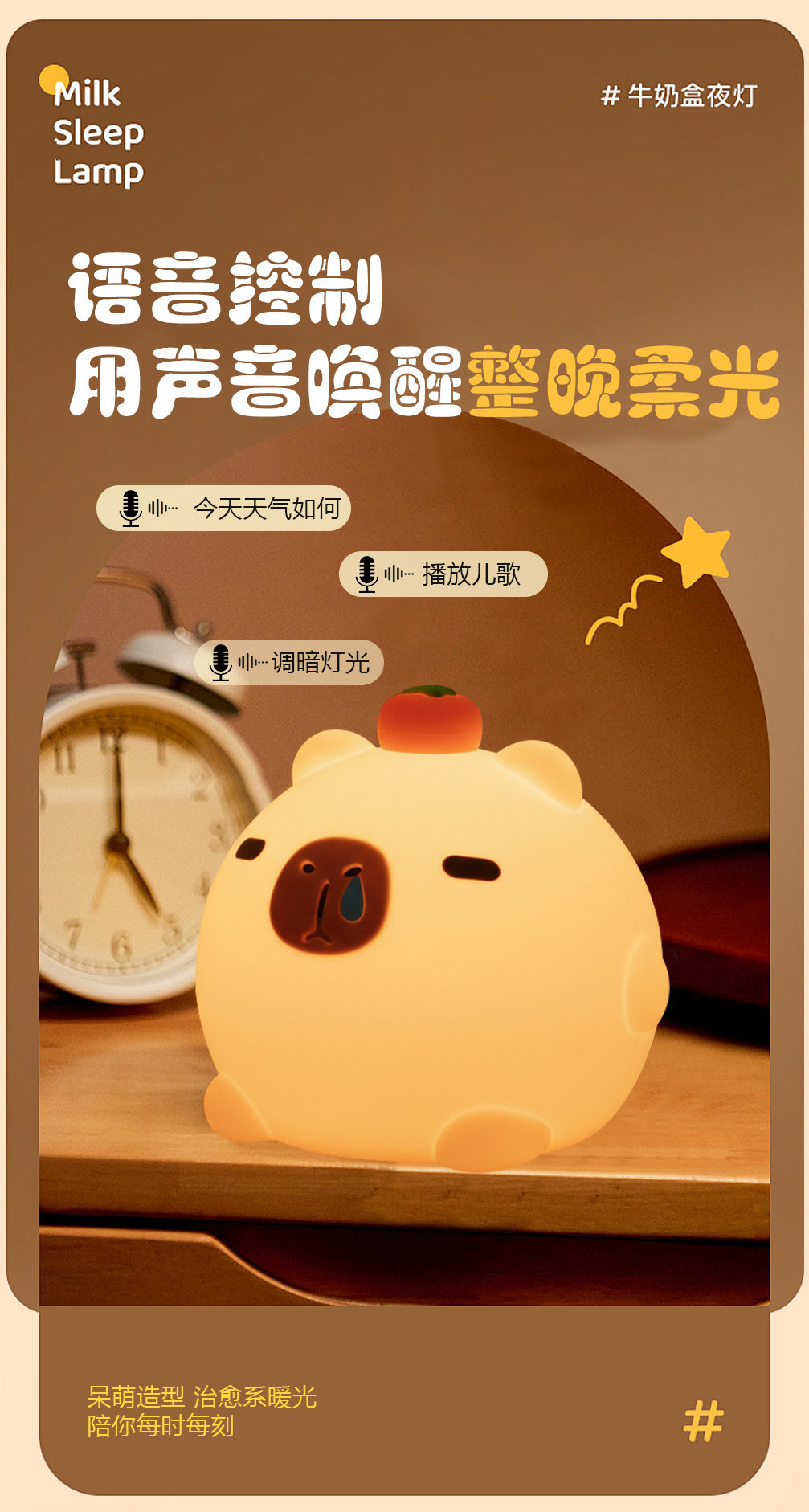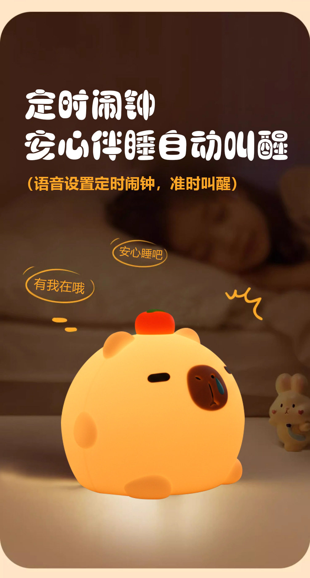 Voice-Controlled Night Light Capibara Ai Smart Children's Bedside Sleep Companion Lamp USB Silicone Tap Light Custom Mold Design