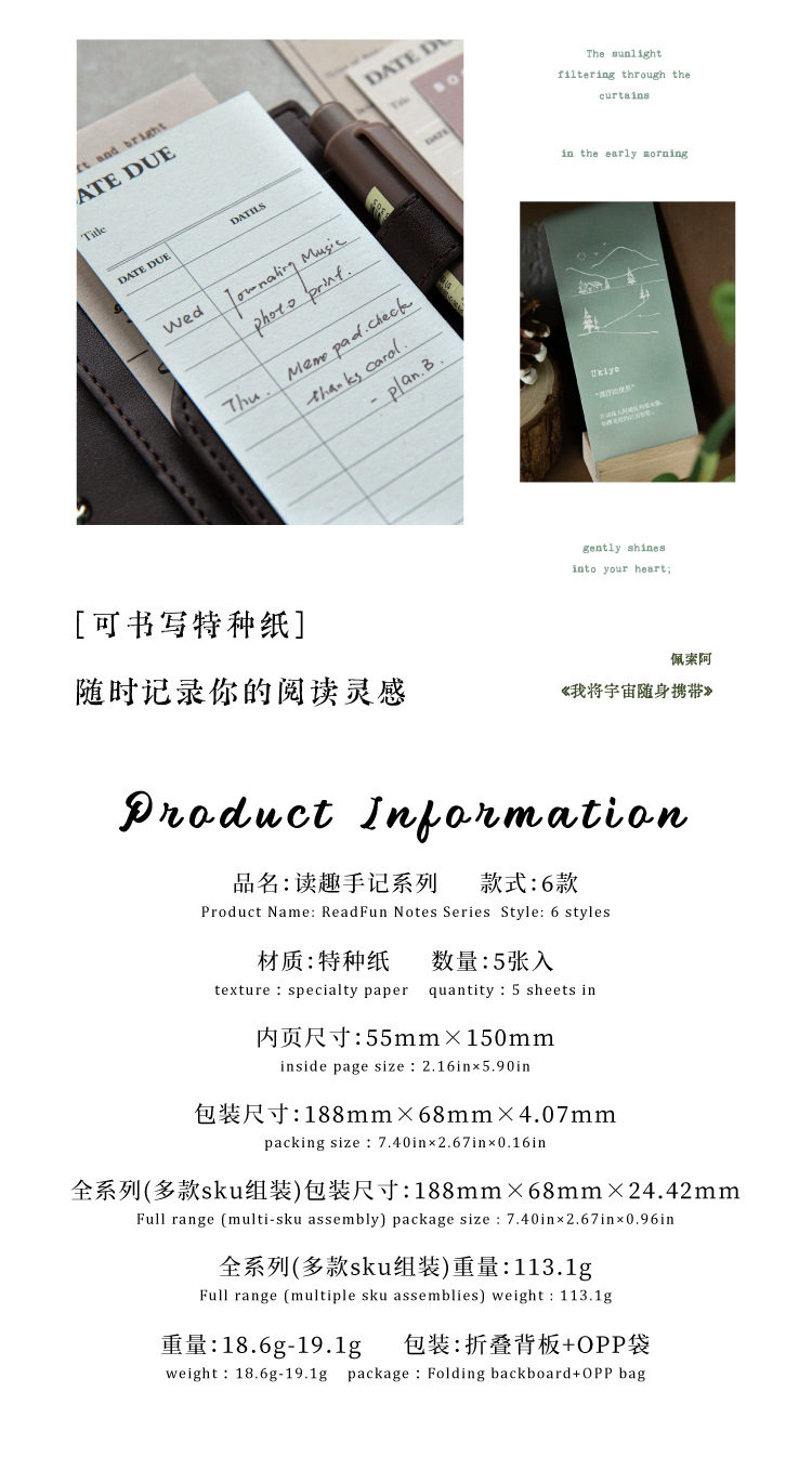 Jilu Mo Mo Reading Card Bookmark Reading Fun Notes Series Light Retro Student Reading Book Clip Marking Card