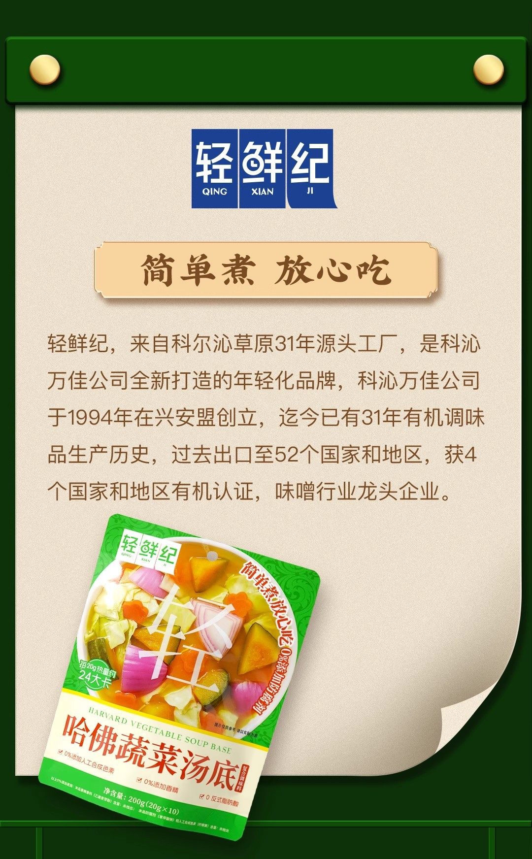 Qingxianji [0 Additions] Harvard Vegetable Soup Base Dietary Fiber Light Convenient Compound Seasoning