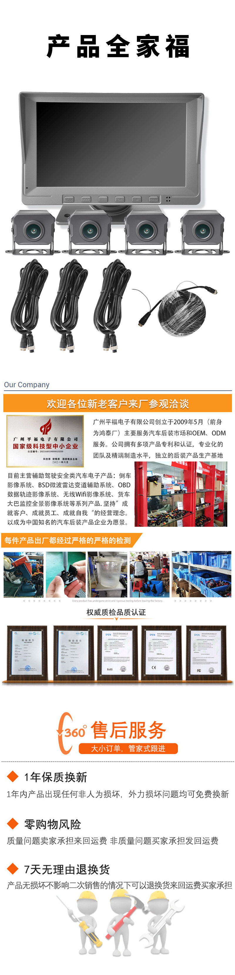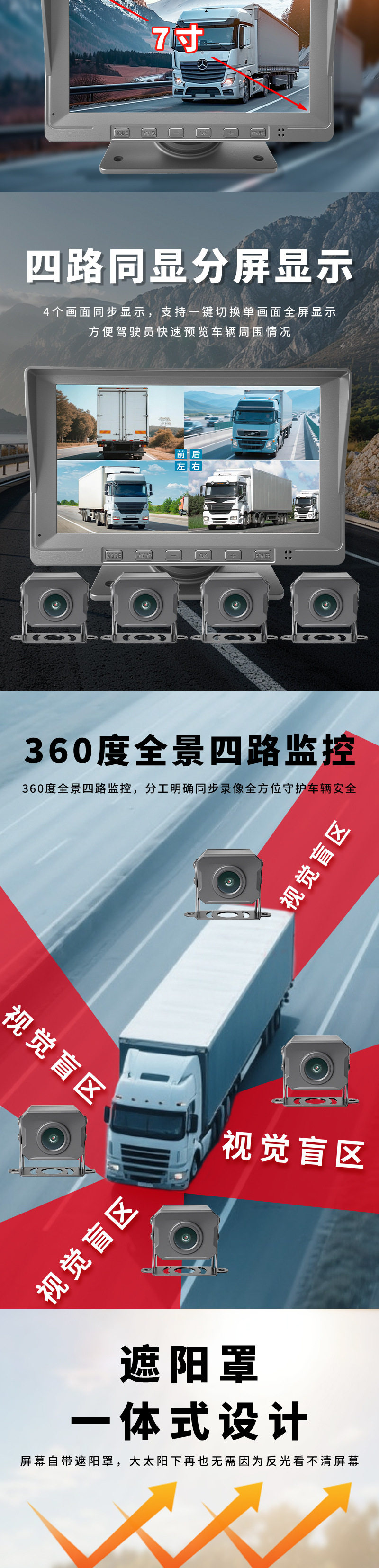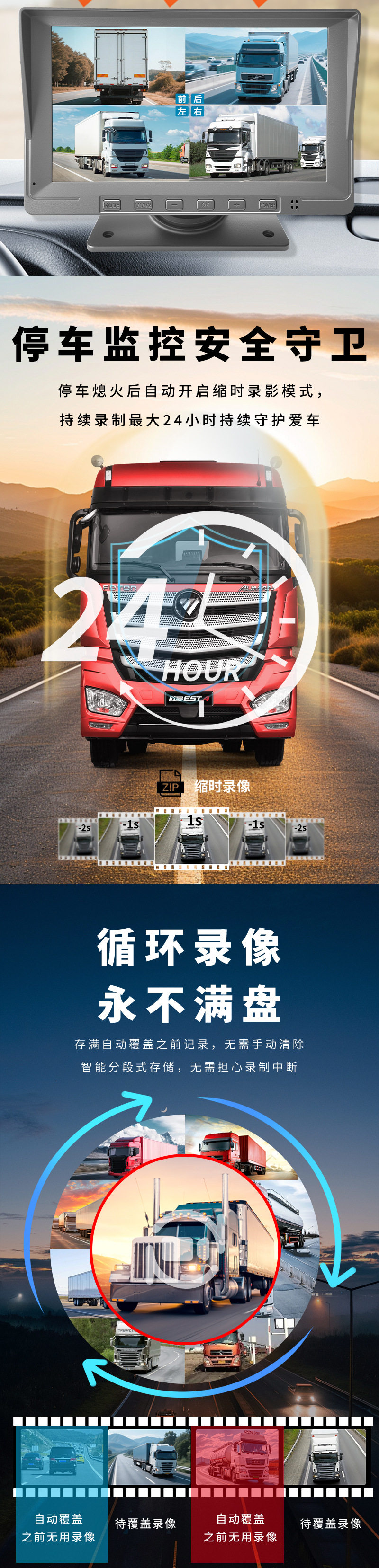 Truck Driving Recorder 24V High-Definition Front and Rear Dual Recording Four-Way 360 Vehicle Monitoring Reversing Image All-In-One Machine