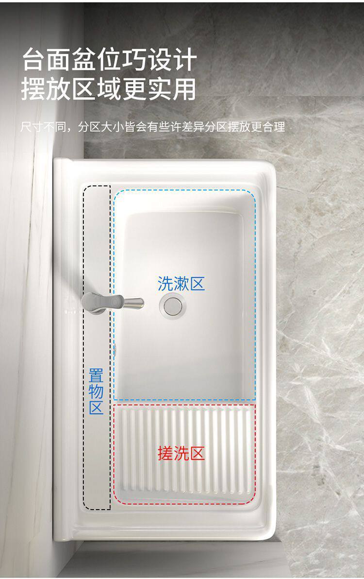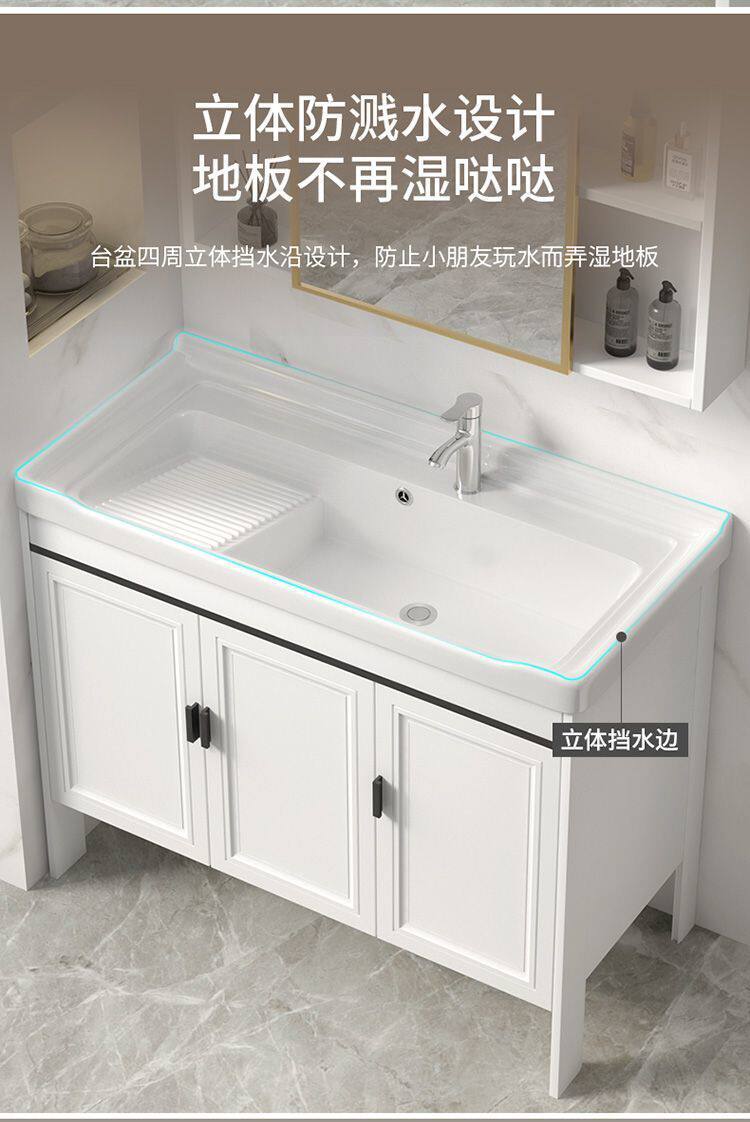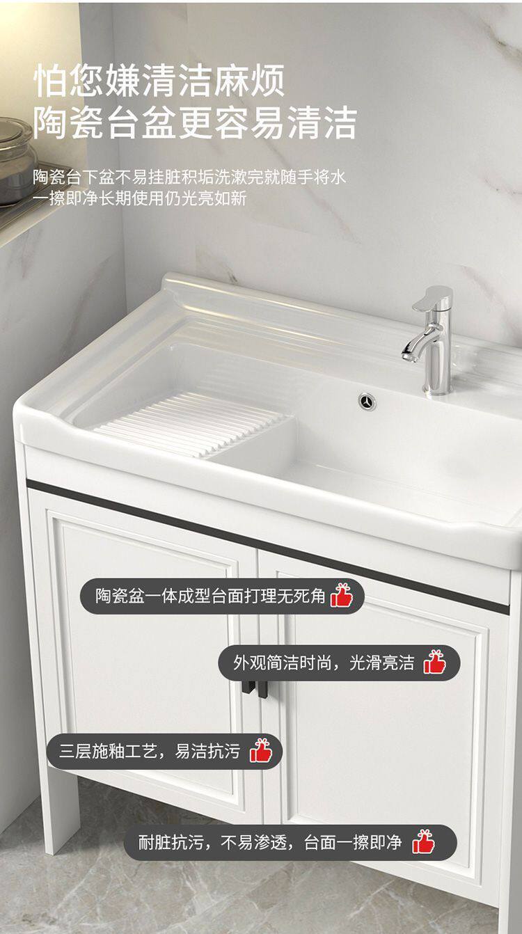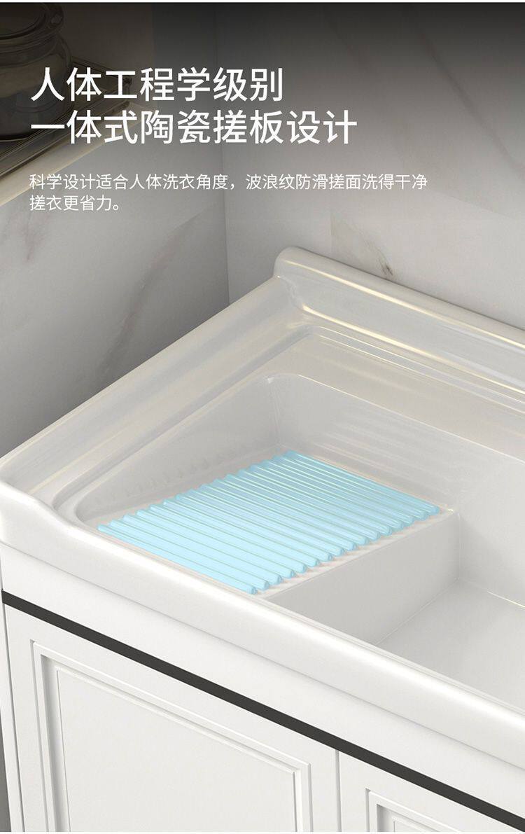 Carbon Fiber Laundry Cabinet Balcony Laundry Sink Ceramic Washbasin with Washboard Floor-Standing Washbasin Cabinet Combination