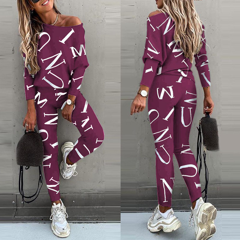 2025 Autumn New Amazon Hot European and American Clothing Letter Printed Long Sleeve Trousers Casual Suit