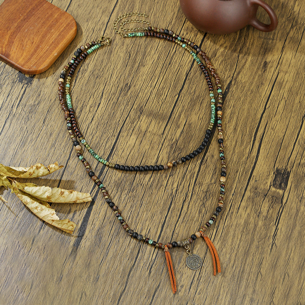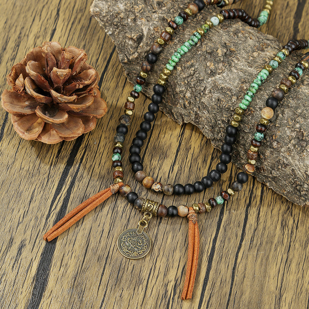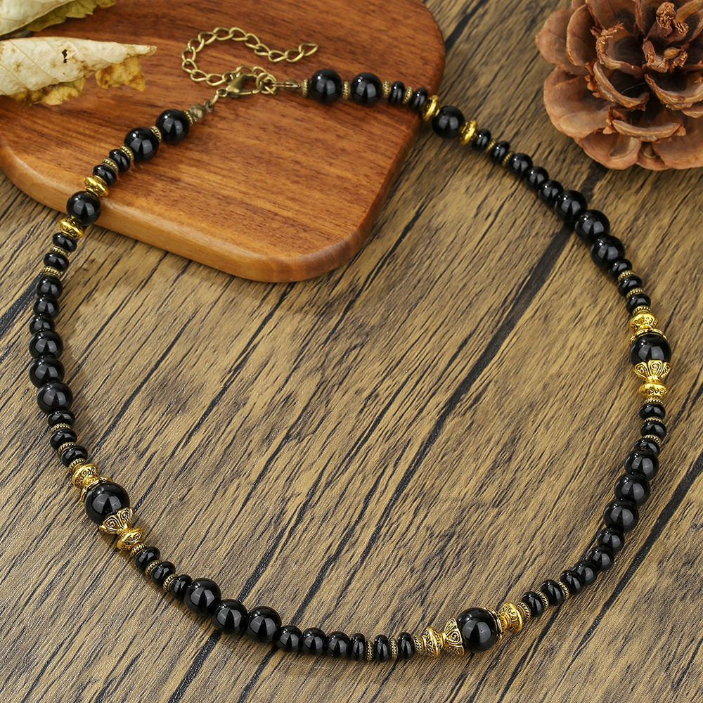 Cross-Border New Products European and American Retro Style Crystal Natural Stone Beads Splicing Niche Stacked Clavicle Chain Men's and Women's Necklaces