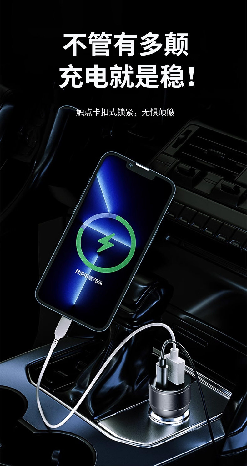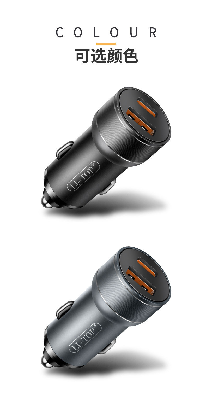 66W Aluminum Alloy Pd Dual USB Port Car Charging Head Car Charging Head 2A Mobile Phone Charger Fast Charging