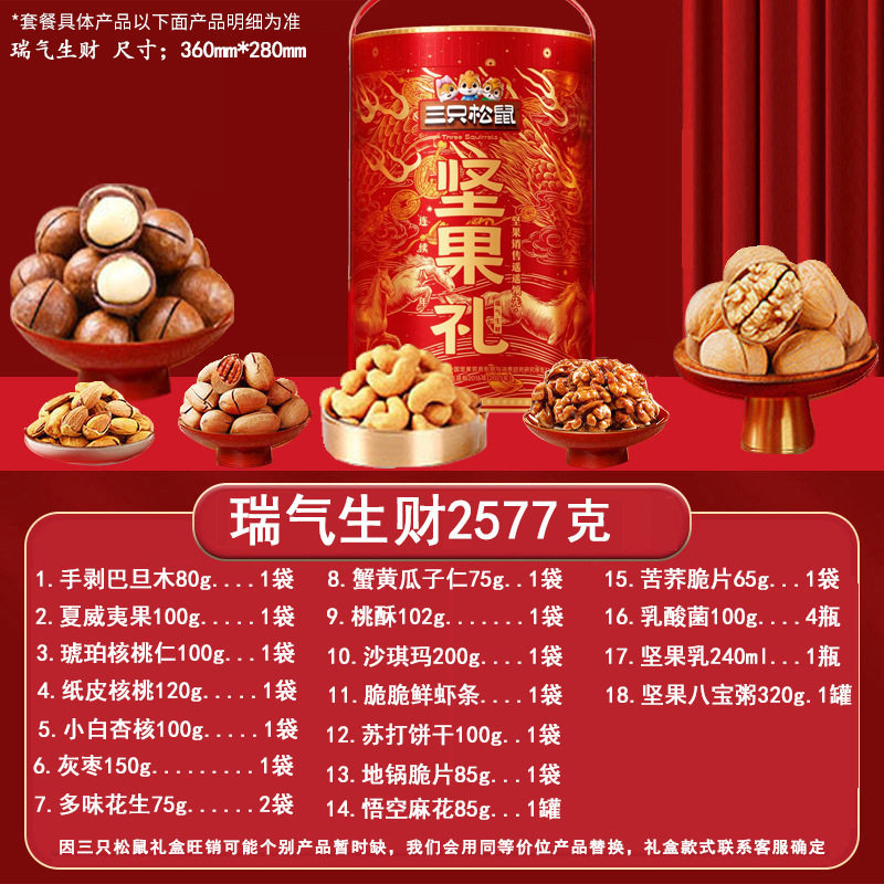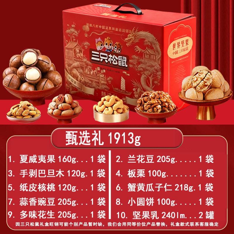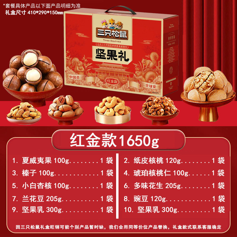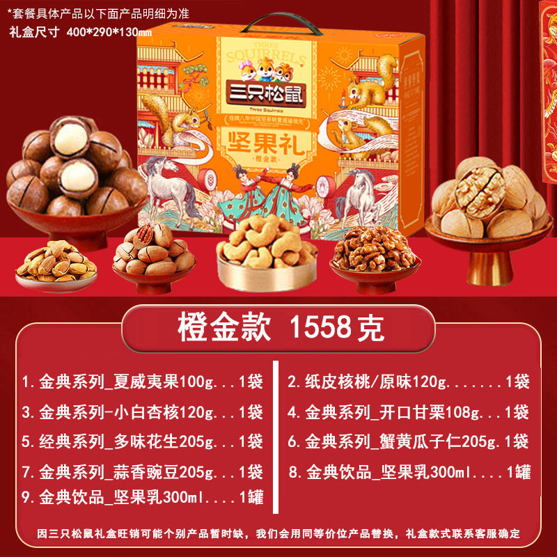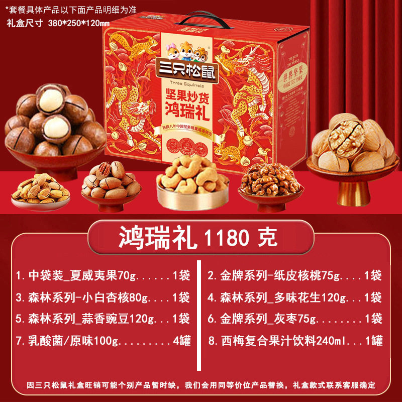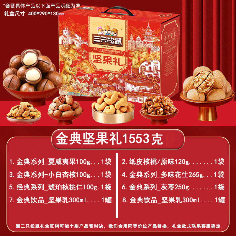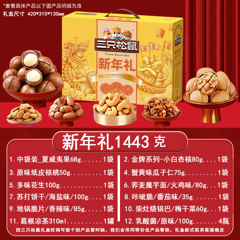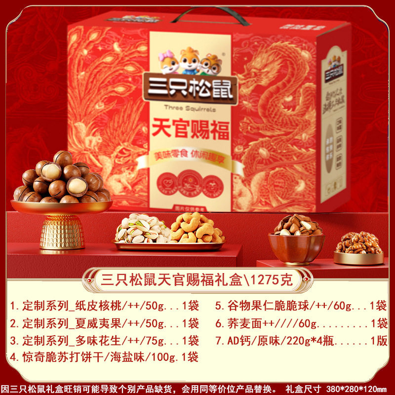Three Squirrels Nut Gift Box Snacks for Gifting, New Year's Gifts, Visiting Relatives, Dried Fruit Gift Pack, Corporate Welfare Wholesale