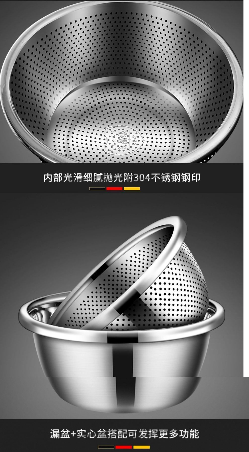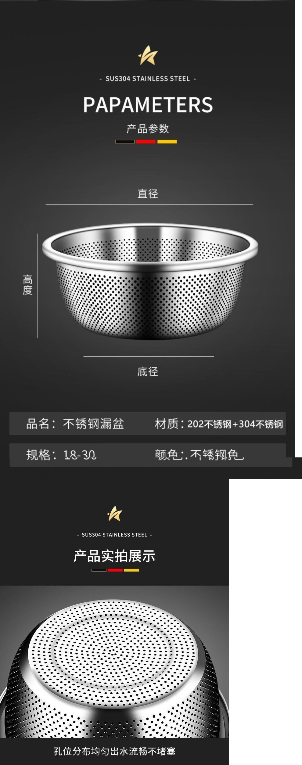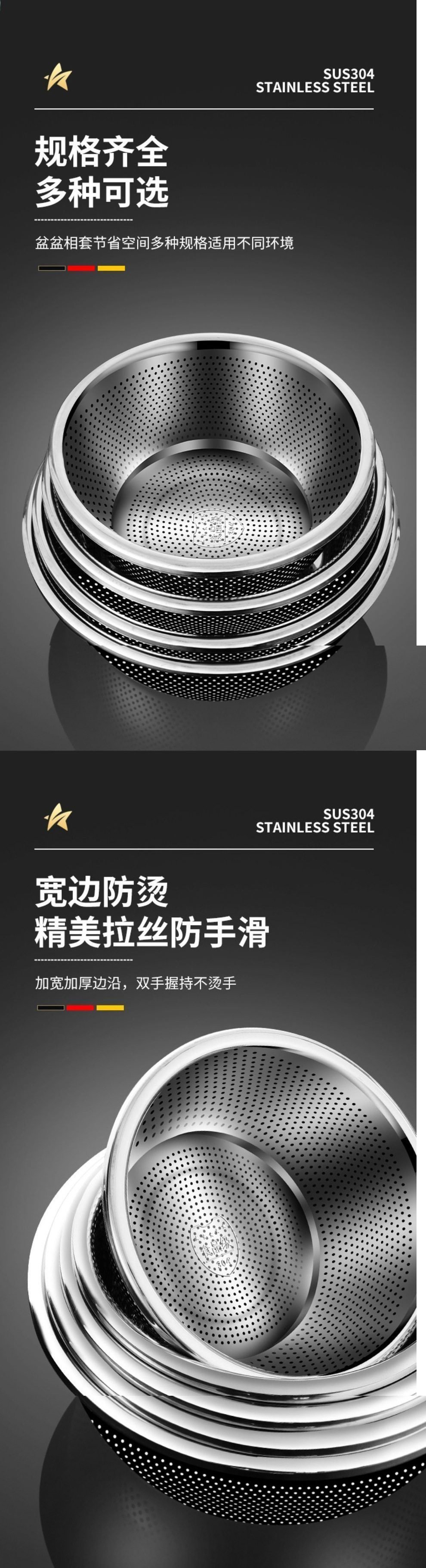 Stainless Steel Draining Basket Colander Rice Sieve Kitchen Food-Grade Rice Washing Vegetable Draining Basin Fruit Washing Strainer New Model