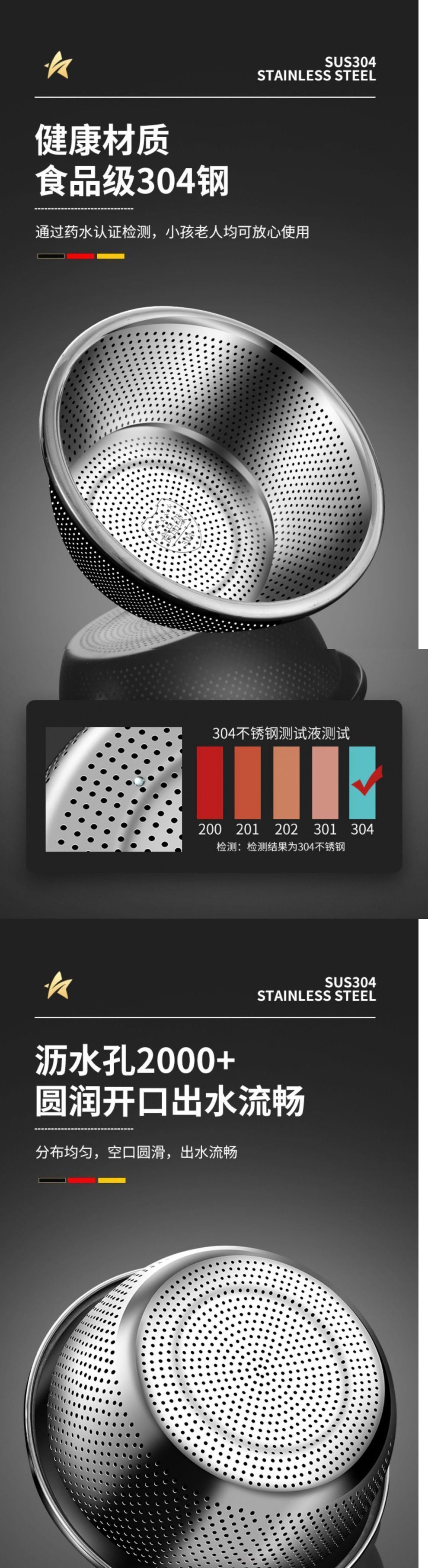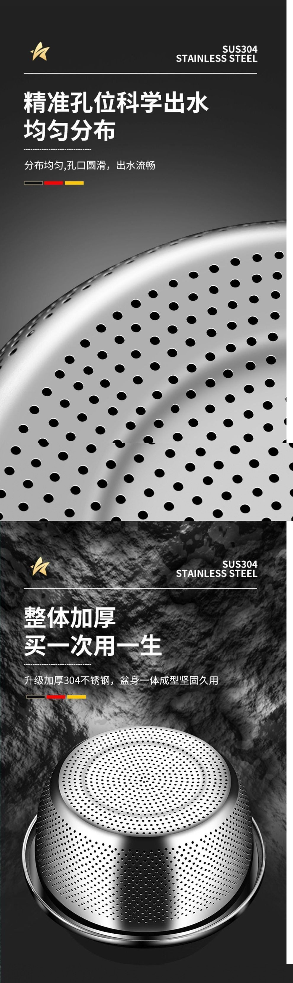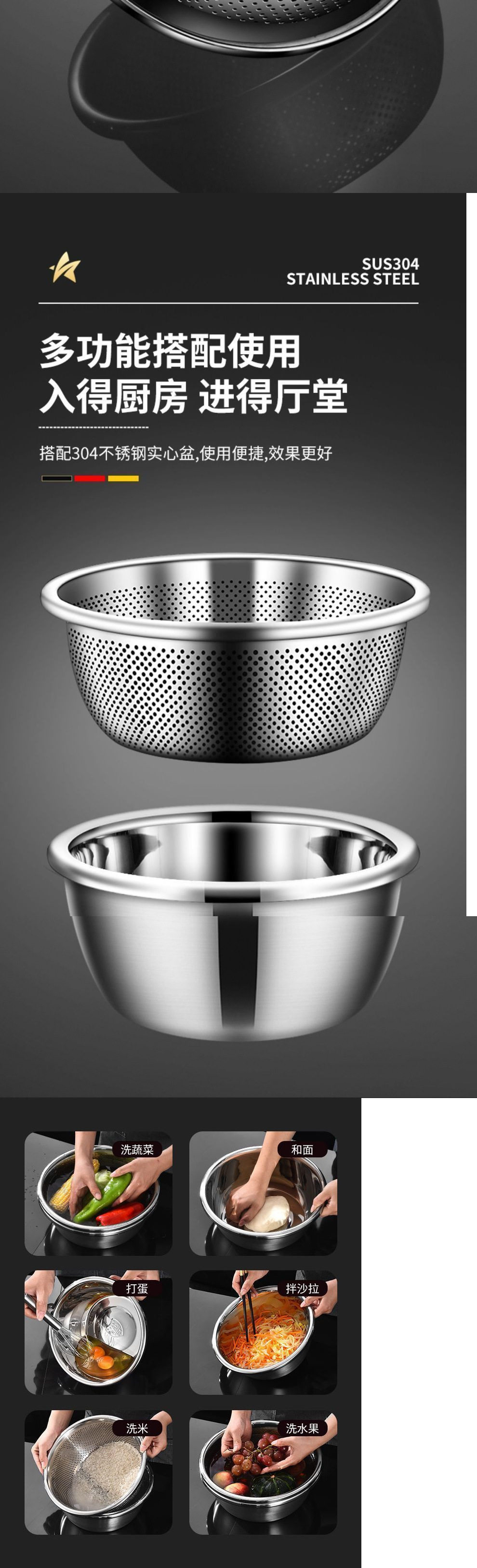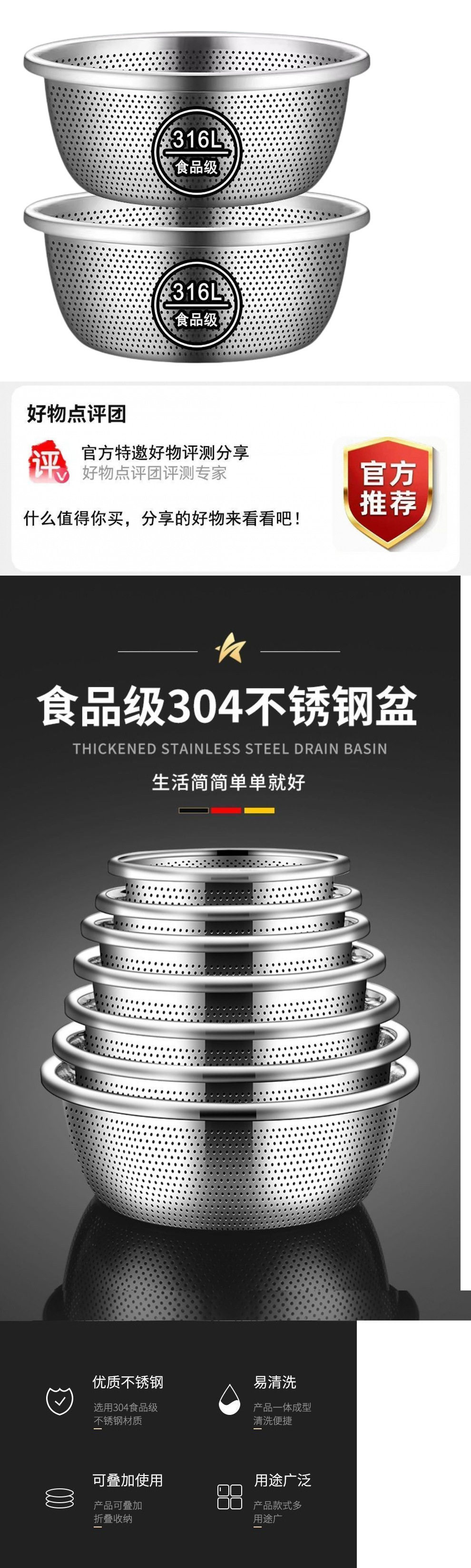 Stainless Steel Draining Basket Colander Rice Sieve Kitchen Food-Grade Rice Washing Vegetable Draining Basin Fruit Washing Strainer New Model