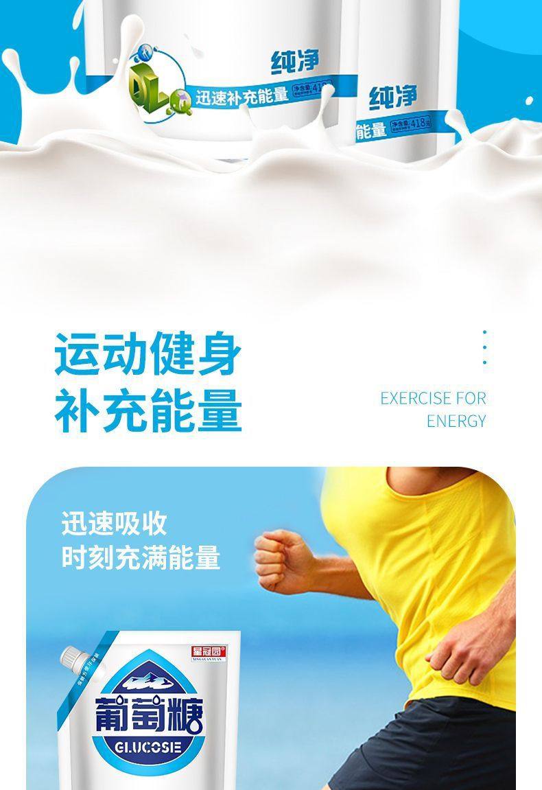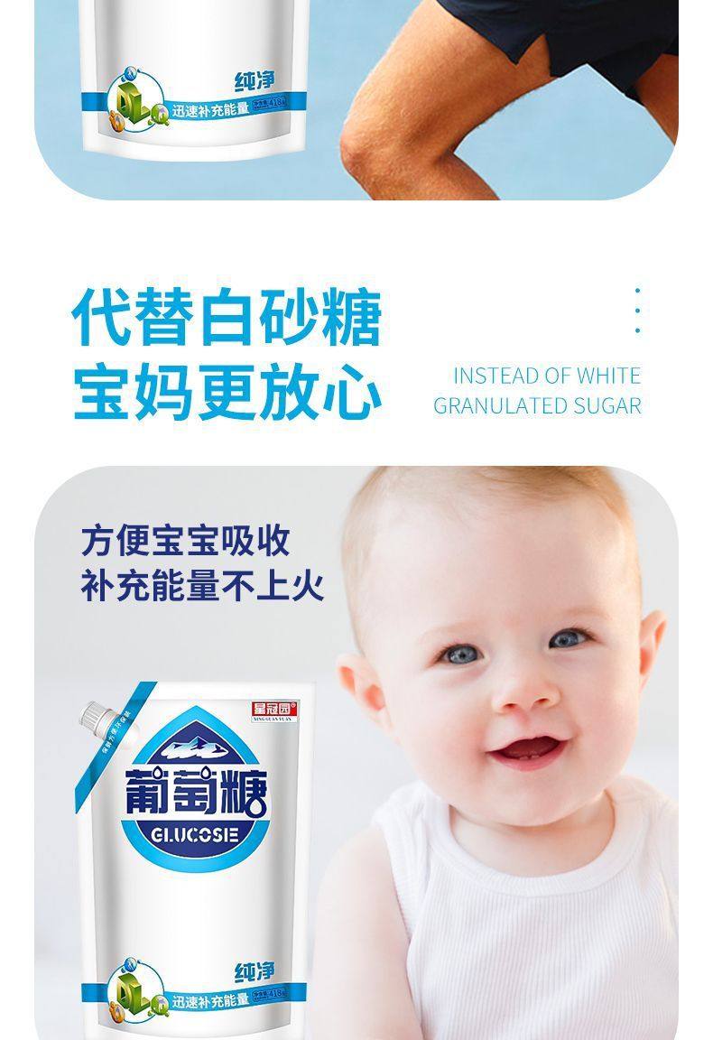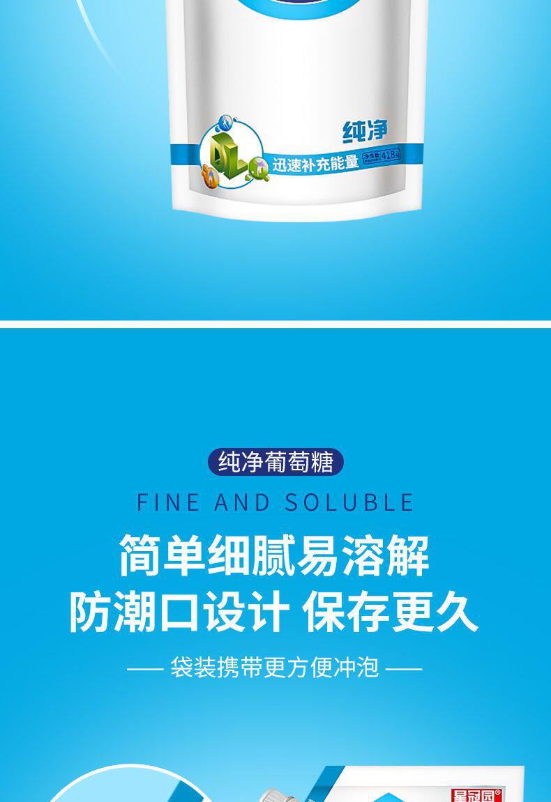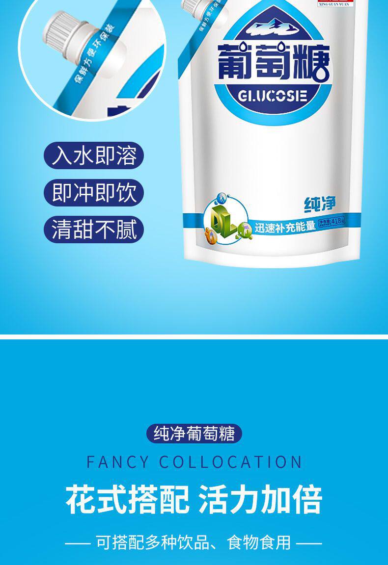 | Packaging specifications | Glucose 418g*1 bag,Glucose 418g*2 bags,Glucose 418g*3 bags,Glucose 418g*5 bags |