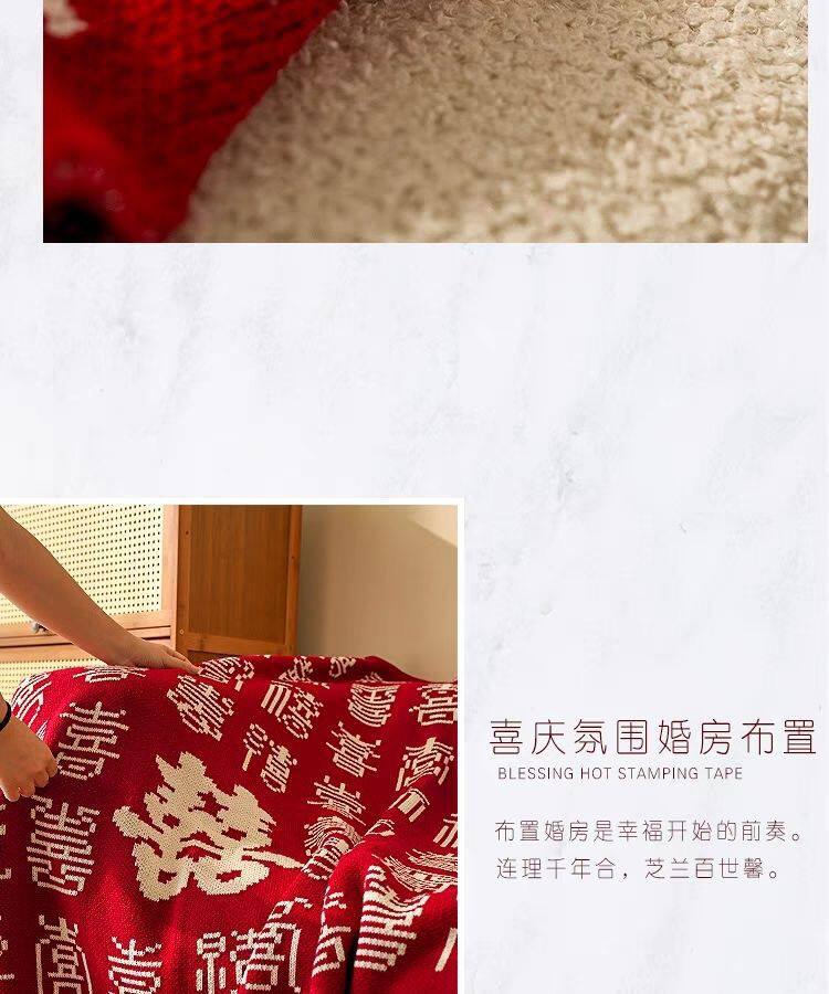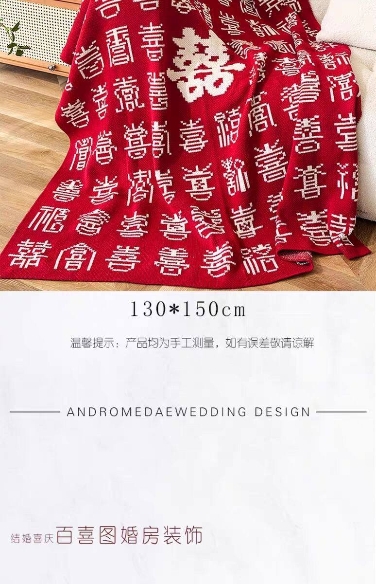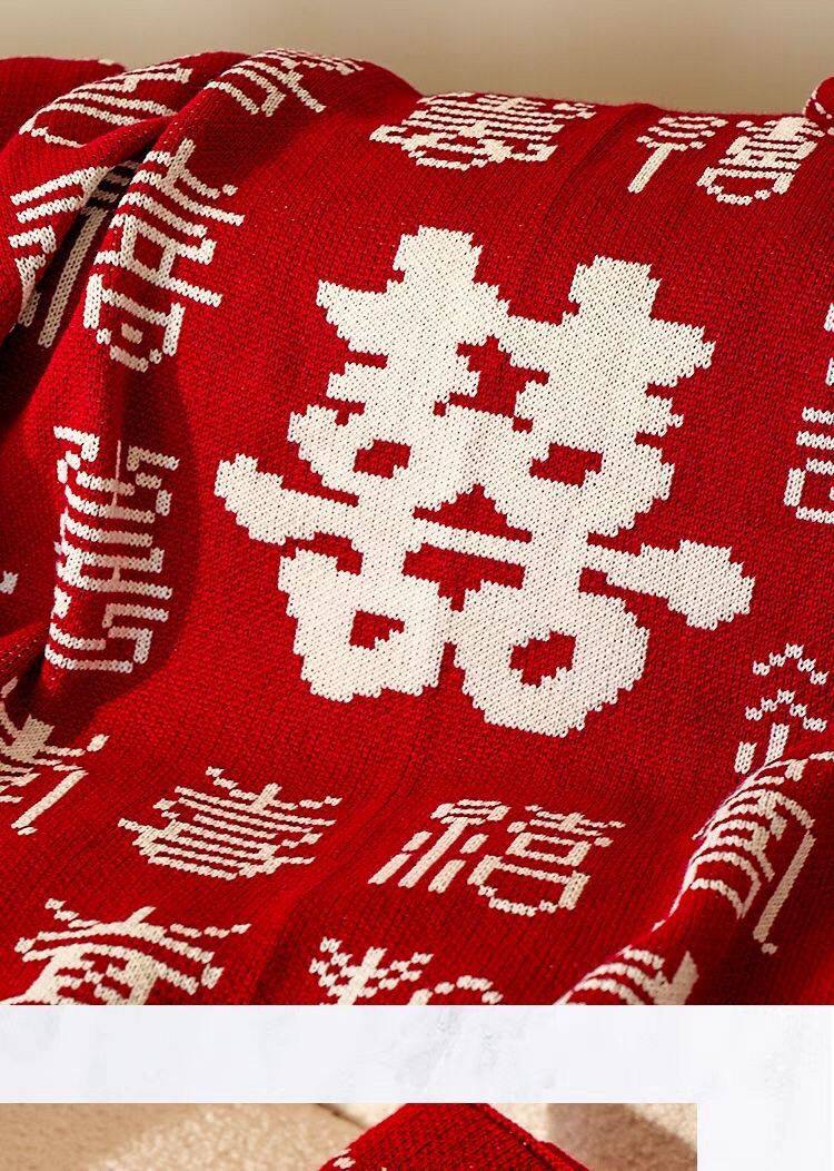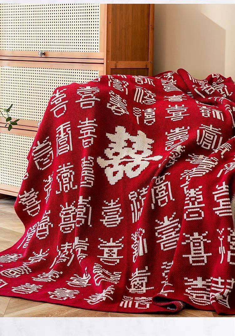 Wedding Celebration Chinese-Style Hundred Happiness Sofa Knitted Blanket Wedding Dowry Double Happiness Character Bed End Red Blanket Holiday Gift Wholesale