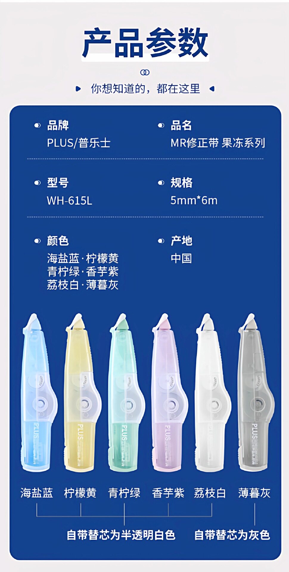 Japan Plus Correction Tape Jelly Color Limited Edition 625 for Girls High-Value Large-Capacity Correction Tape