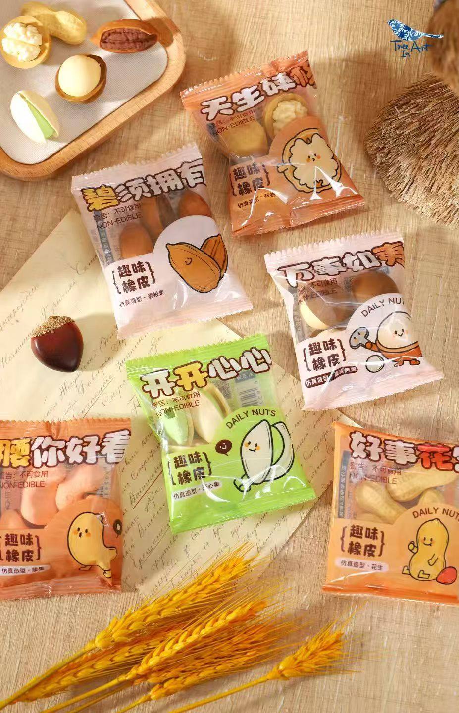 Qingyifang Hundred Percent Nut Shaped Rubber Pencil Eraser Small Prize Creative Cute Student Eraser Wholesale