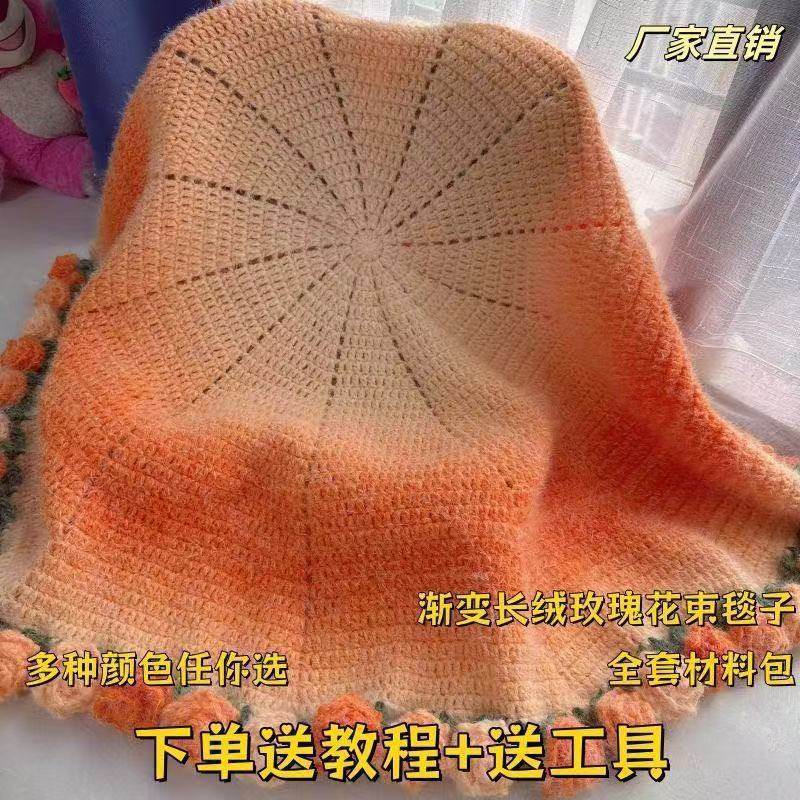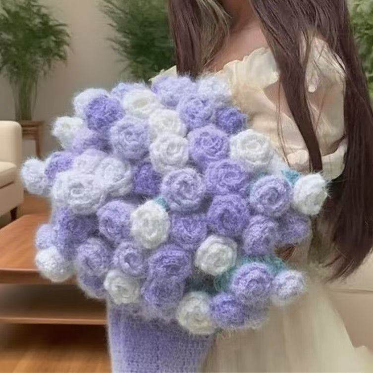 Hand-Knitted Rose Bouquet Blanket Material Package Wool Ball Crocheted Flower Wool Ball Crocheted for Friends